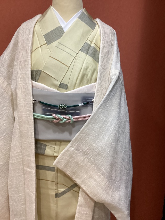 アイボリー地立涌文【寿光織】薄羽織(しつけ・反端付き)260301-6