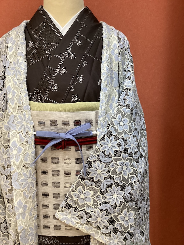 淡群青×クリーム色地レース羽織(新品)2560303-1