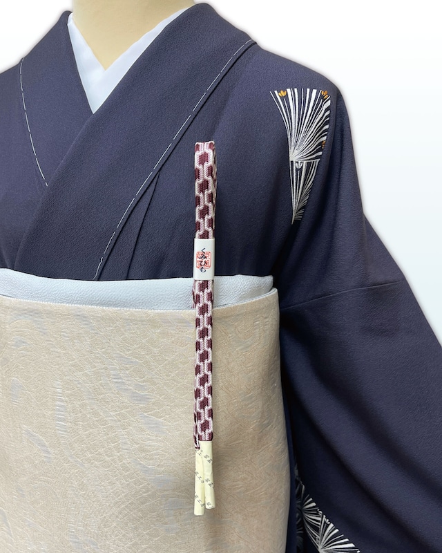 濃色(ダークパープル)地に金糸使いで山並の緩やかな曲線と波文様が繊細なラインで織り込まれております。優しいお色目の色糸を用いて蜀江や華、花兎などの格調高い織文様で埋め尽くされており、落ち着いた上品さのある袋帯です。お茶席やフォーマルシーンにいかがでしょうか。 未仕立て品 西陣証付き 当店にてお仕立てを承る場合、お仕立て代6,600円、納期約40日でございます。ご希望の場合は商品代+お仕立て代の専用ページをお作り致しますので、ご購入前にお知らせ下さいませ。 ◆色味(和色大辞典) 濃色 こきいろ #634950 https://www.colordic.org/colorsample/2034 ※写真と実物とでは多少色合いが異なりますのでご了承くださいませ。 ◆素材 正絹 ◆サイズ 巾31㎝ ◆コーディネート商品 《着物》楼閣山水文【熊谷好博子】一つ縫紋訪問着260407-1(リユース品) 77,000円(税込) 《帯締め 》黄土色×抹茶色【京都翠嵐工房】 双葉レインボー 250920-5(新品)9,900円(税込) 《帯揚げ》新橋色暈し地毘沙門亀甲に松竹梅文260407-2 (新品)6,600円(税込) この商品は「奈良いこま本店」(TEL:0743-70-8822)にてご覧いただけます。 写真では中々お色が出にくいので是非店頭で実物をご覧くださいませ。 お問い合わせは「ショップに質問する」よりお待ちしております。 皆様のご来店を心よりお待ちしております。 <掲載商品のお取り置き・お取引について> ※スタッフ少人数で営業しておりますので、お問い合わせのご対応が遅くなる可能性がございます。営業時間内に順次対応させていただきます。 ※お取り置きは休業日を除き3日間とさせていただきます。 ※掲載商品は、いこま本店でも販売しており、各地イベントへの持ち出しのものもございます。行き違いで売り切れた場合はご容赦下さいませ。また、イベント持ち出し商品は通常よりも発送が遅れる場合がございます。