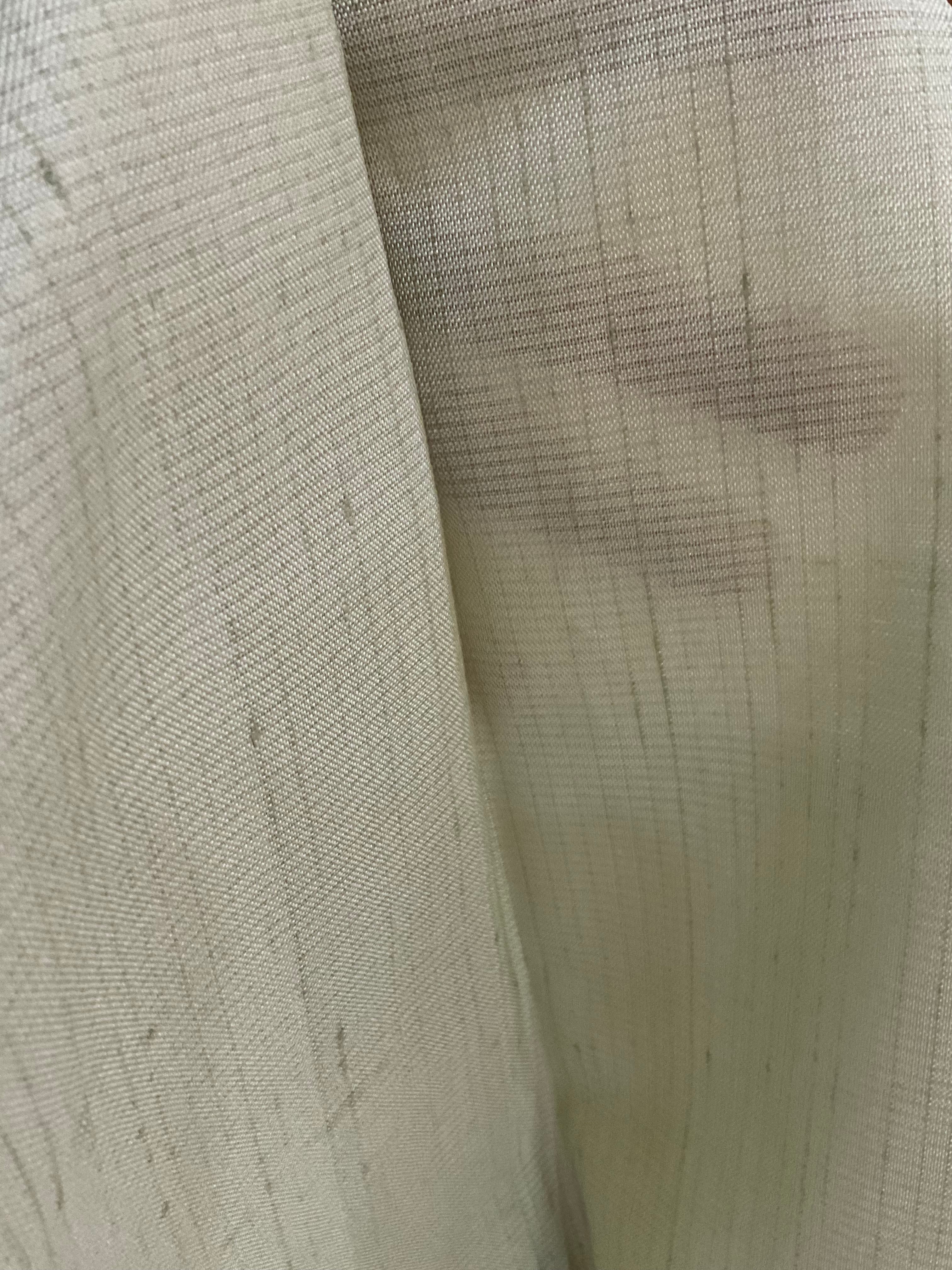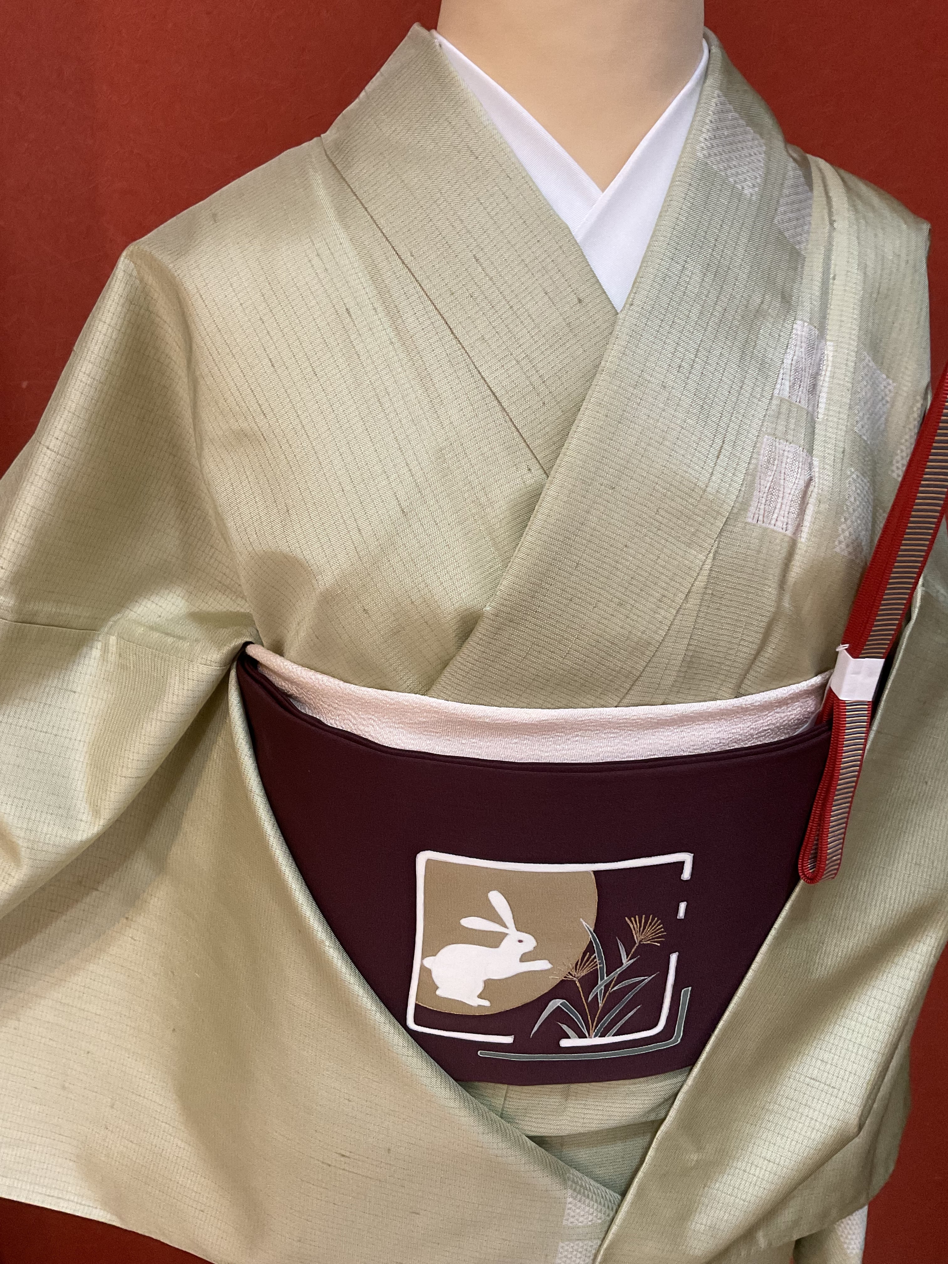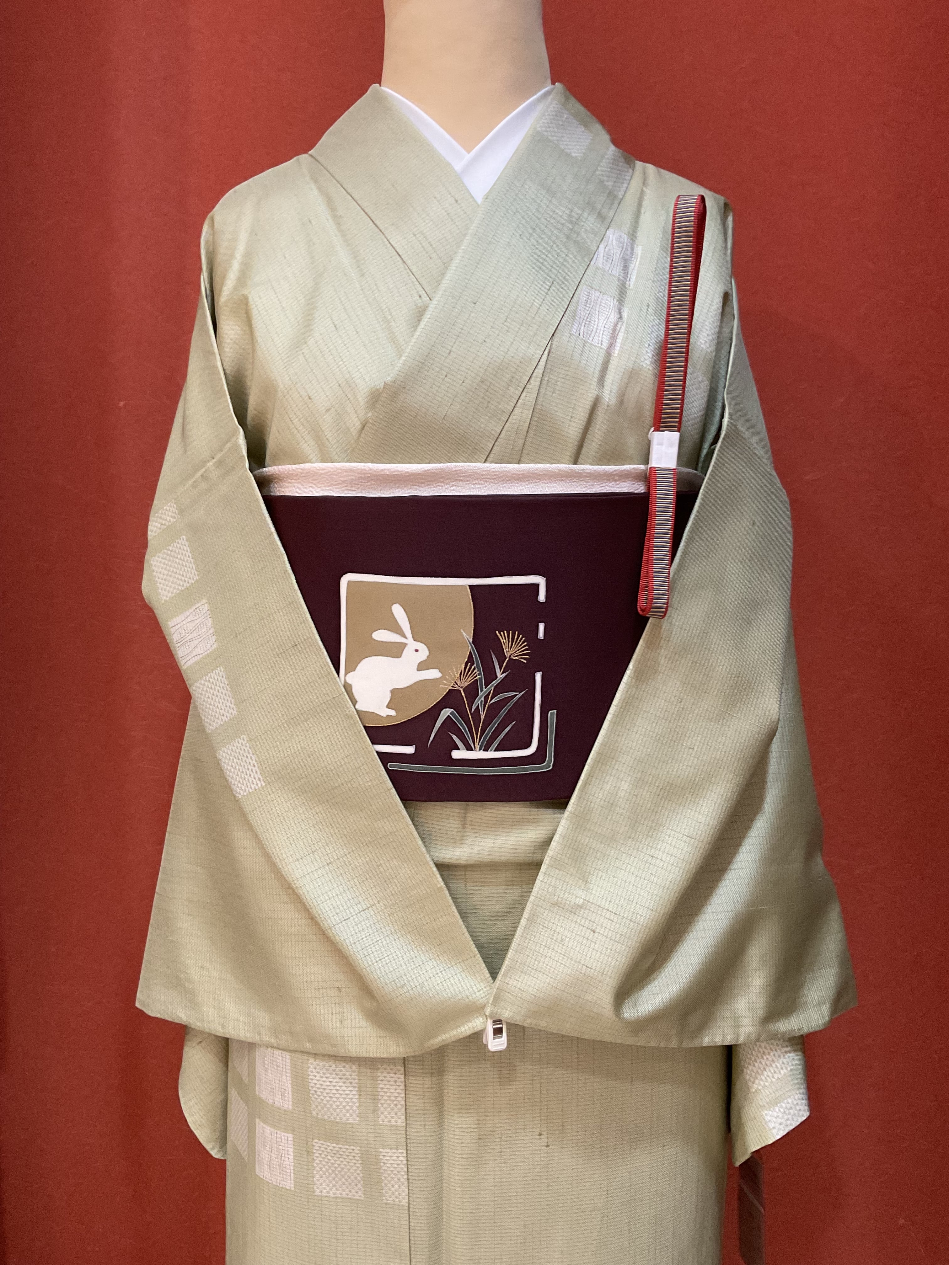少し艶感を感じる薄手の紬附下げです。並んだ四角にウロコ文と立涌が染められ、立涌部分は凹凸ある織地となっています。カジュアル過ぎずに装いに華やかさを与えるお洒落感ある紬附下げです。観劇やお食事会など、初秋のお出掛けにお役立てください。