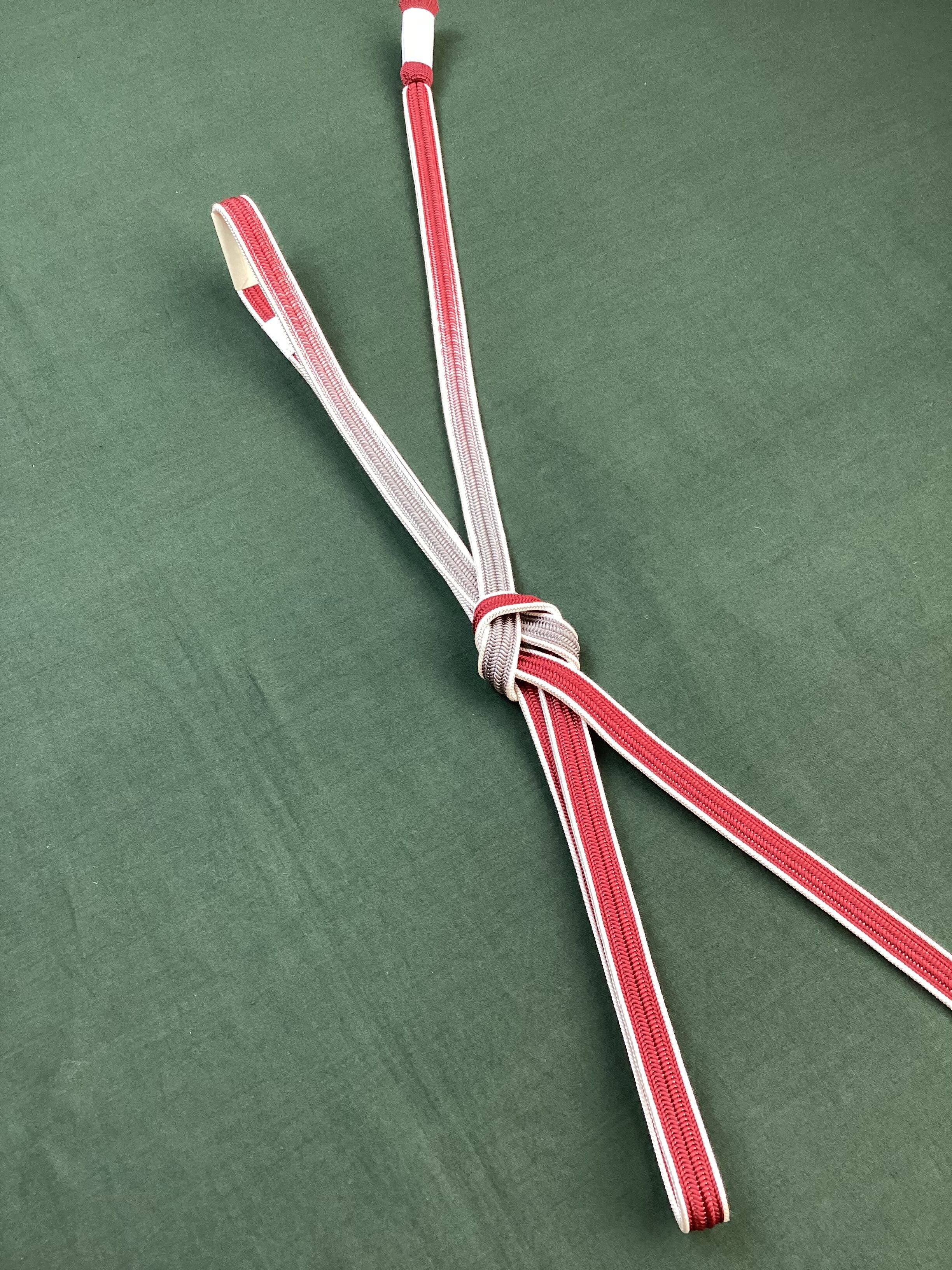 臙脂×グレー暈し【京都翠嵐工房】双葉レインボー帯締め(新品) 250826-3