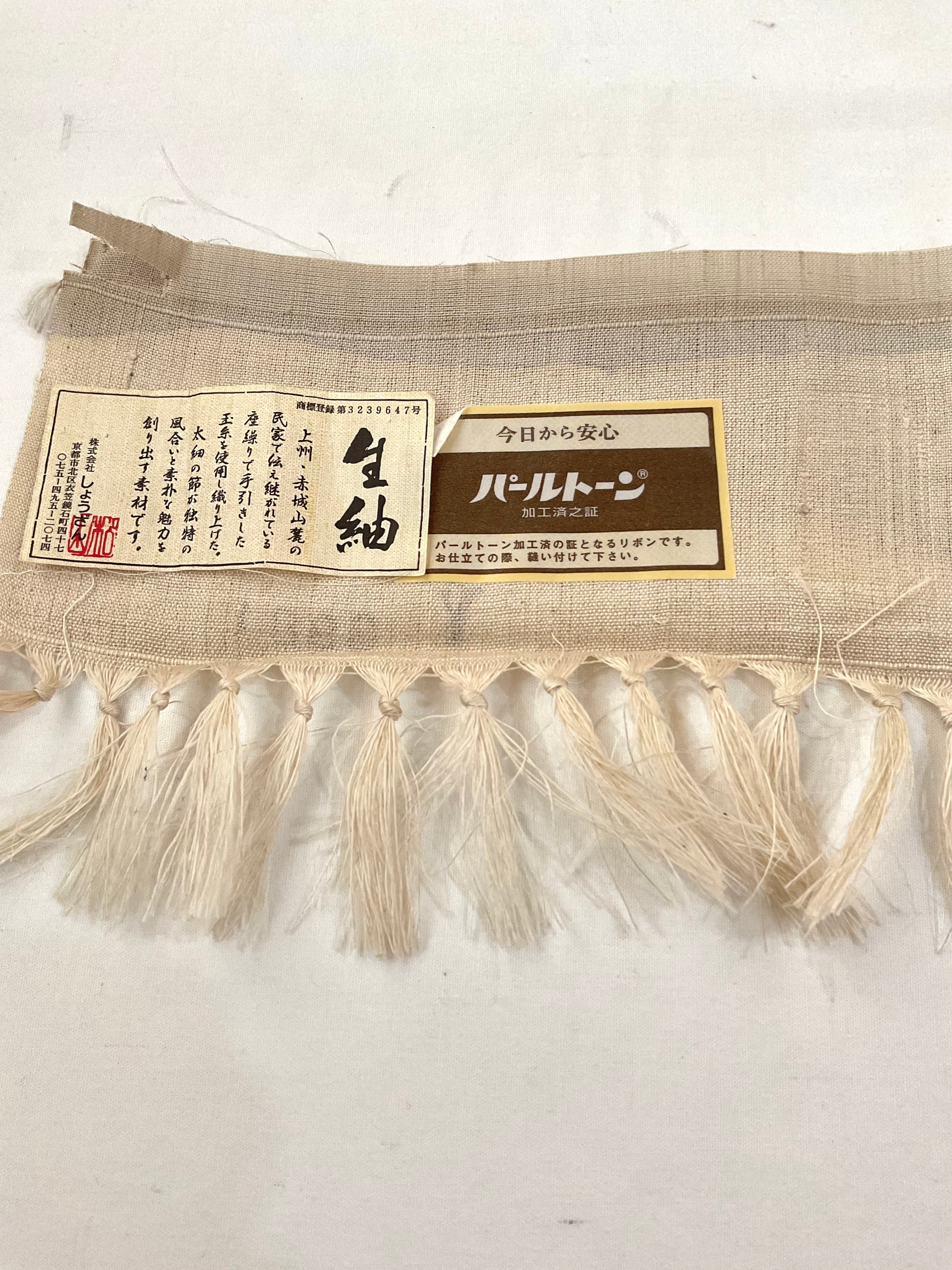 【単衣】砂色地蔓唐花刺繍文【しょうざん】生紬訪問着(しつけ・証反端付・未使用)250906-1