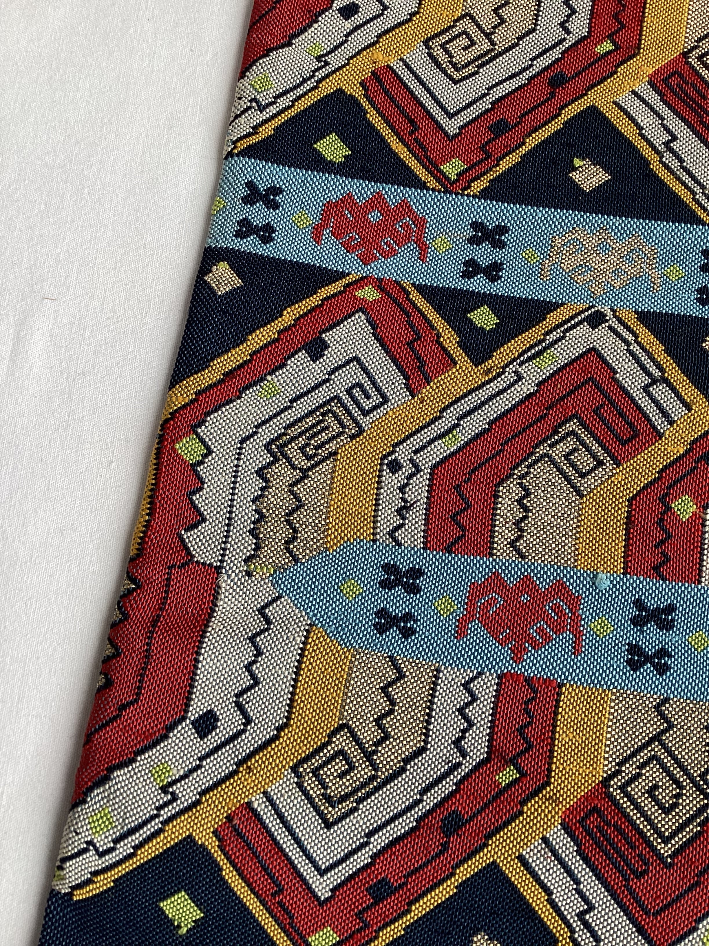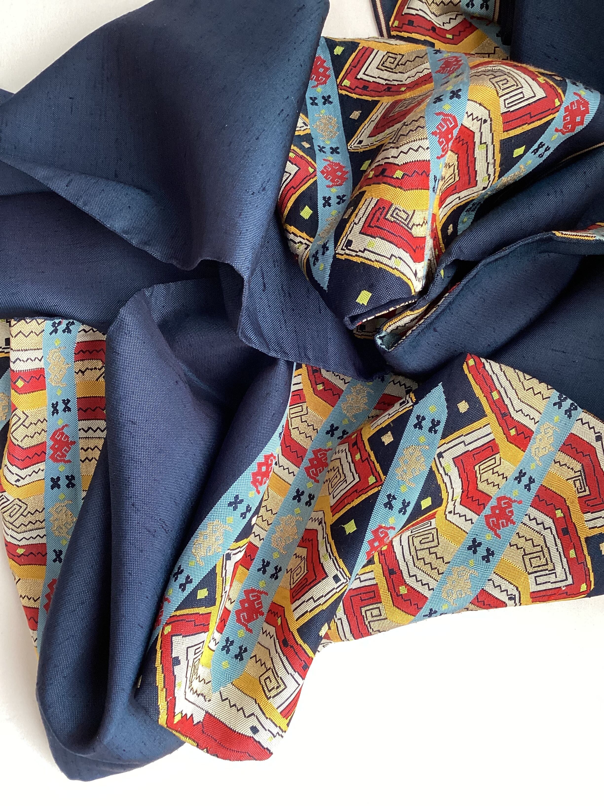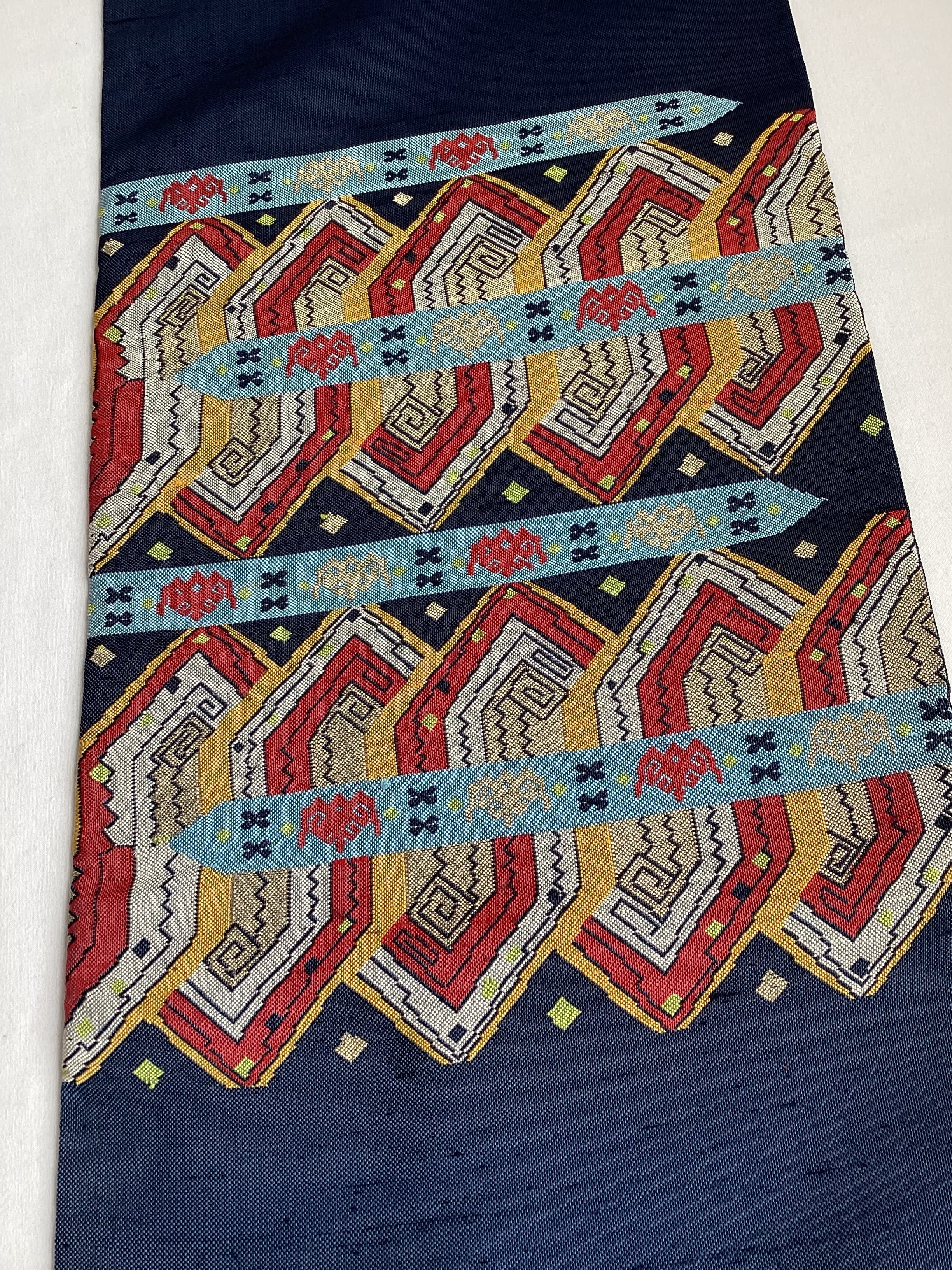 紺色地ペルシャ横段文【たつむら】紬袋帯 250909-1