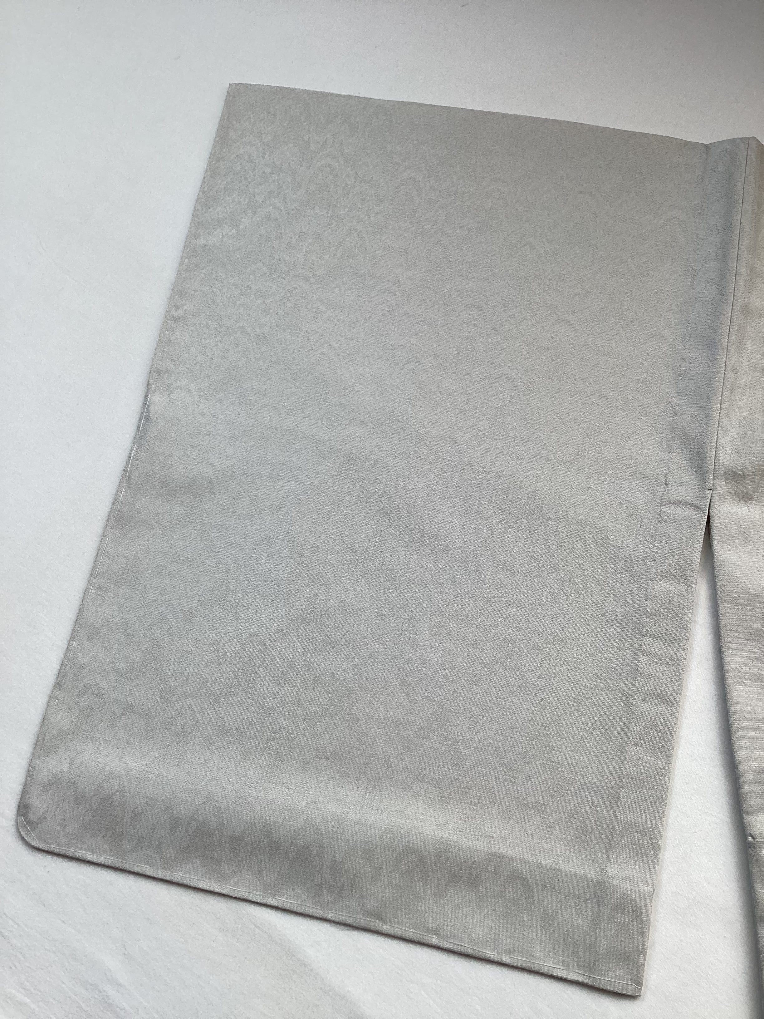 【単衣】灰白色地太子間道地紋お召し(しつけ付き) 250909-2