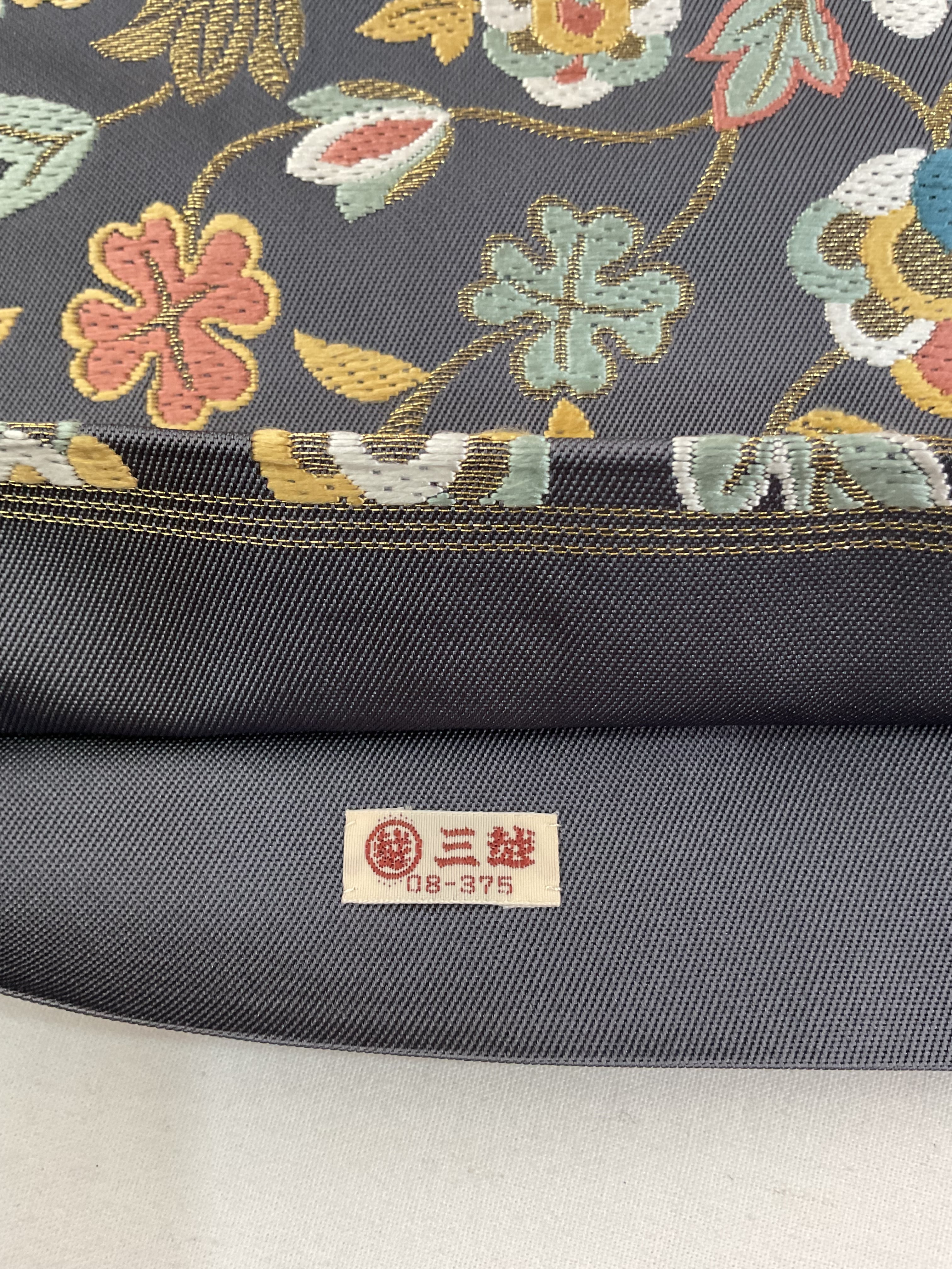 鼠色地装飾華文【川島織物】本袋帯(三越扱い) 250912-2