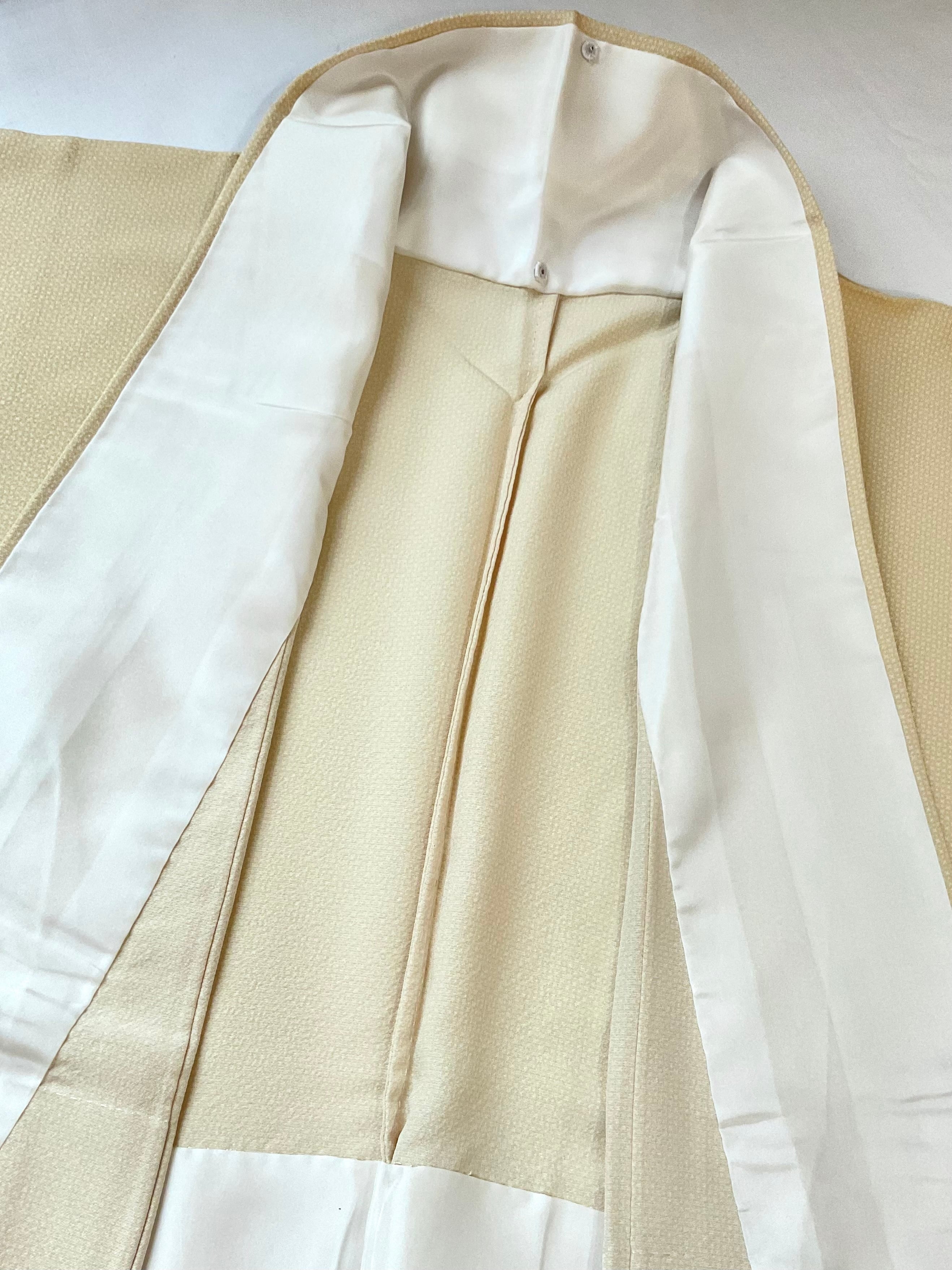 【単衣】白×クリーム色お召十江戸小紋(しつけ・居敷当て・反端付き・未使用) 250913-1