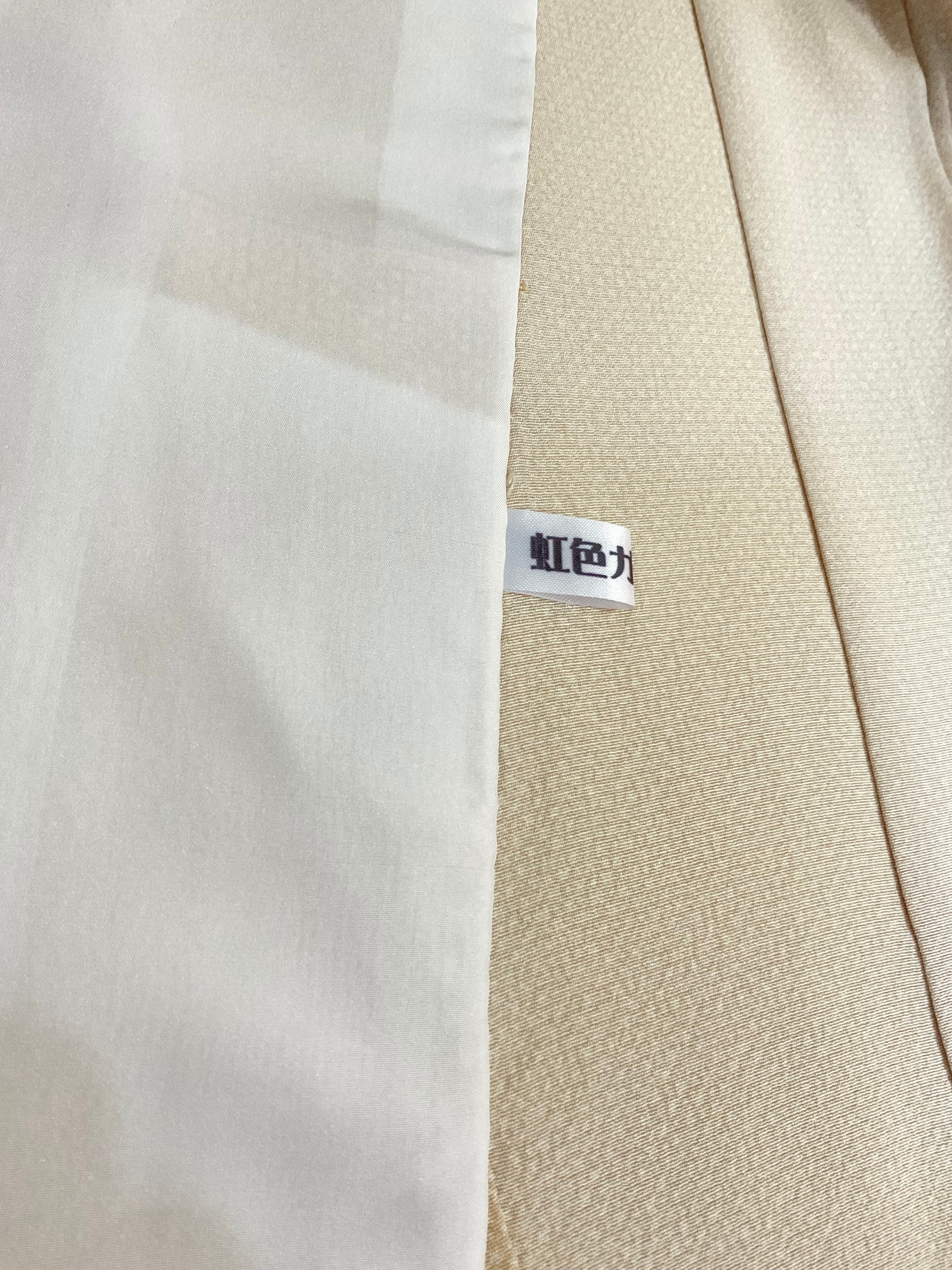明るいクリーム色で軽やかな単衣きものの装いをお楽しみください。