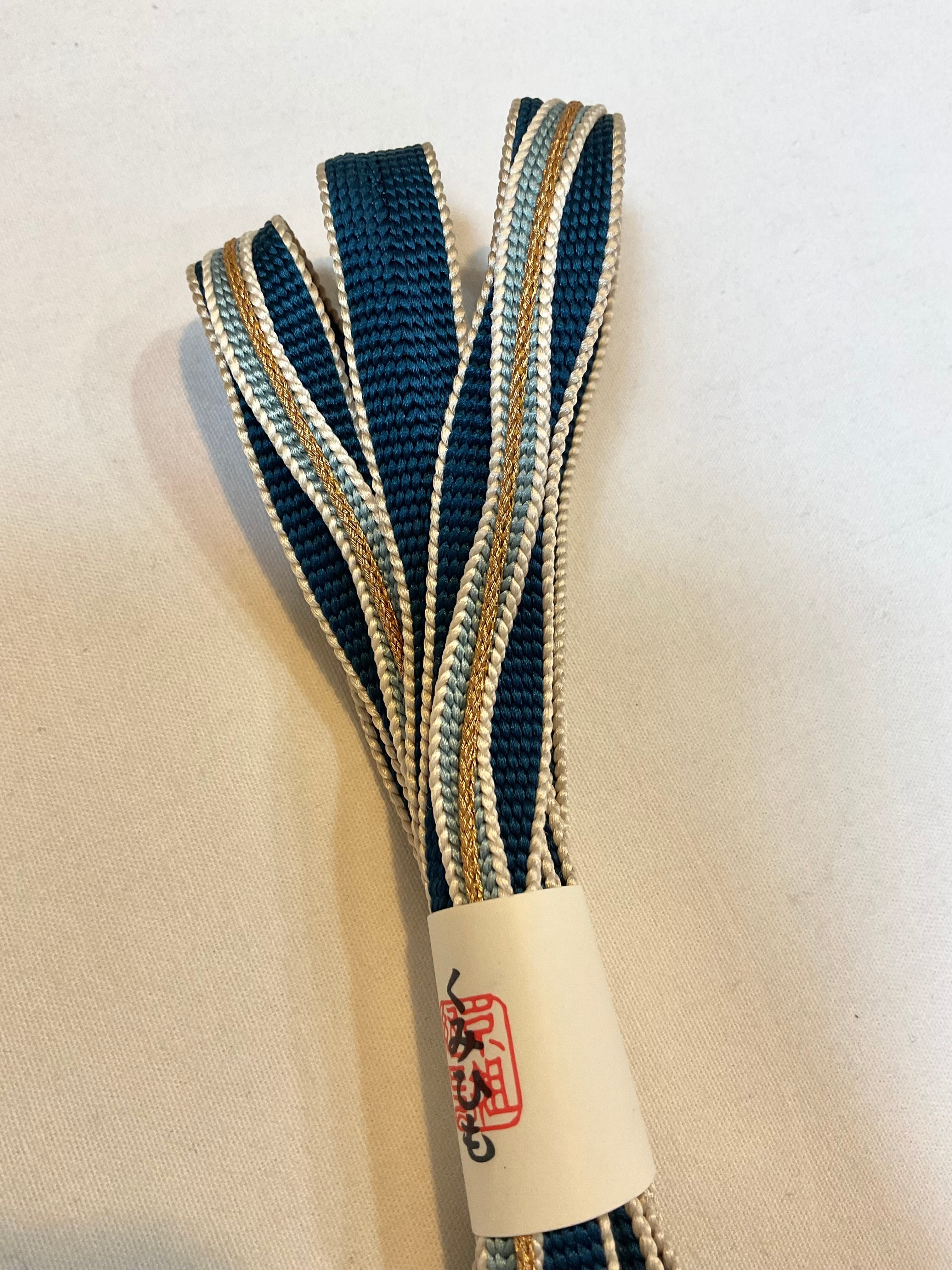 青×水色×金【京組紐】四代目藤三郎紐綾竹組帯締め(新品) 250914-3