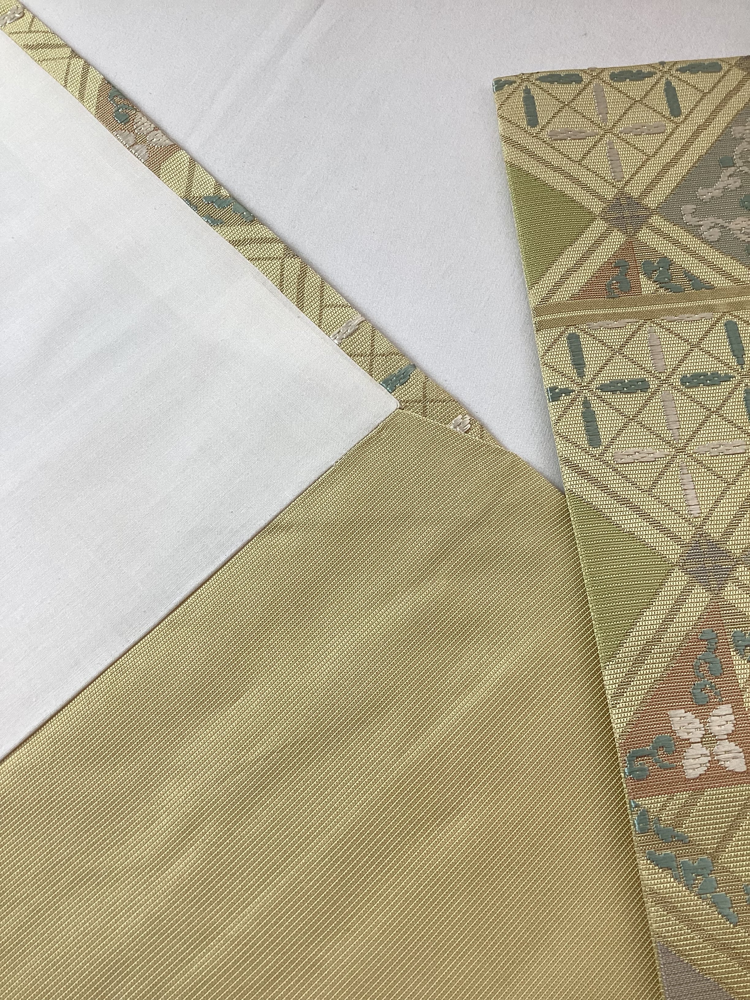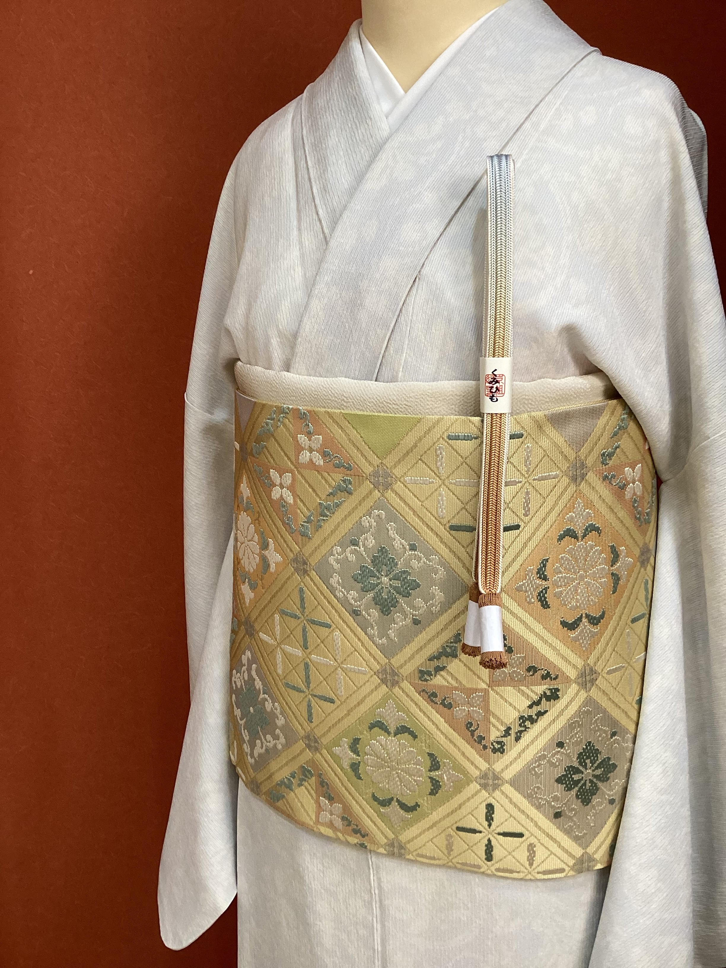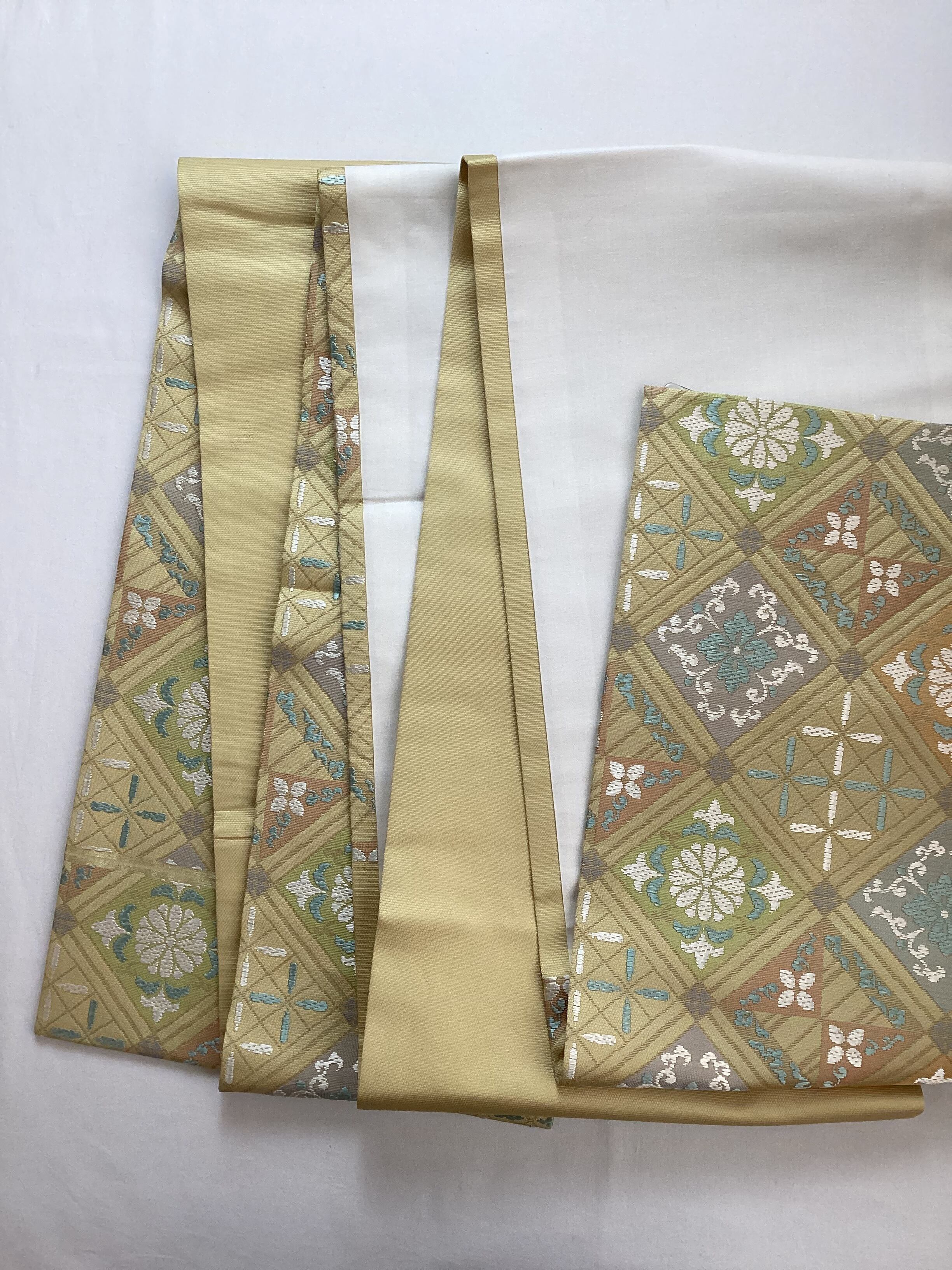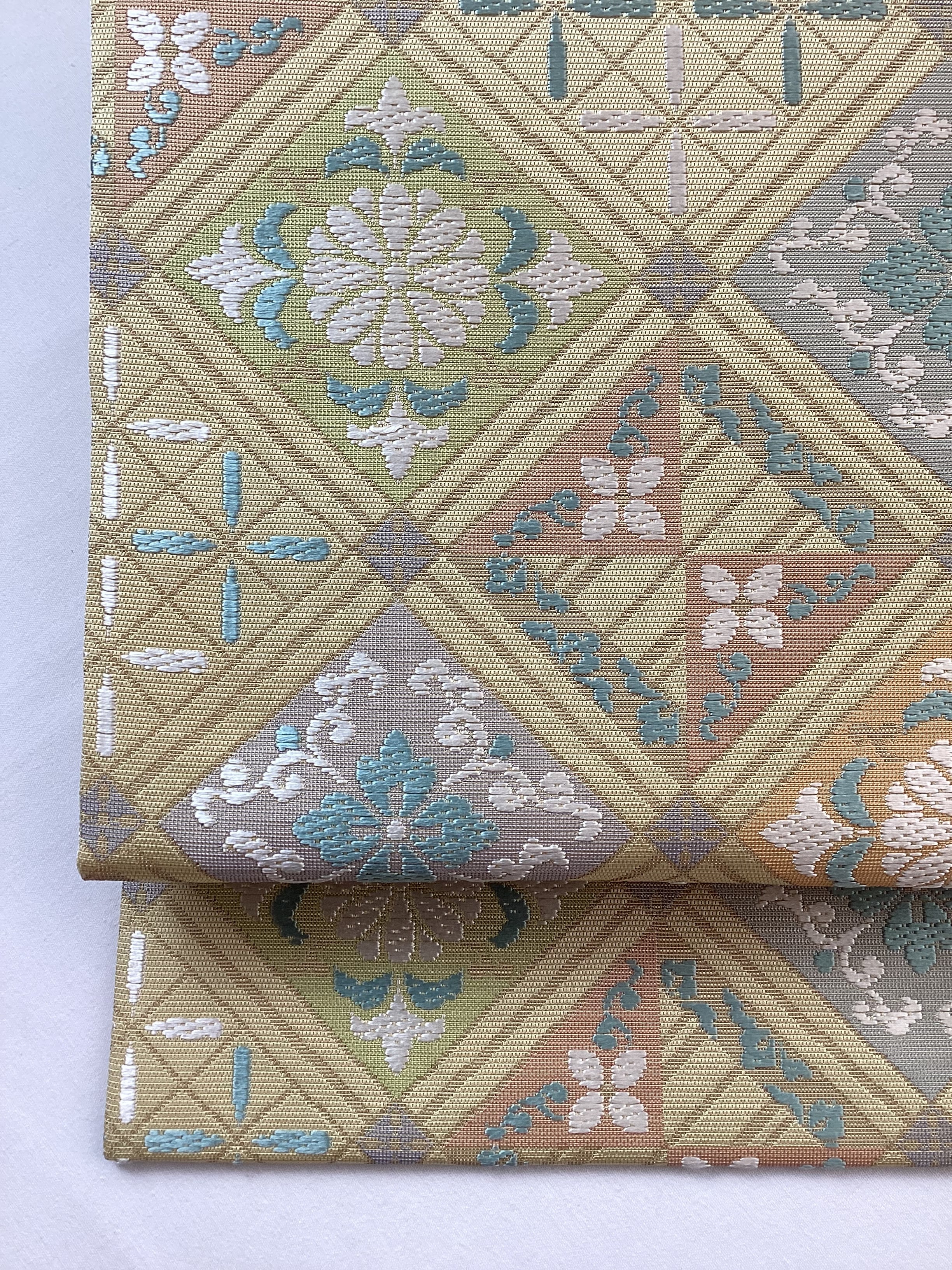 薄藁色地菱彩華文【川島織物】なごや帯 250921-2