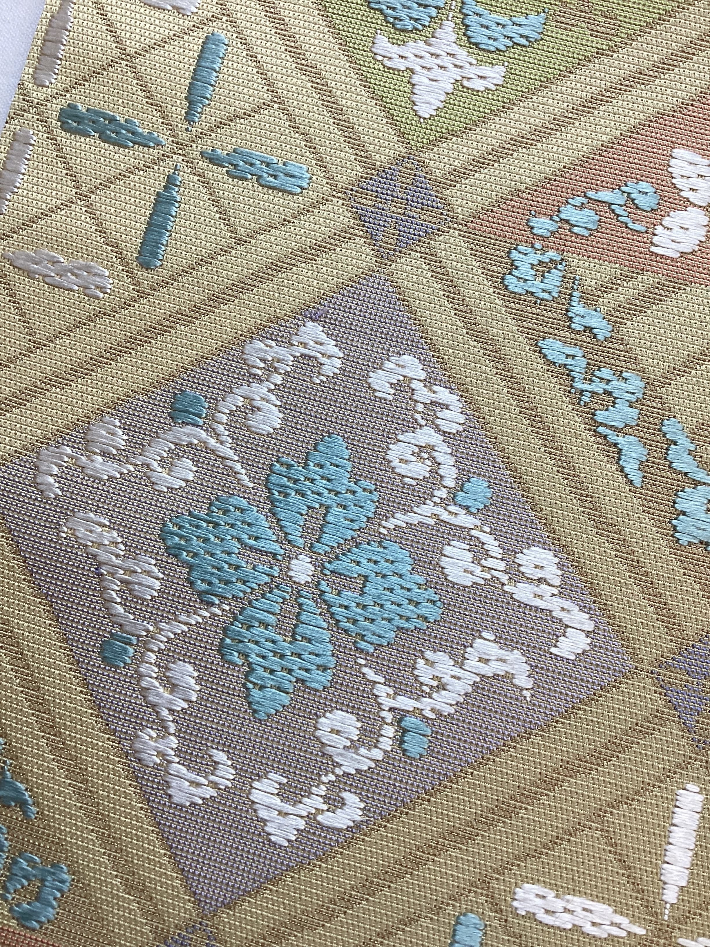 古典的な格調高い文様でありながら、結びやすい一重太鼓で着用出来るのが嬉しい【川島織物】のひらき仕立てのなごや帯です。流石老舗の織りの技術の良さ、品質の良さが感じられます。きちんと装ってお出掛けしたい時にいかがでしょうか?