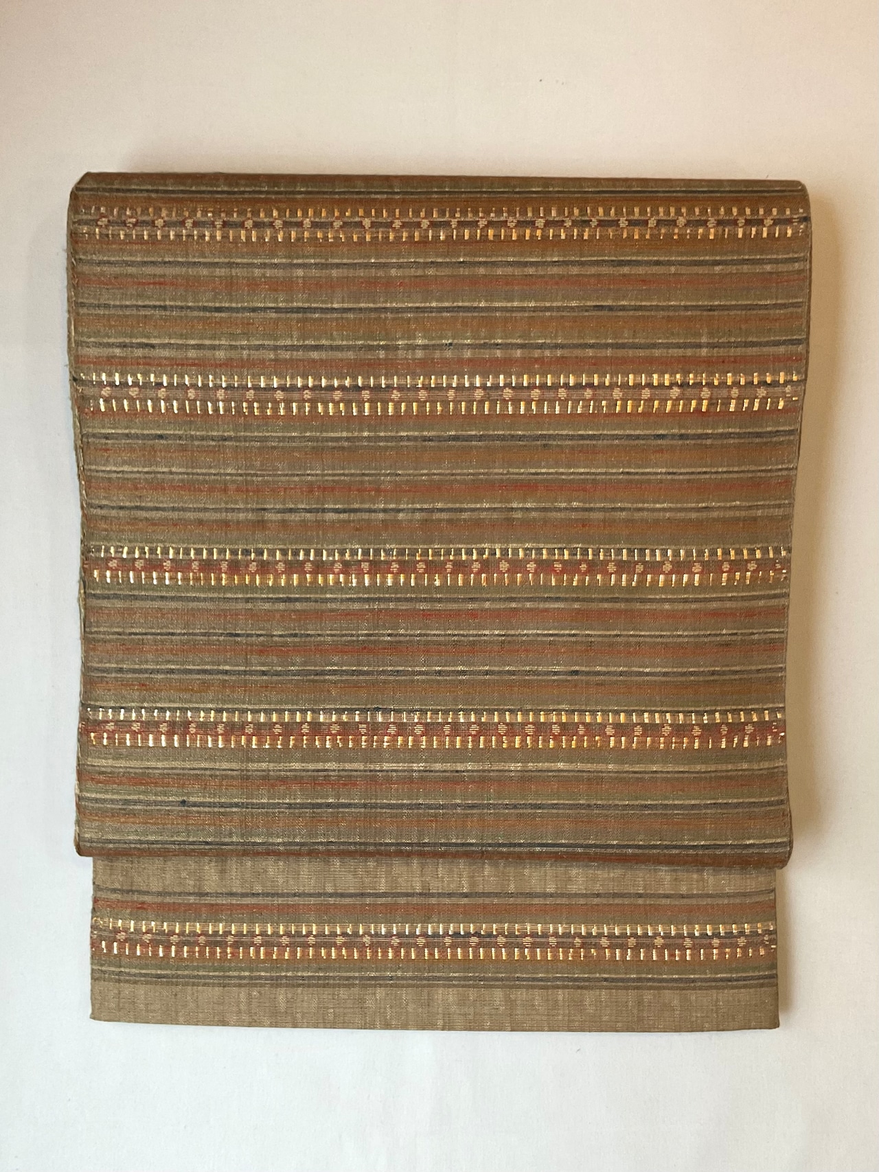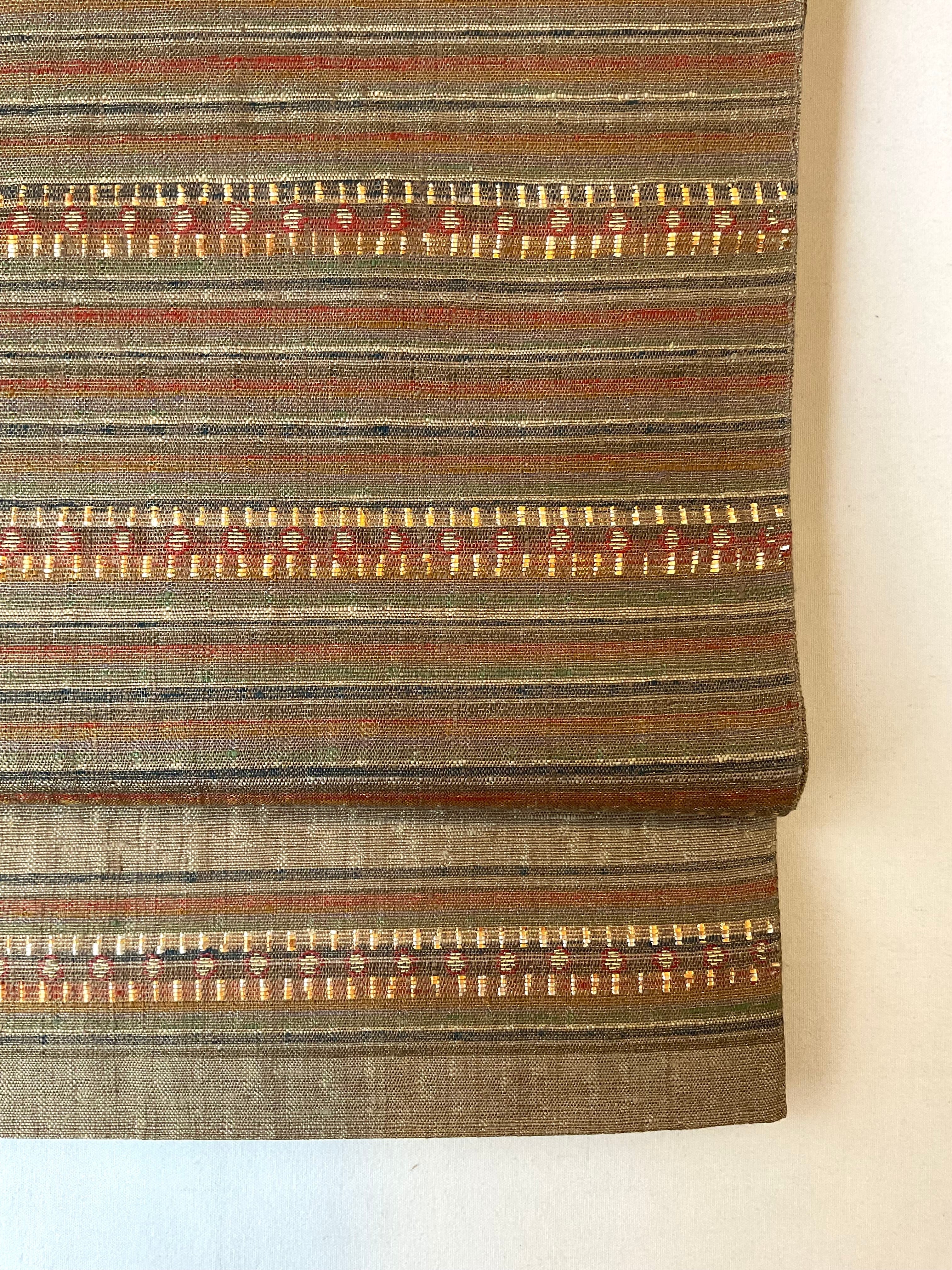 非常に軽く使いやすい質感となっており、季節的にも袷の時期から単衣の頃までお使いいただける3シーズン的な帯として、ご活用いただけると思います。結城紬、大島紬、塩沢紬などのお洒落着的な趣味の紬類のきものとの相性が良さそうです。