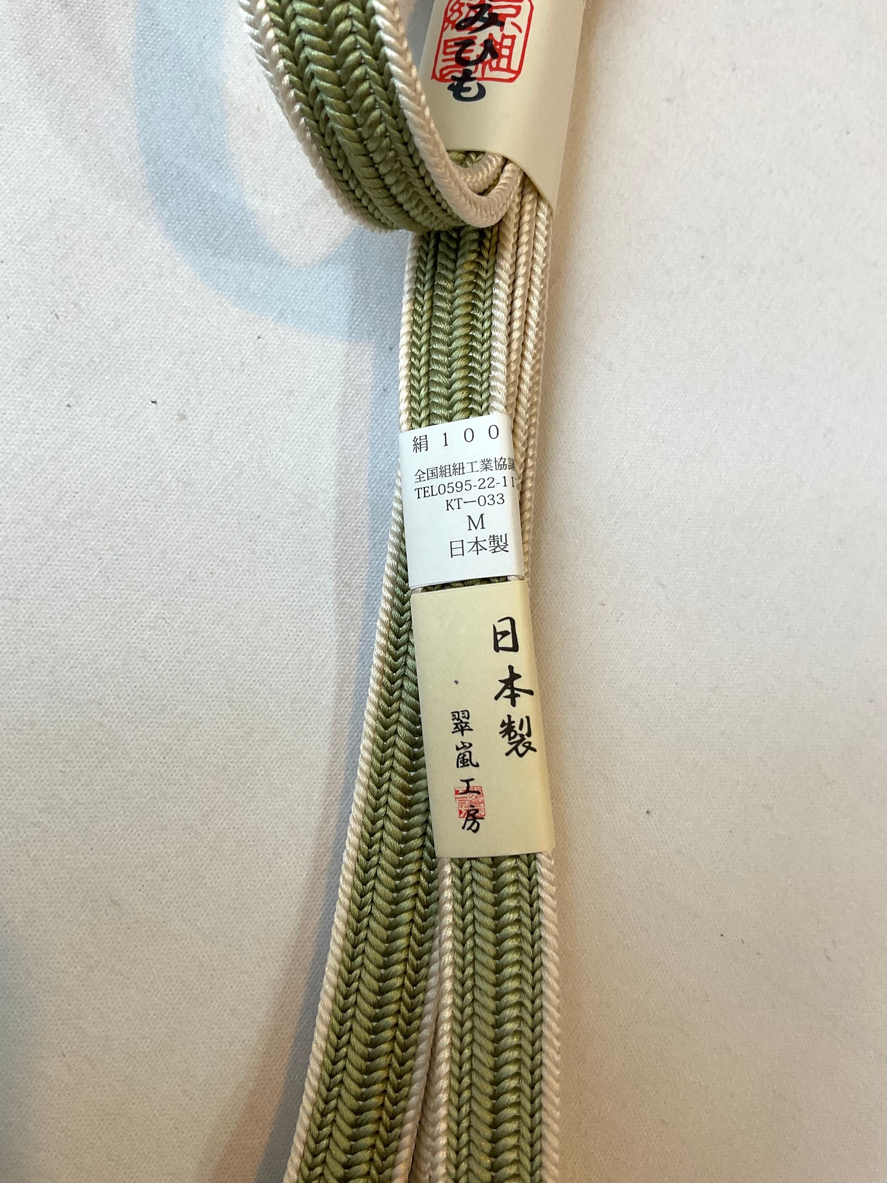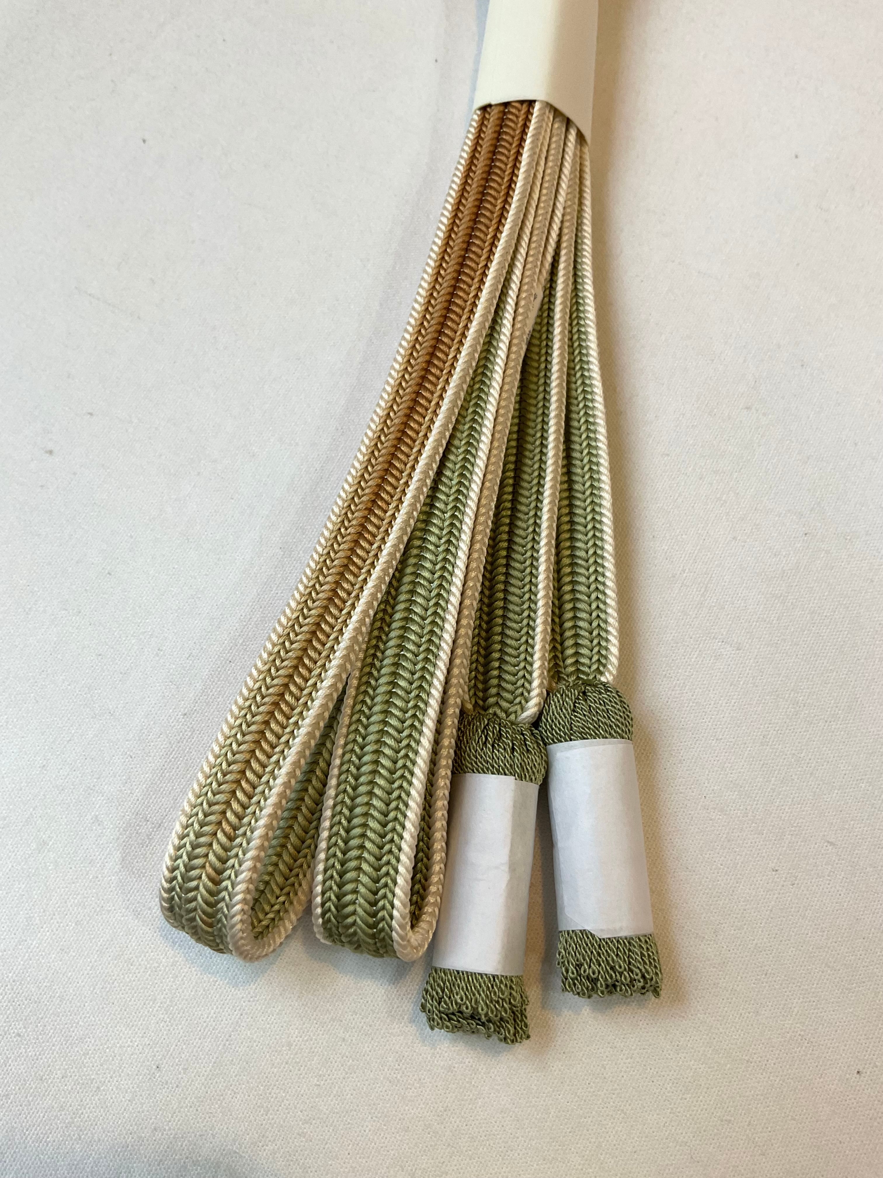 黄土色×抹茶暈し【京都翠嵐工房】双葉レインボー帯締め(新品) 250920-5