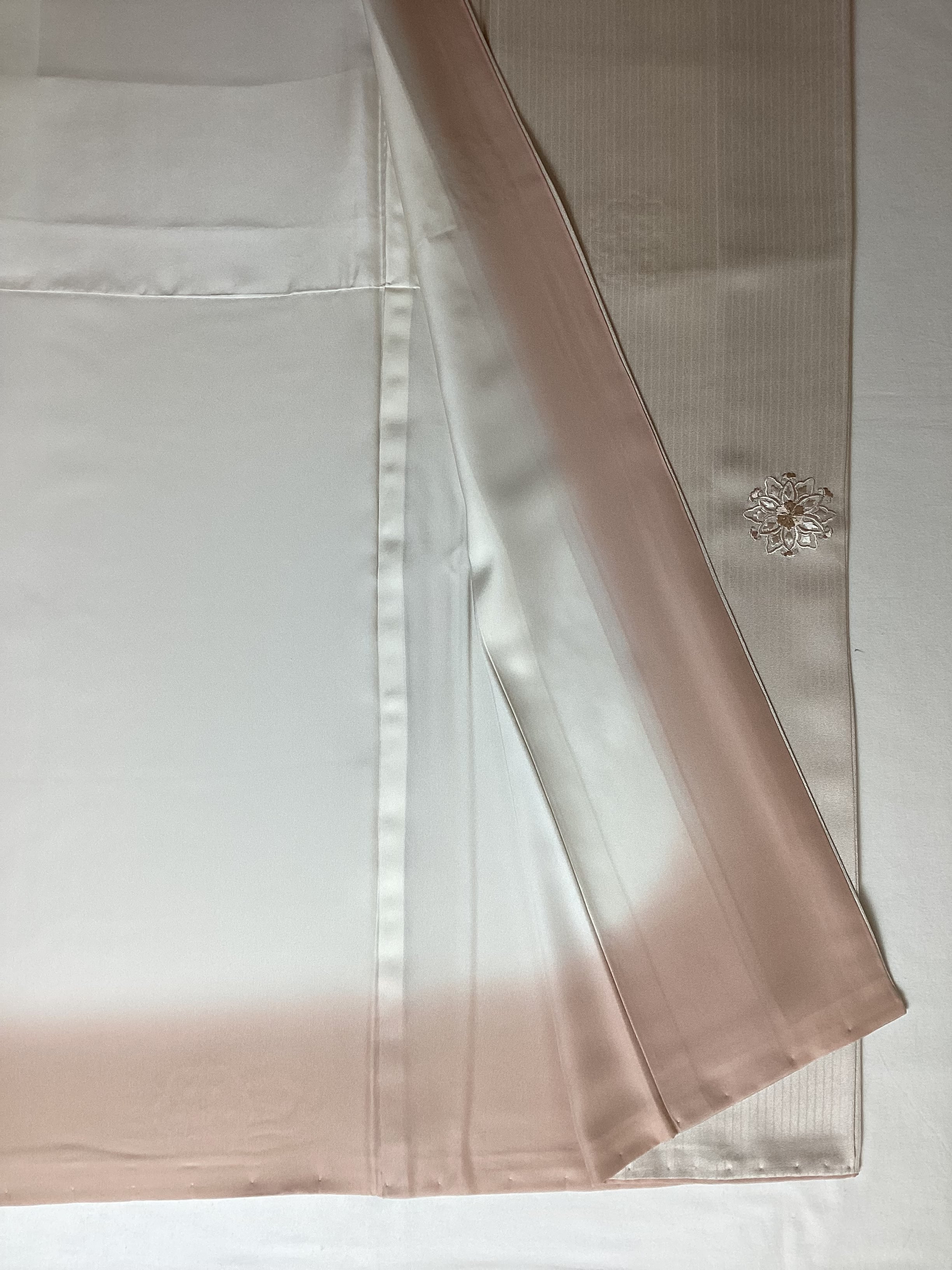 薄シェルピンク色地刺繍華文飛び柄小紋 250930-2