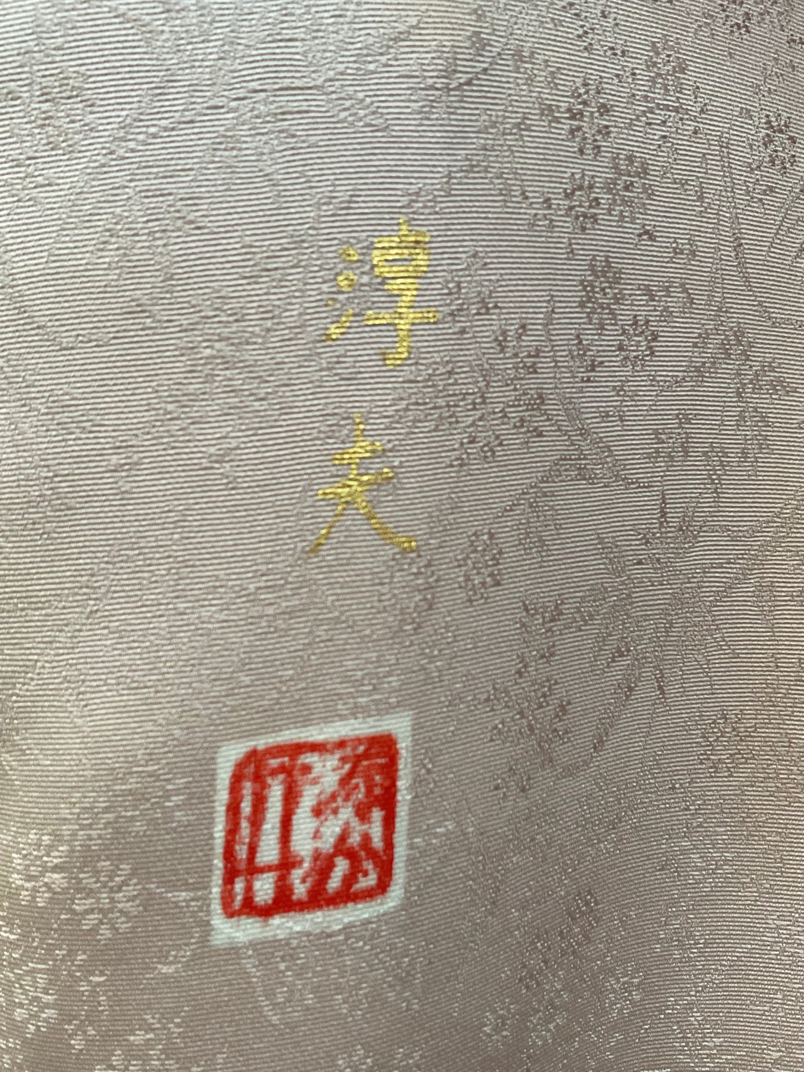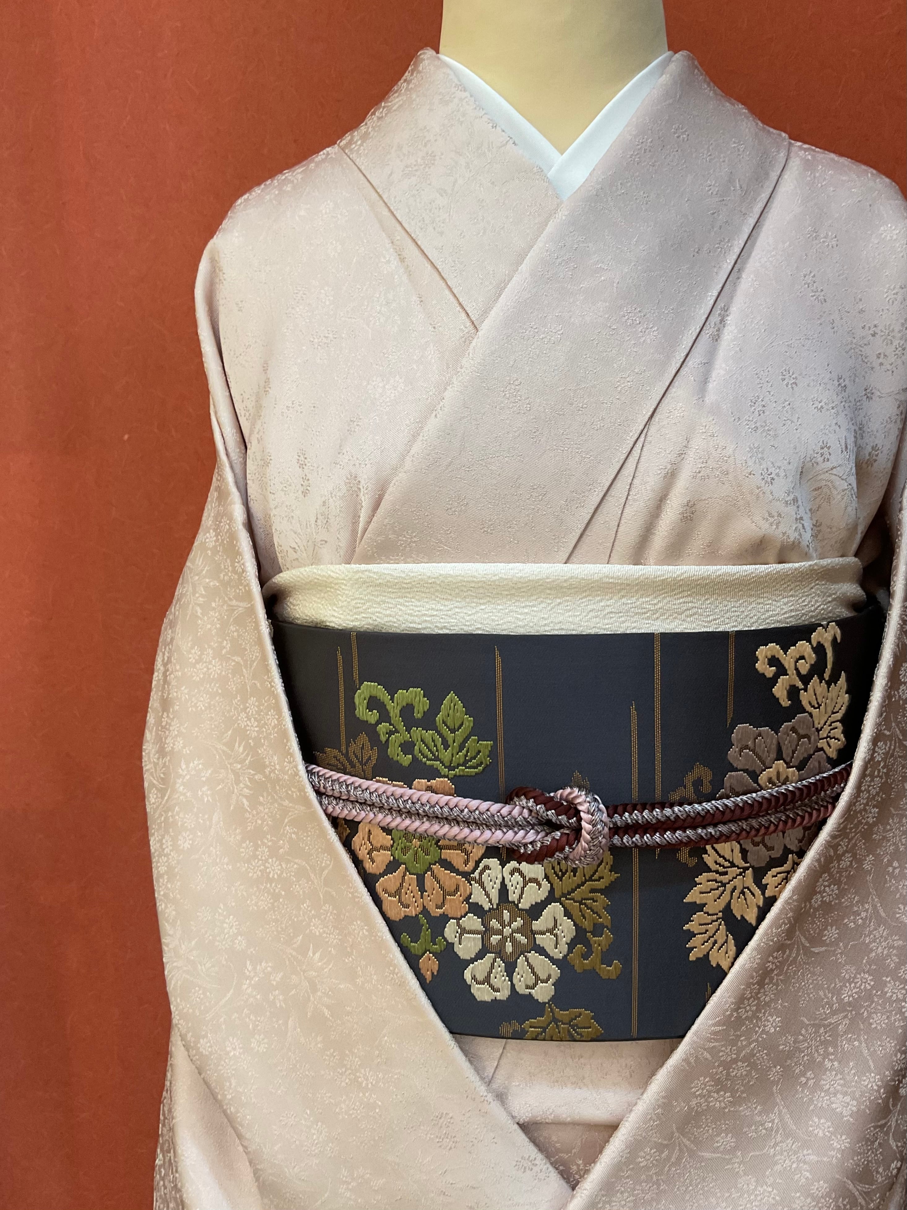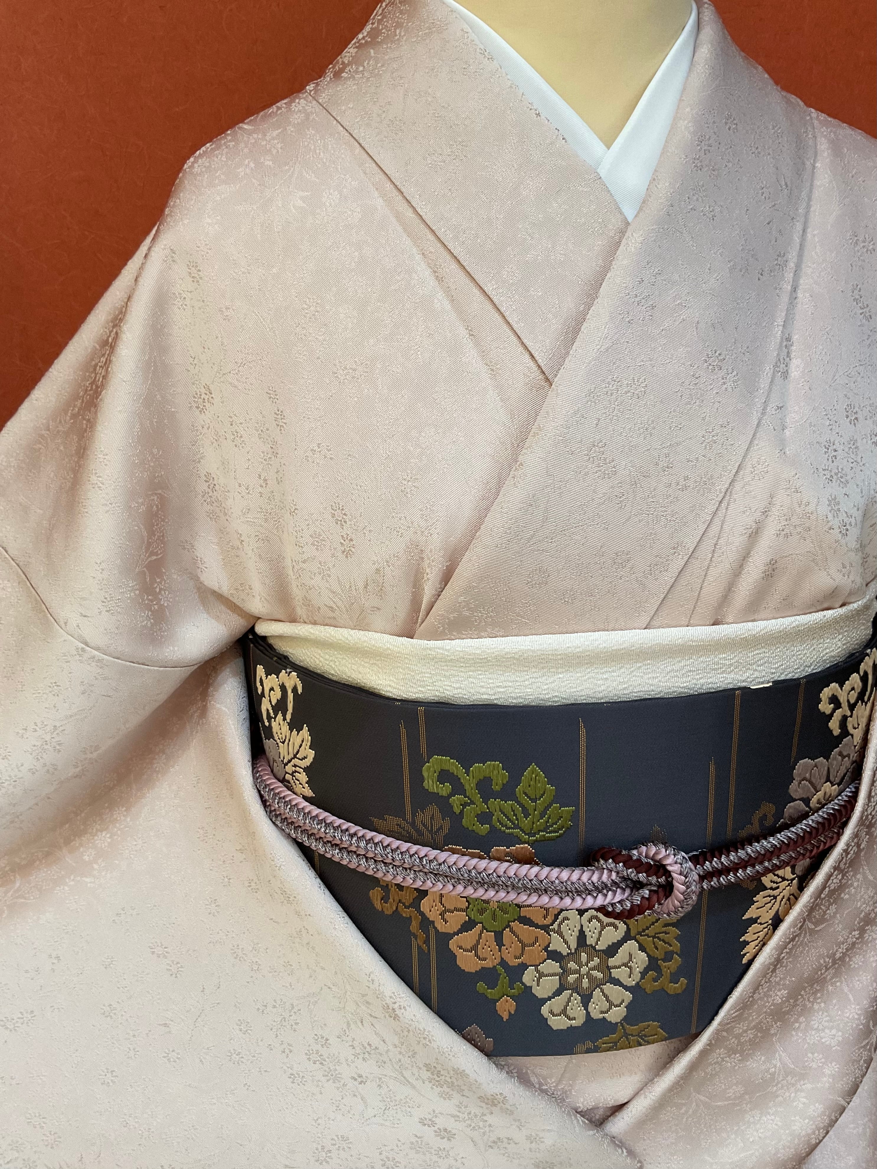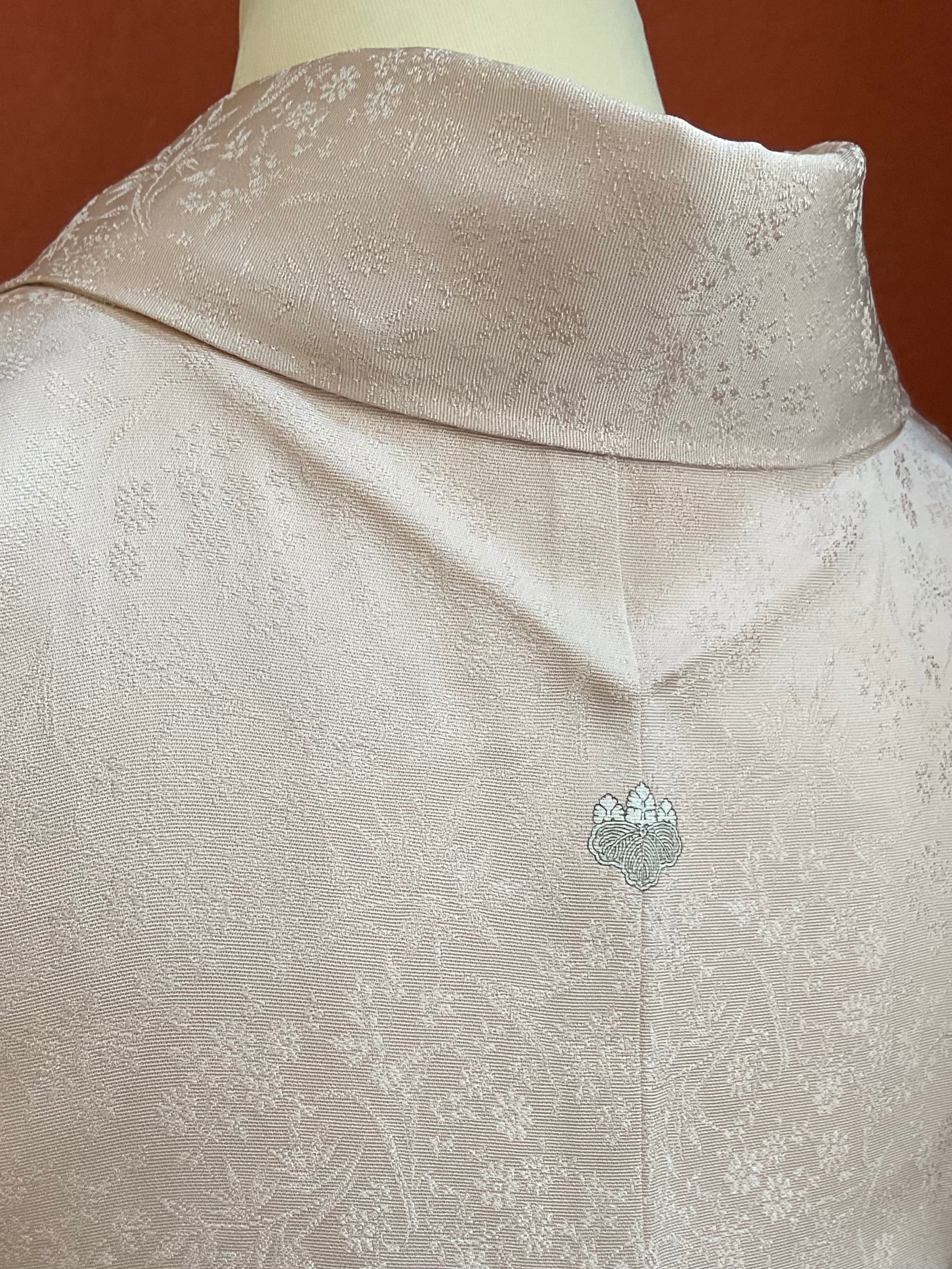 【色無地】桜色 草花地紋 一つ紋 落款入 251017-1