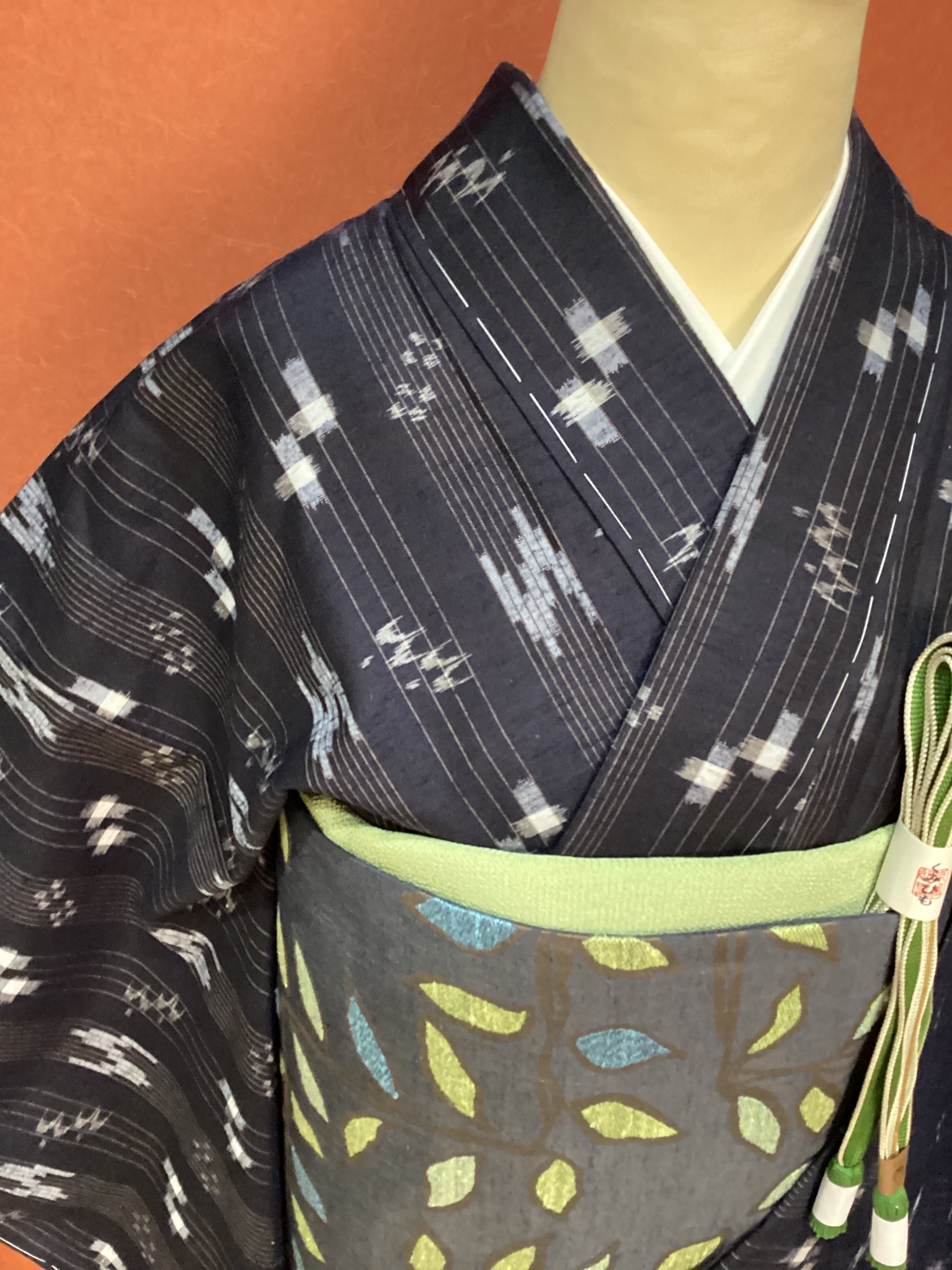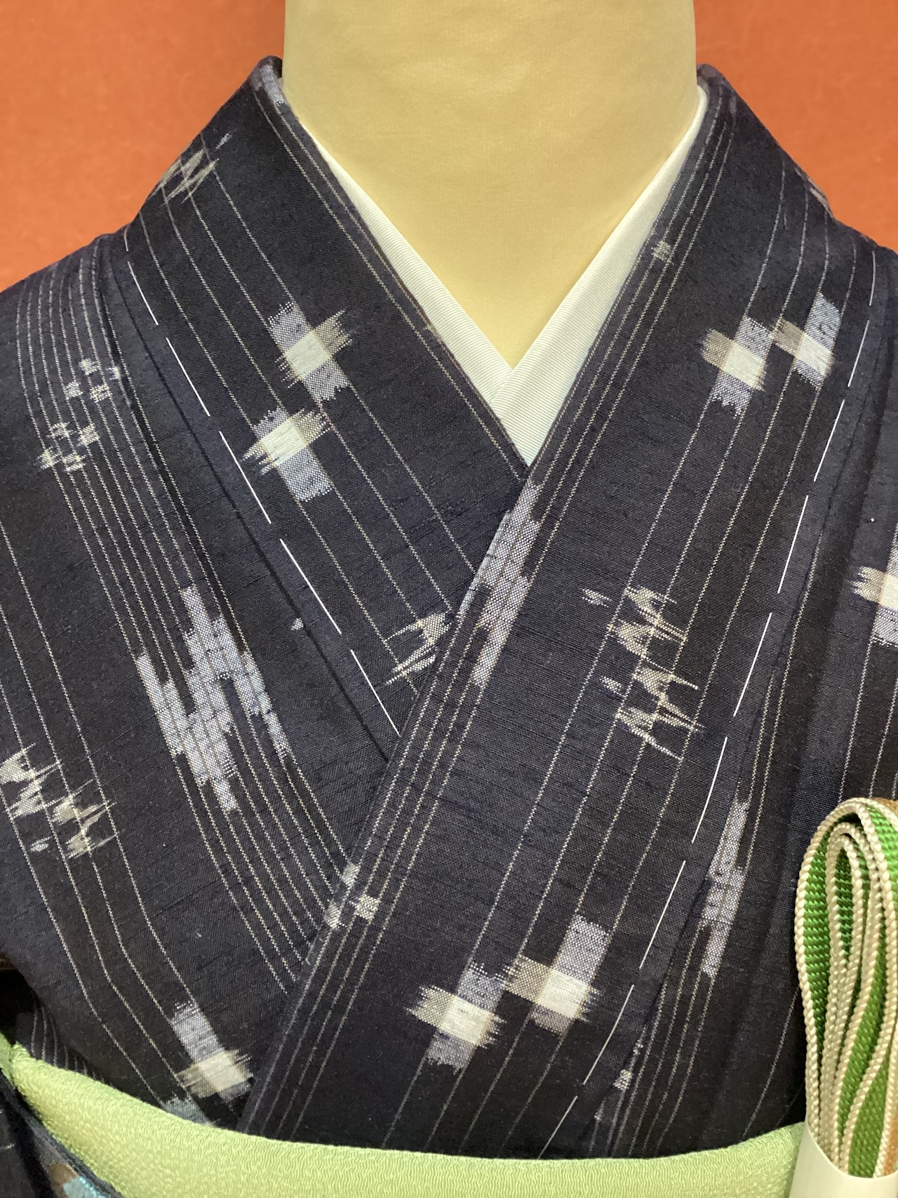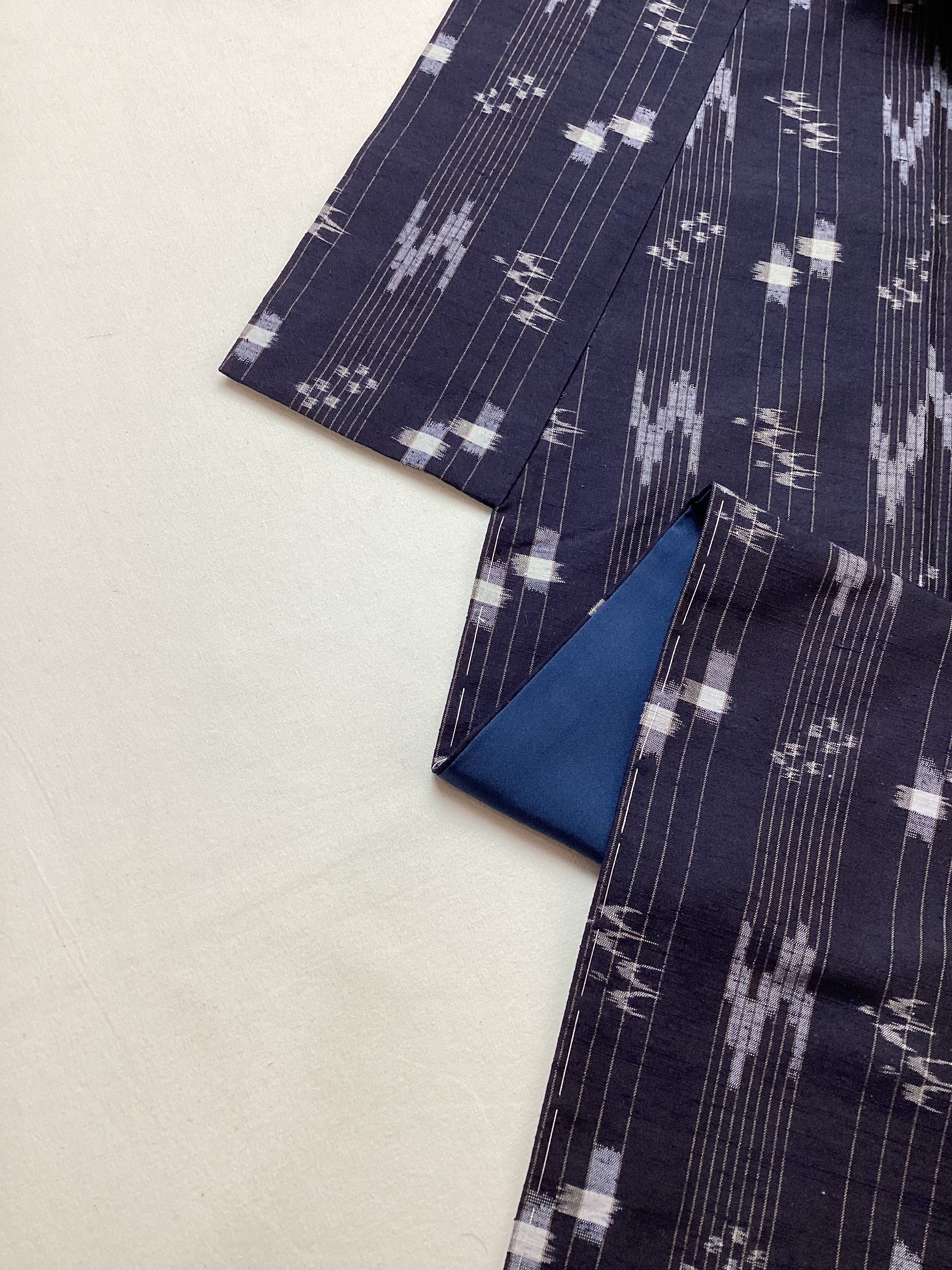 紺色地琉球絣文紬(しつけ・証付き)251021-1