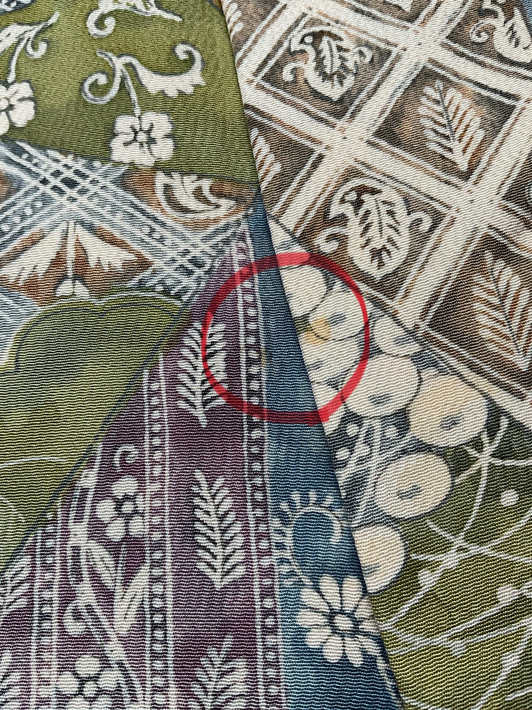 下前の衿元、上前胴裏にシミがあります。遠目と近くに寄った画像を掲載しております。