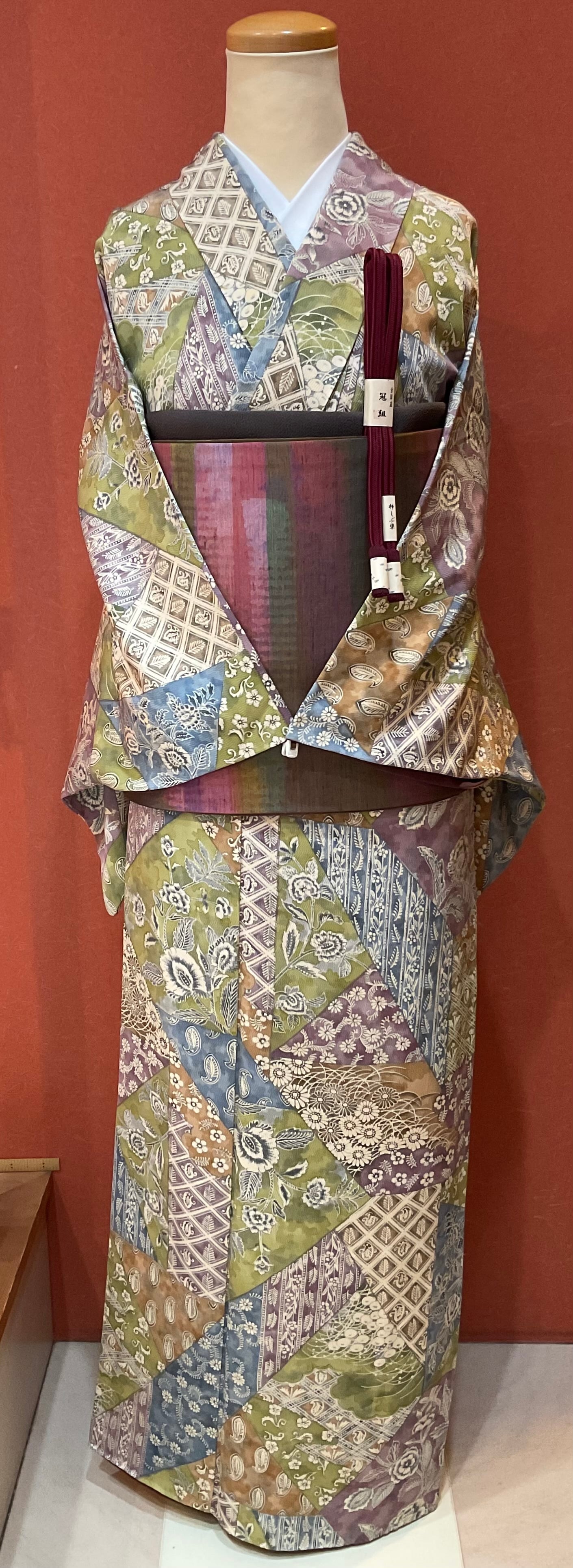 衿元については、これだけの多色使いの更紗文ですので、結果として目立ちにくいです。胴裏については表地にも響いておらず、着用に差し支えません。