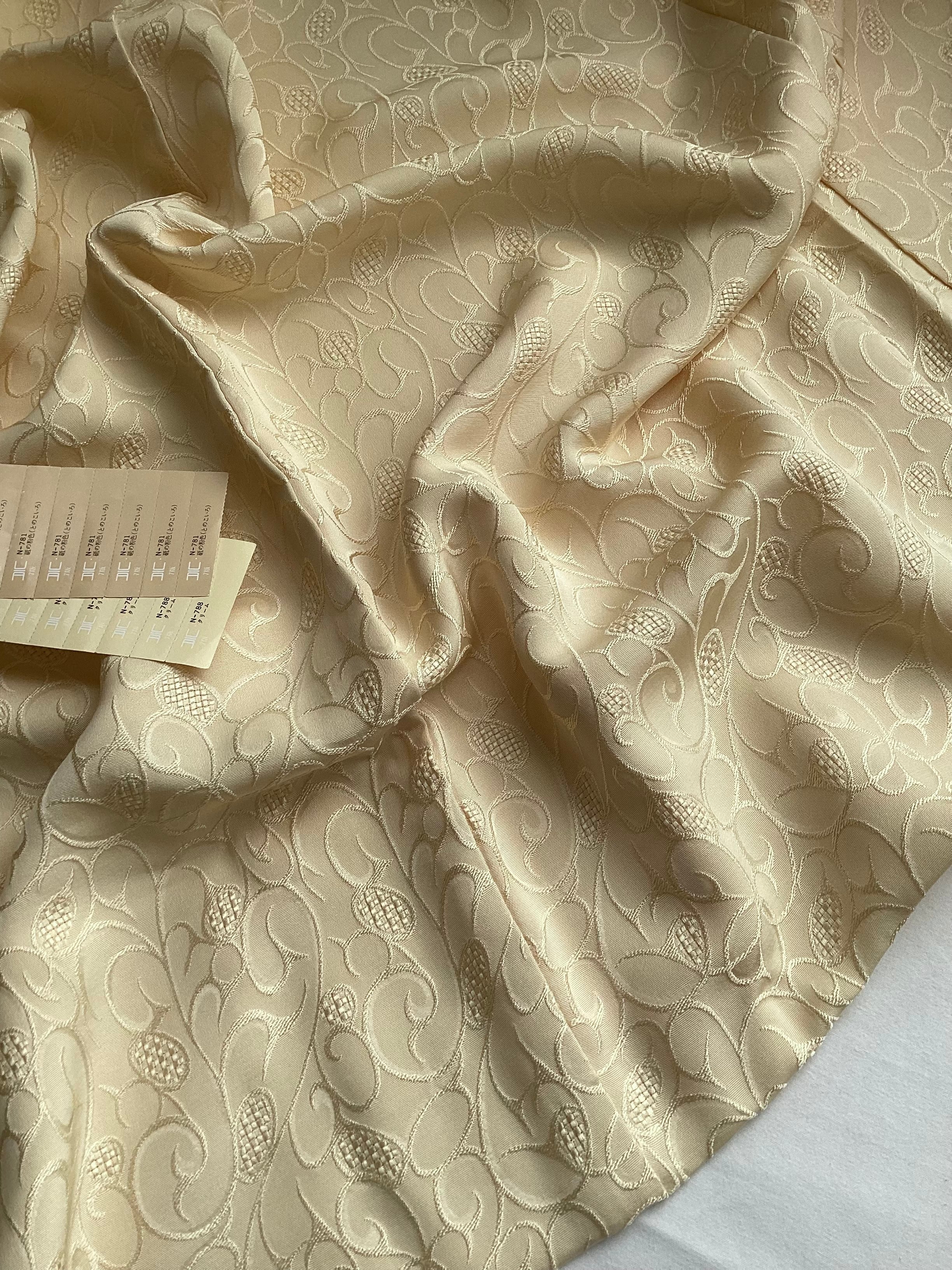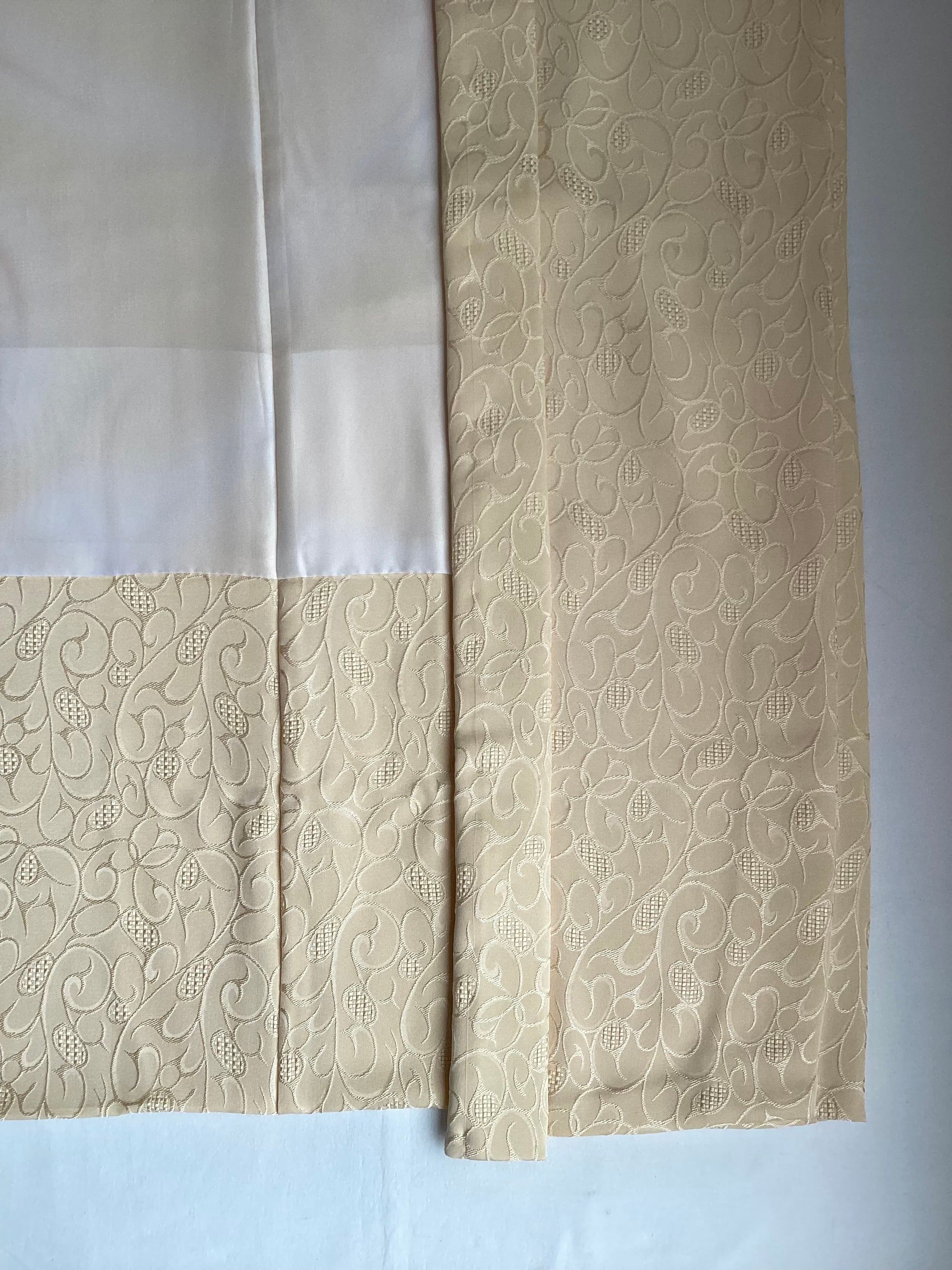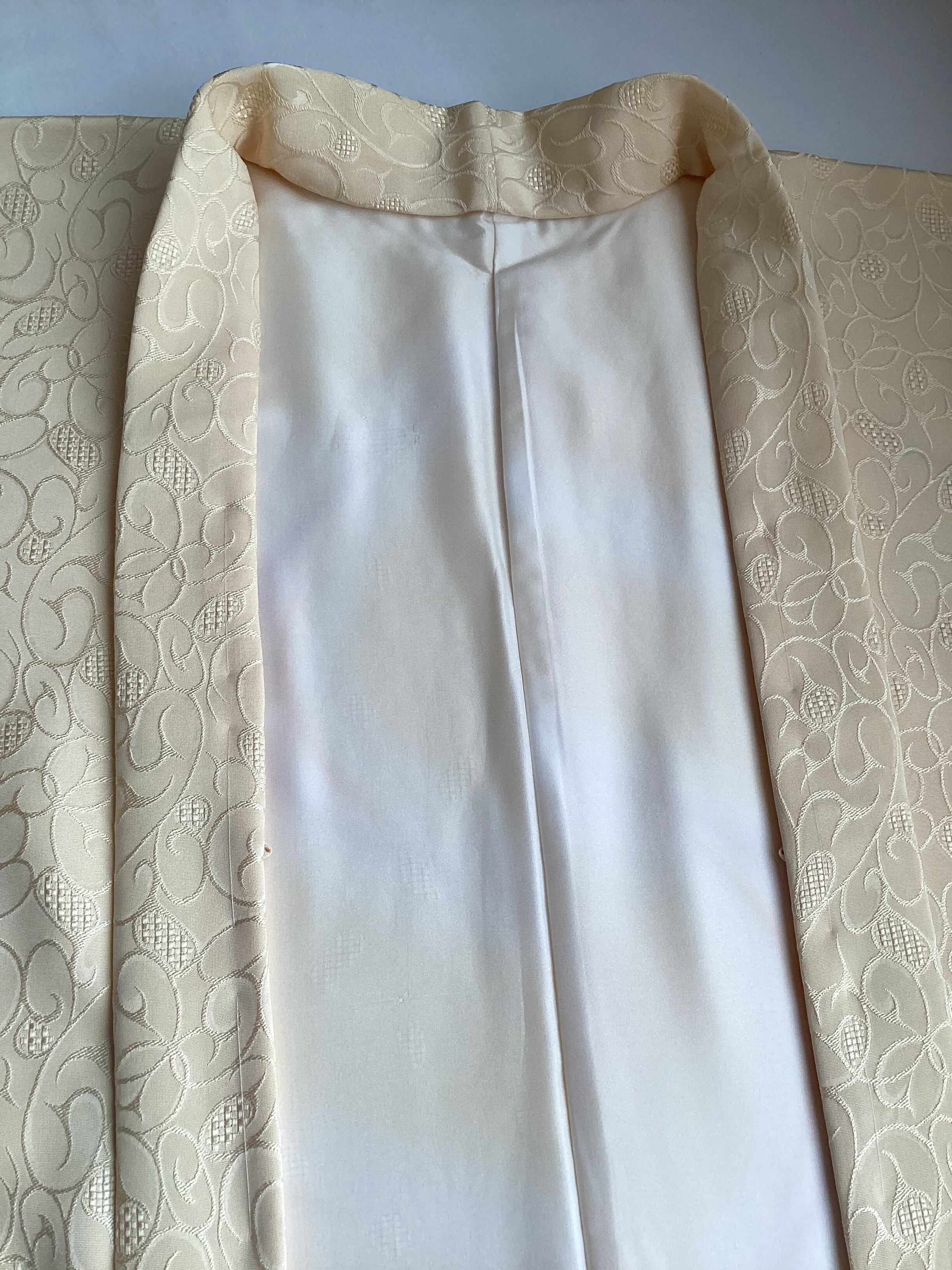 クリーム色地アラベスク蔓草文錦彩織羽織(しつけ・反端付き) 251031-1