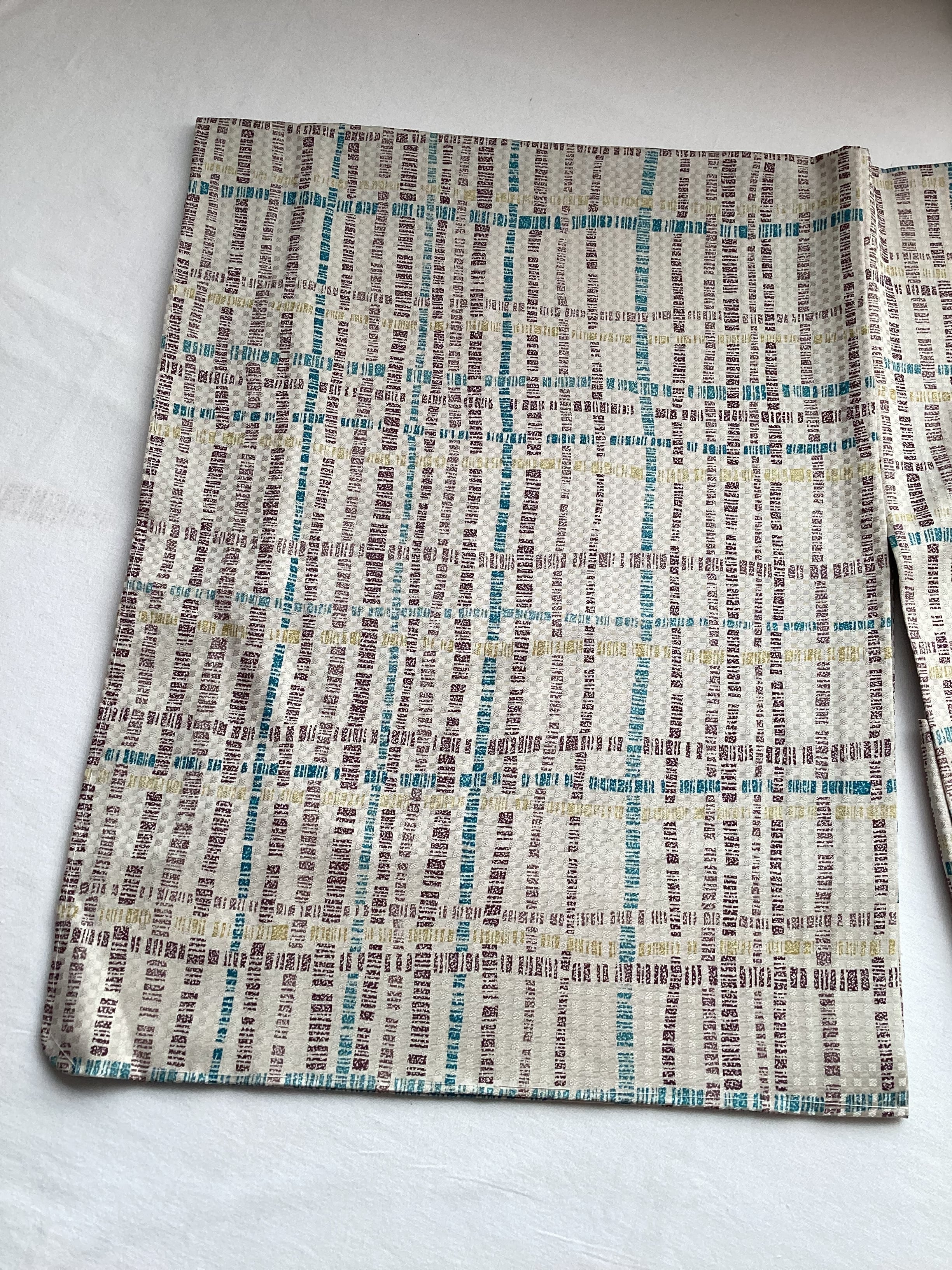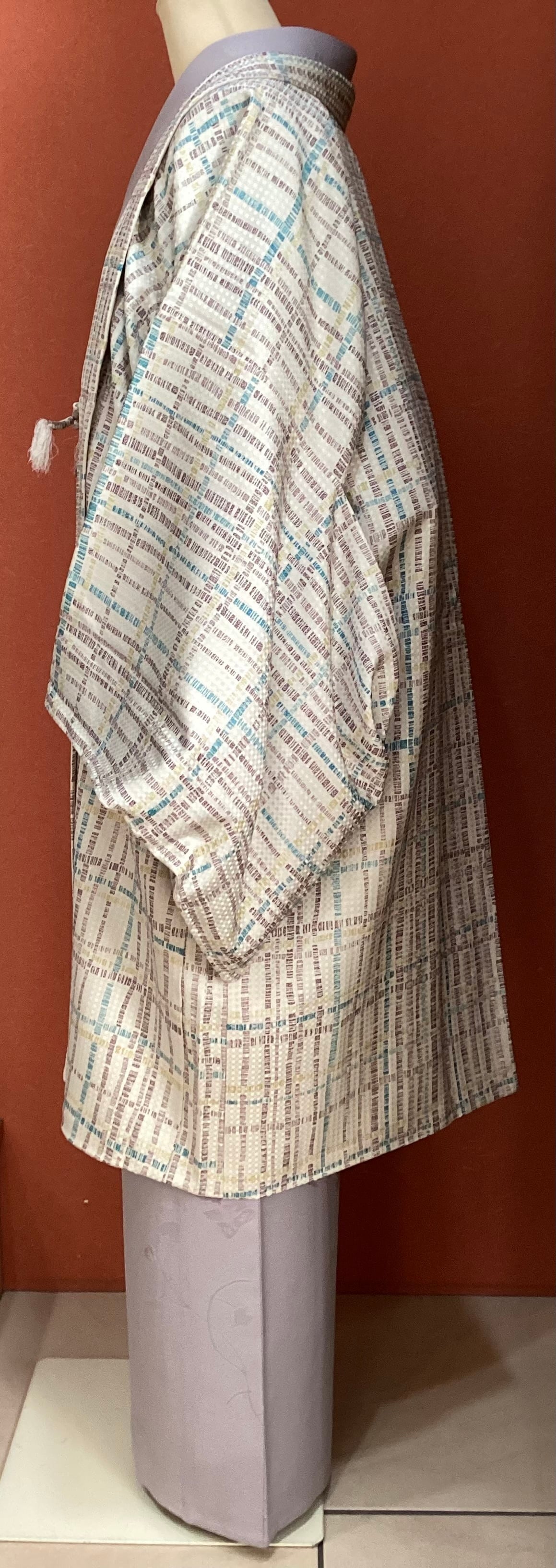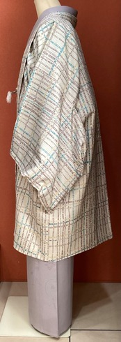 ベージュ地変わり格子文友禅染共布羽織紐付き羽織(しつけ・反端付き)251201-5