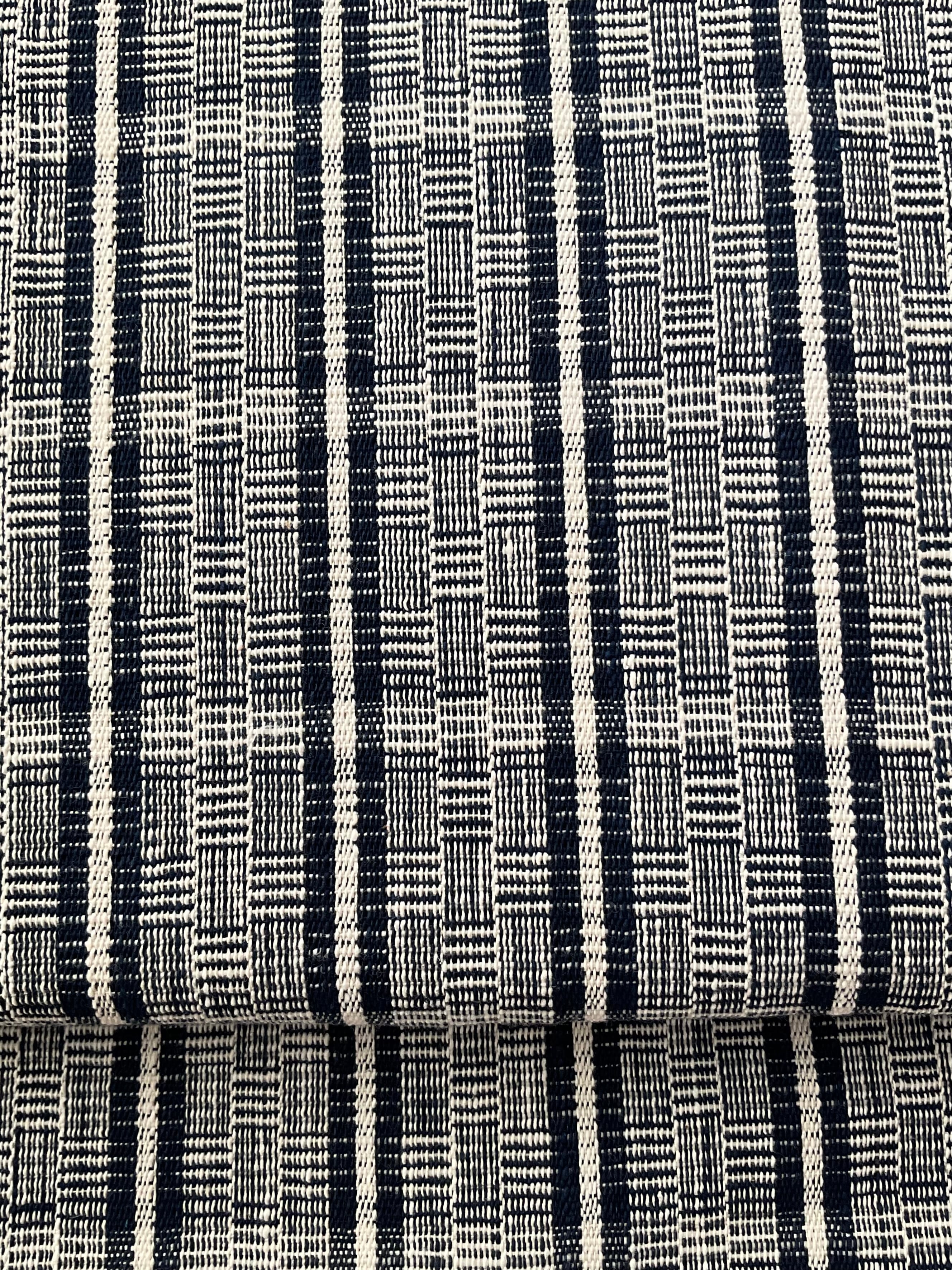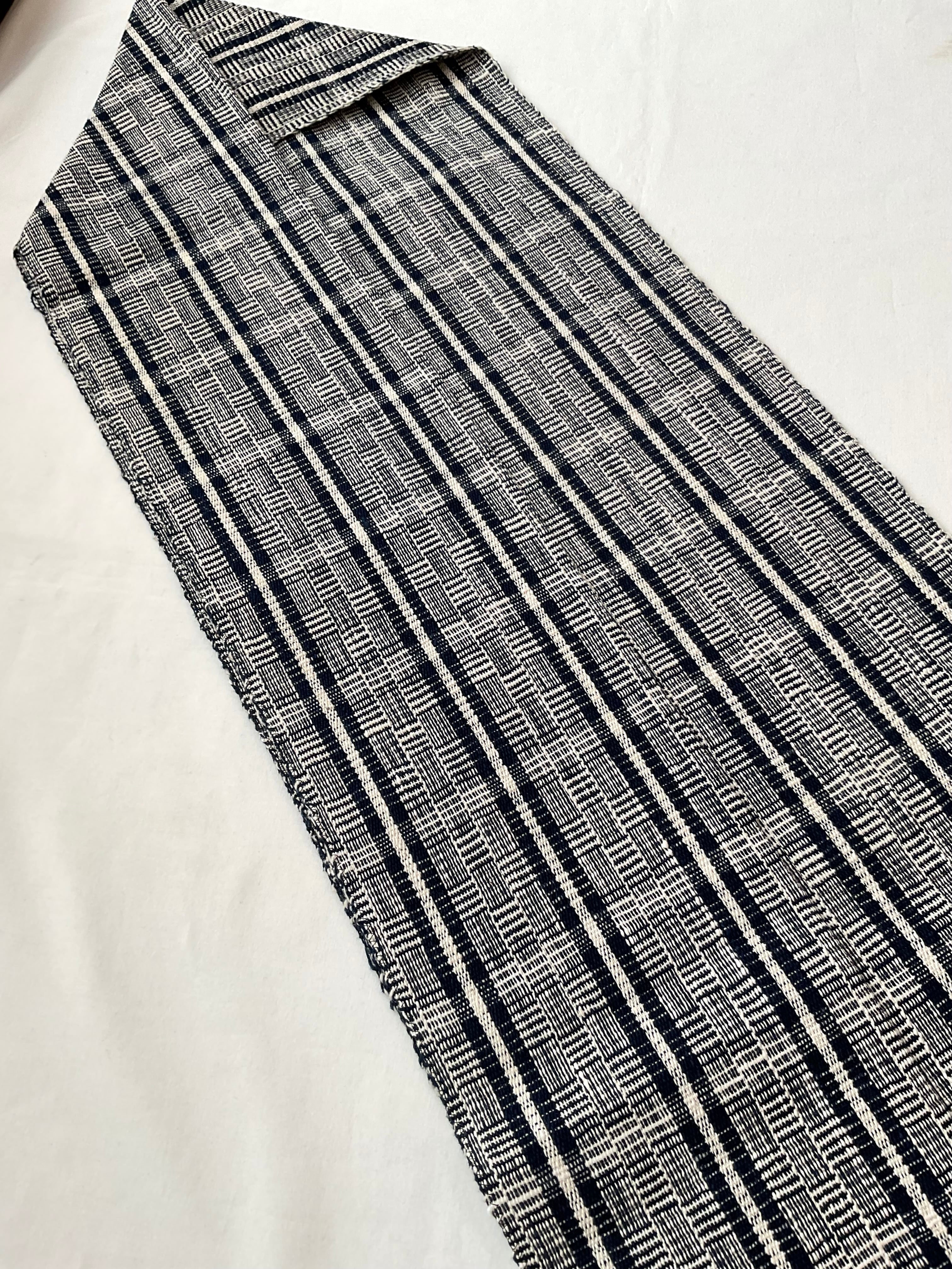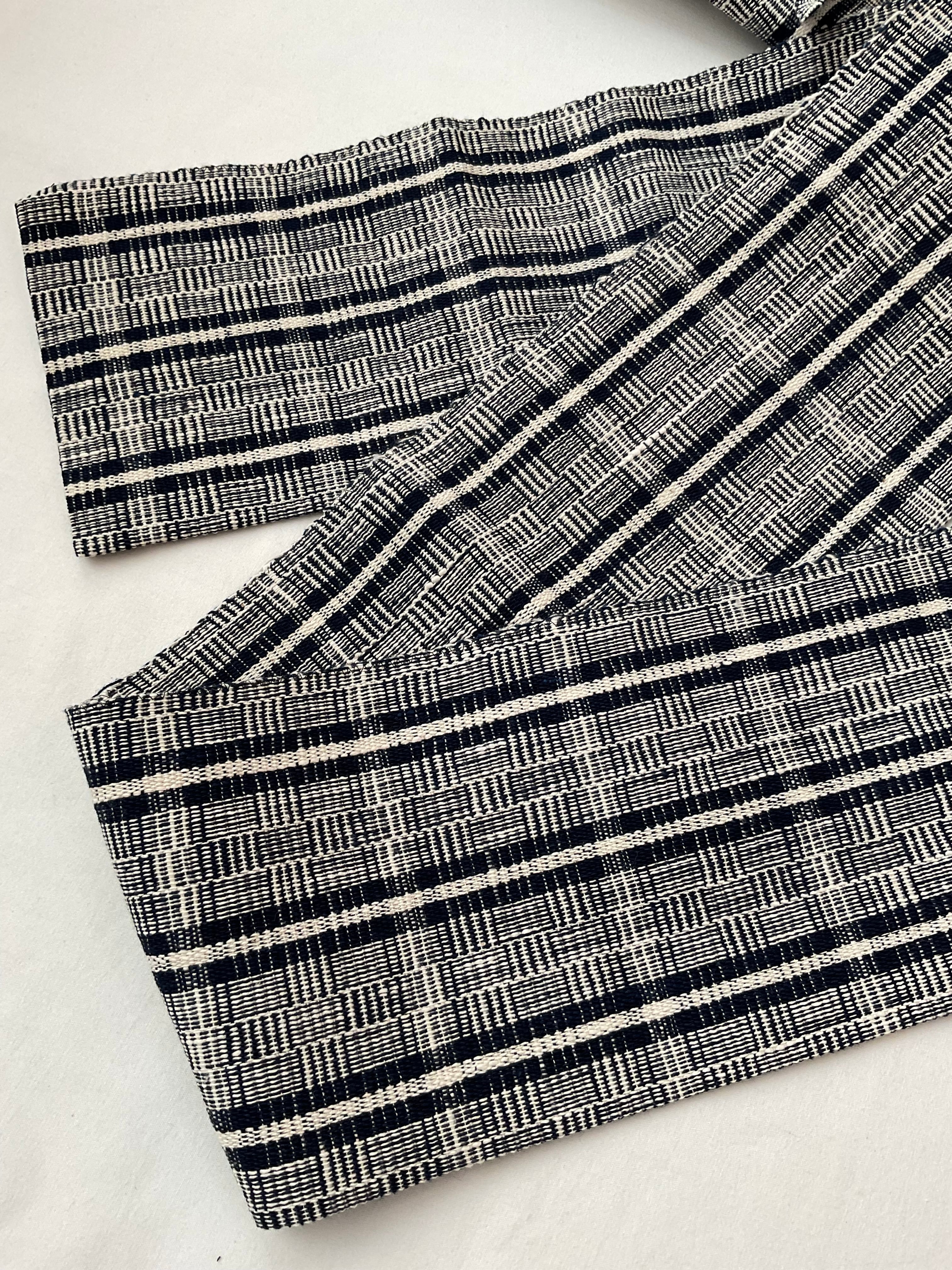 【丹波布】濃藍×白縞格子文なごや帯(証付き) 251123-1