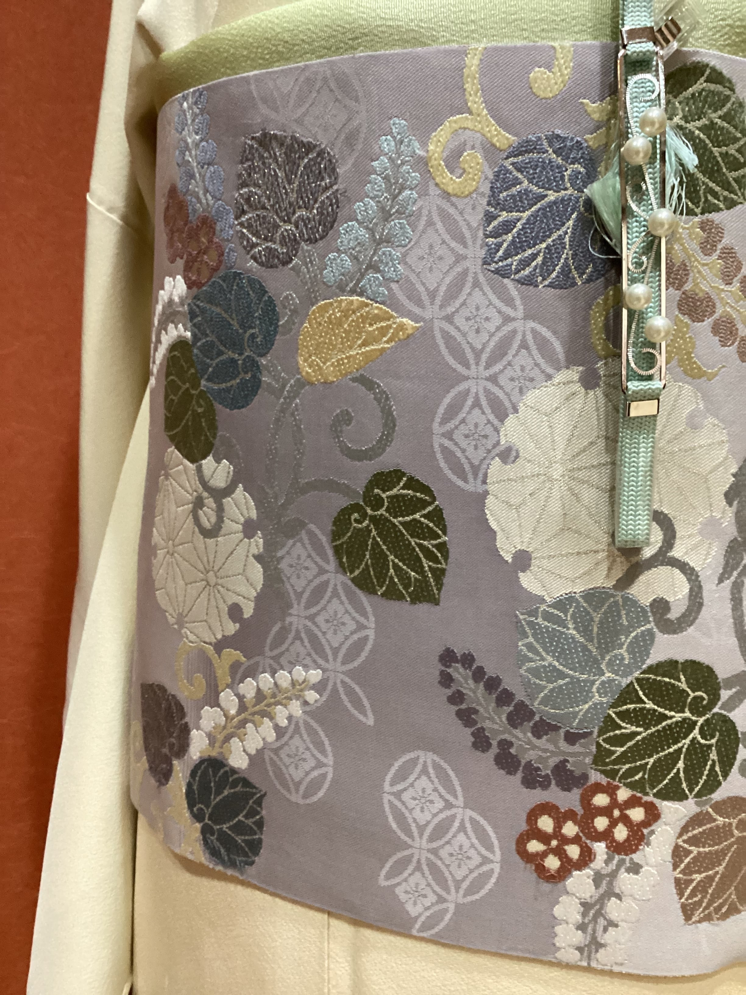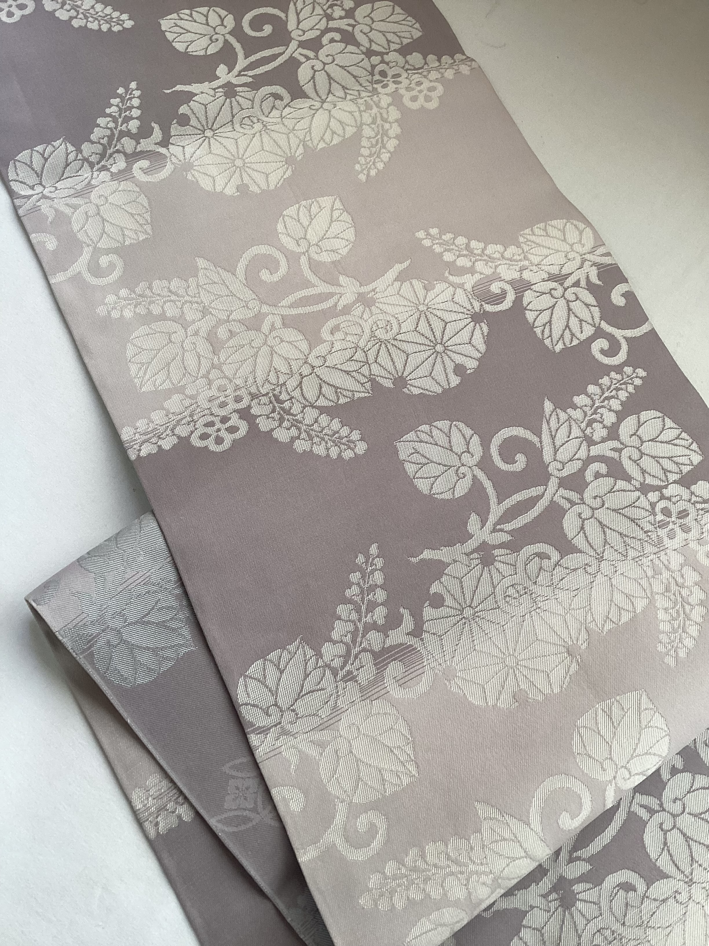 薄紫色横段暈しに雪輪葵文袋帯 251128-2