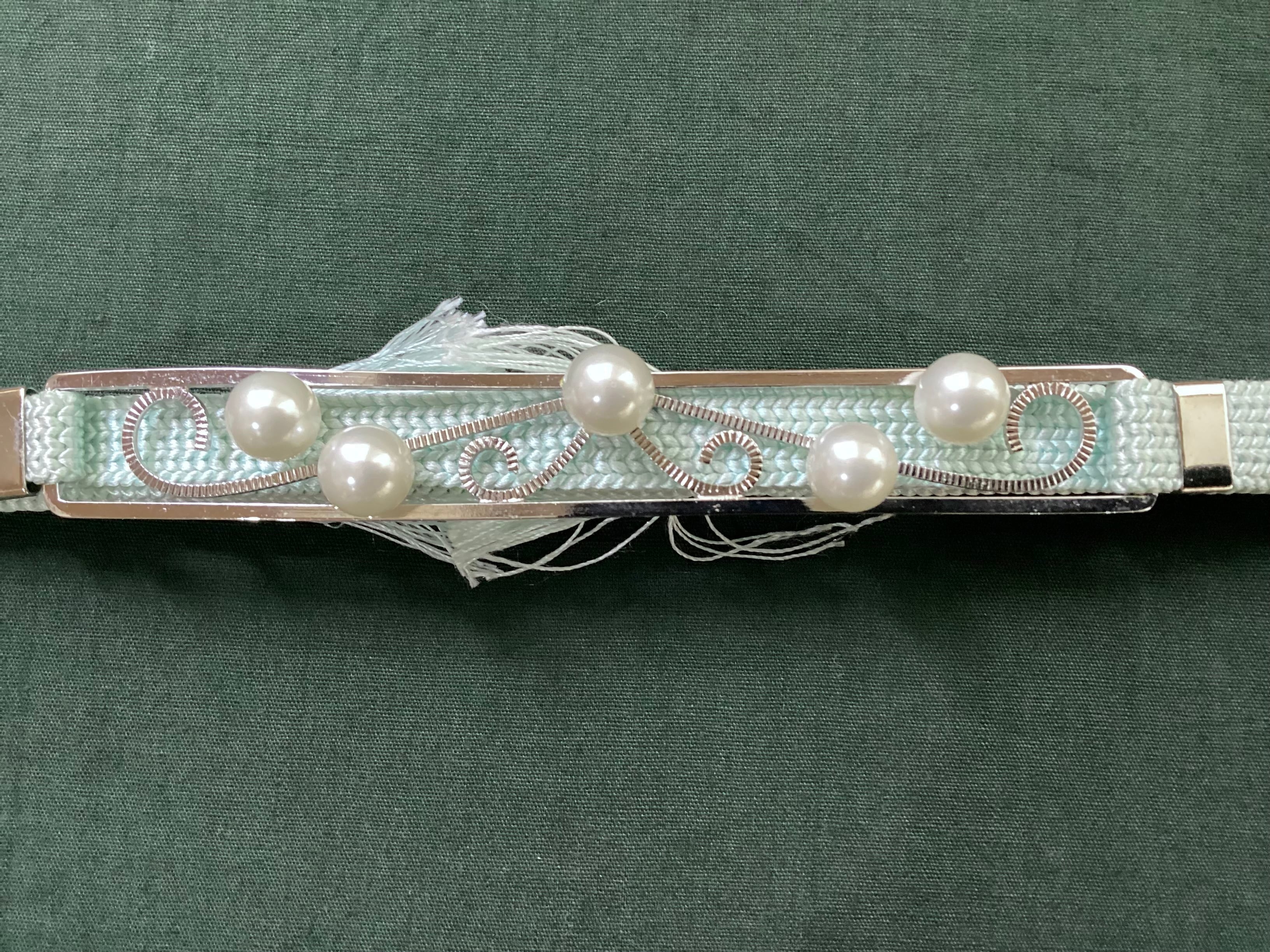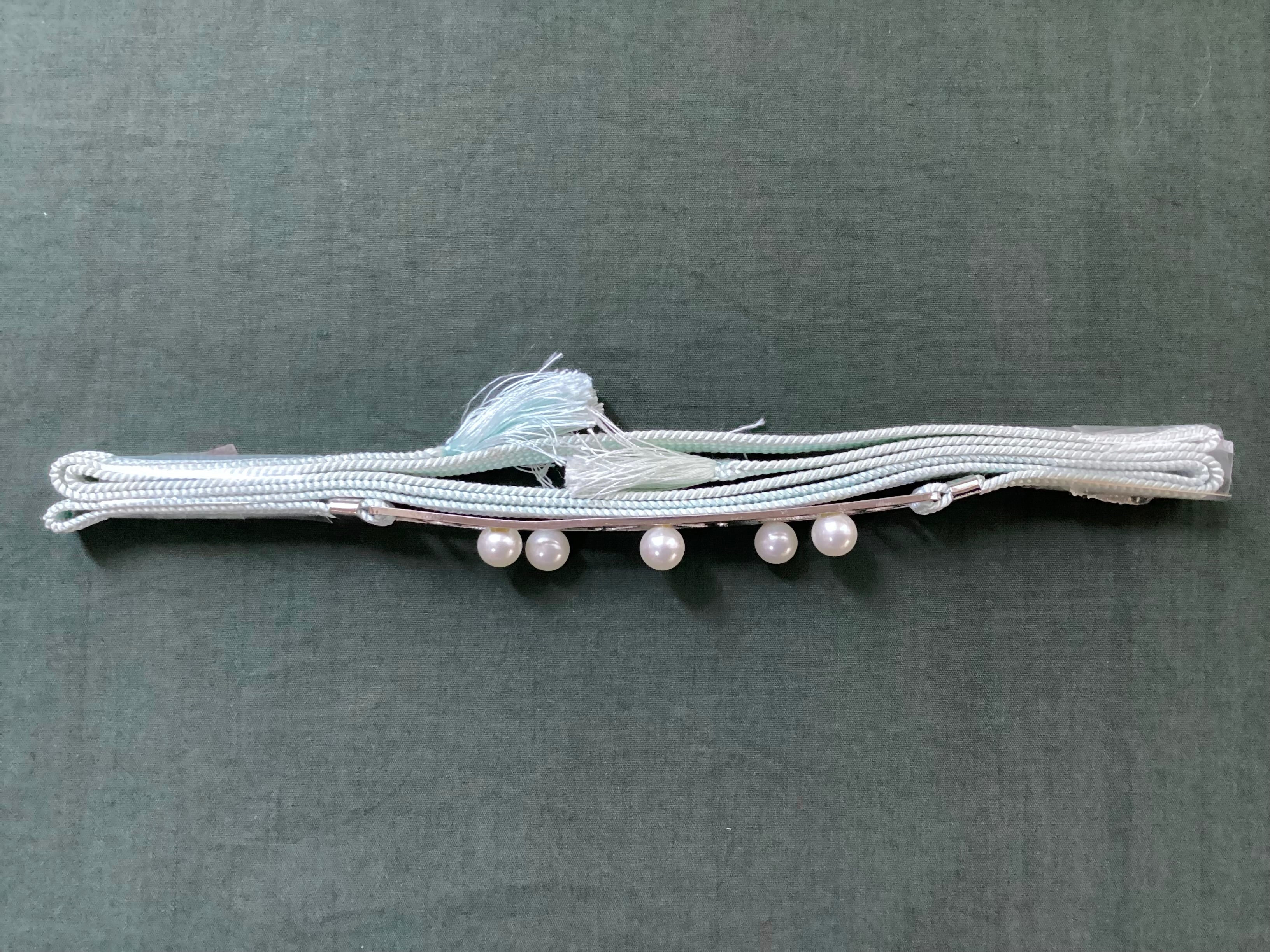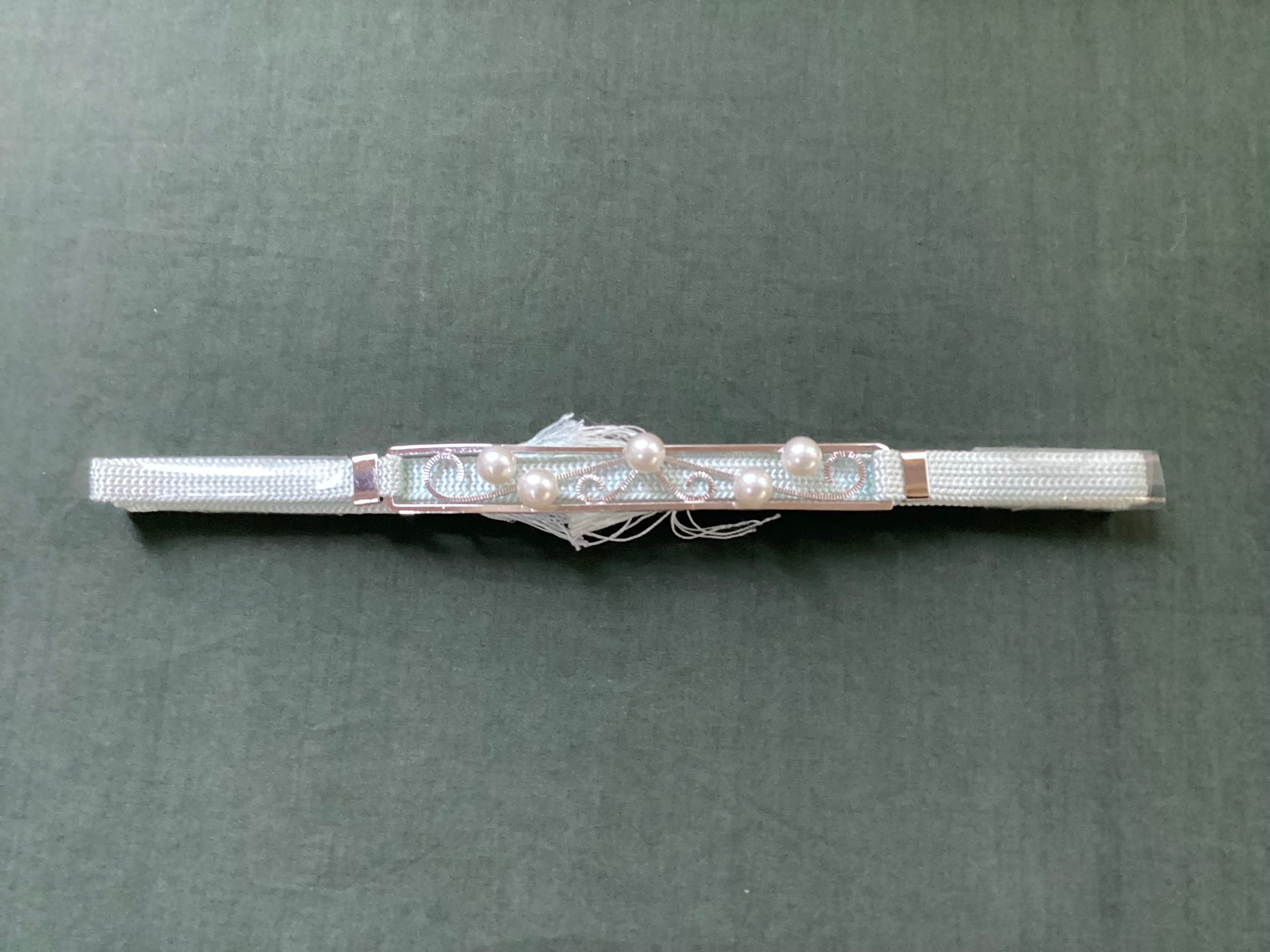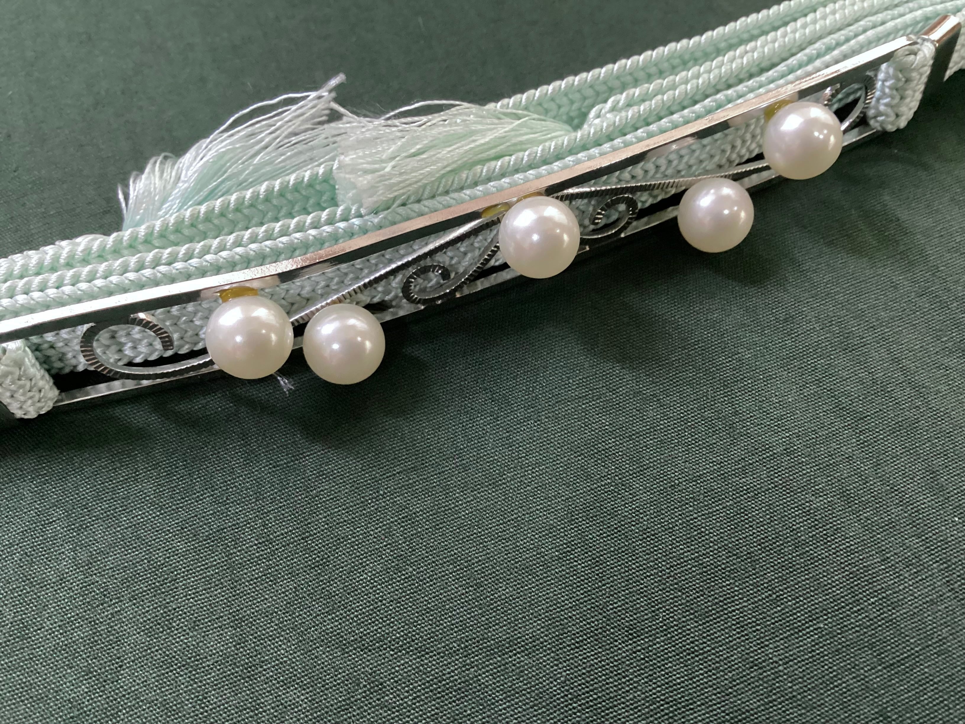 銀長方形台にパール付き帯留め(三分紐付き) 251128-3