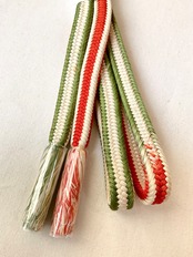 帯締め 〈生成×朱赤×抹茶〉 (リユース品) 251128-4 | きものなかむら いこま本店