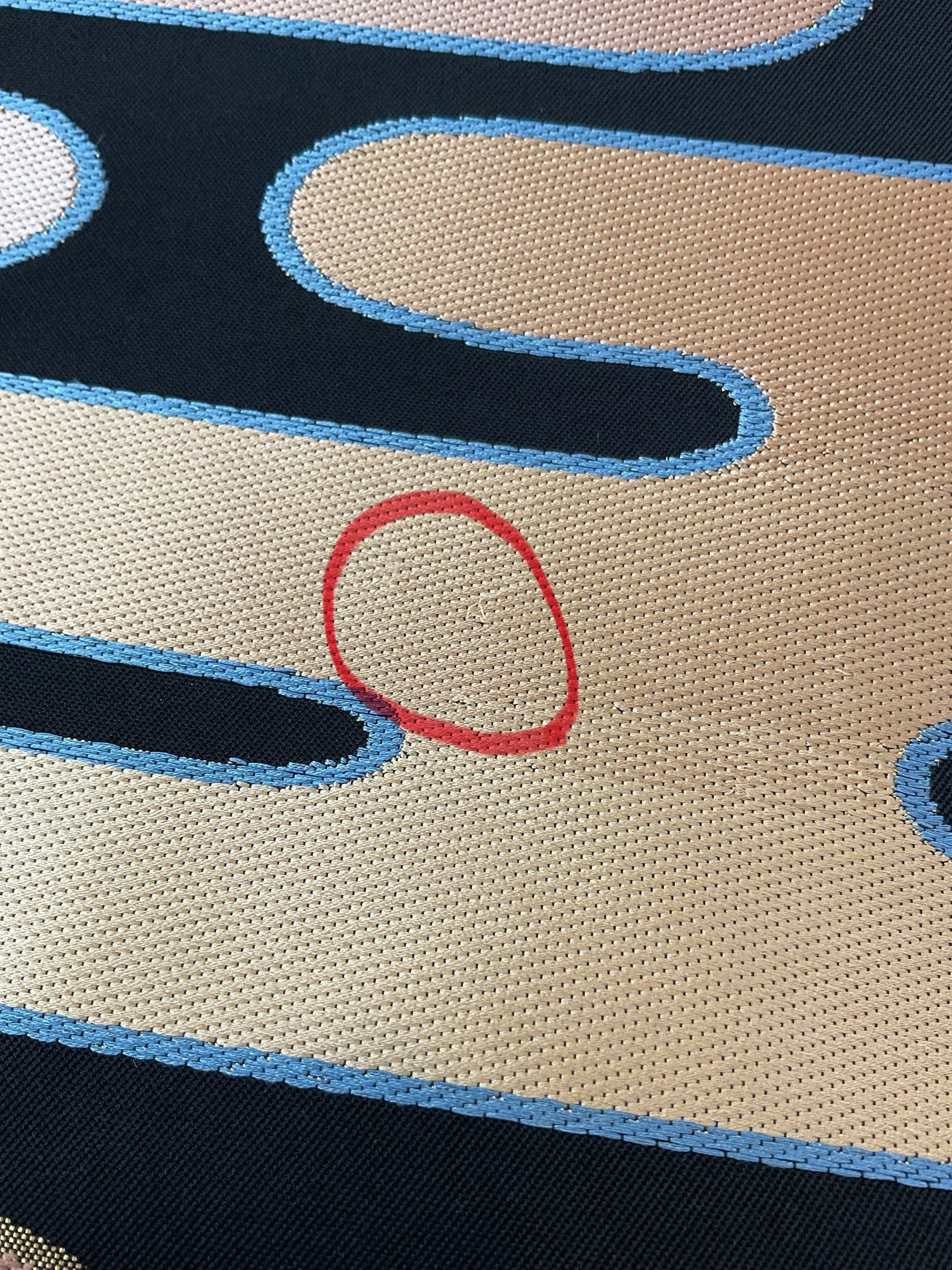 オタイコ部分に少々糸の浮きが見られます(赤丸)が、締めあともほぼ感じられず、状態の良い美品です。
