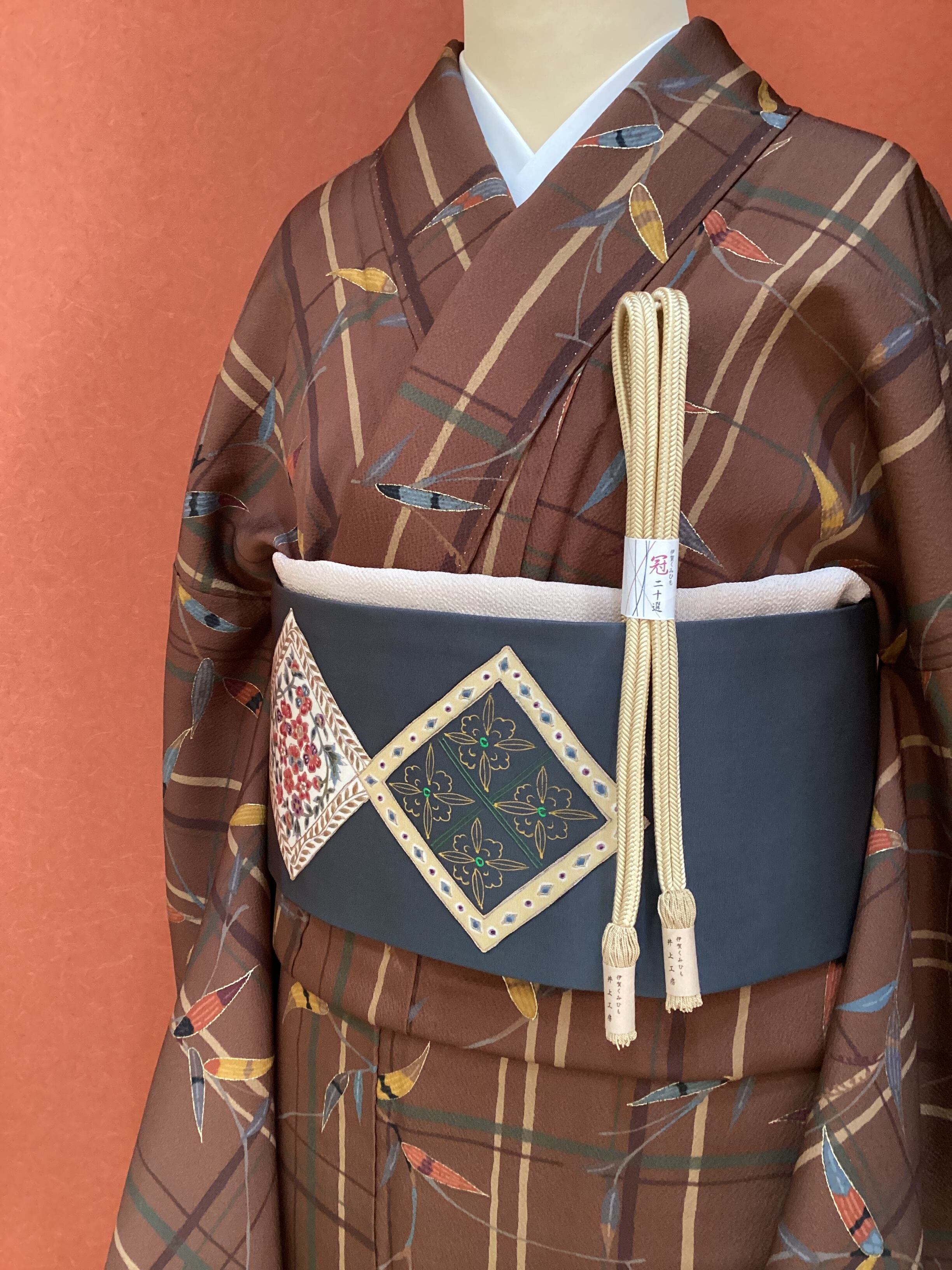 伸縮性があり締めやすく解けにくい冠組の帯締めは、普段使いの紬・小紋からフォーマルな訪問着まで幅広くお使いいただけ、使い勝手の良い帯締めです。何色か持っておかれるとコーディネートに役立ちます。