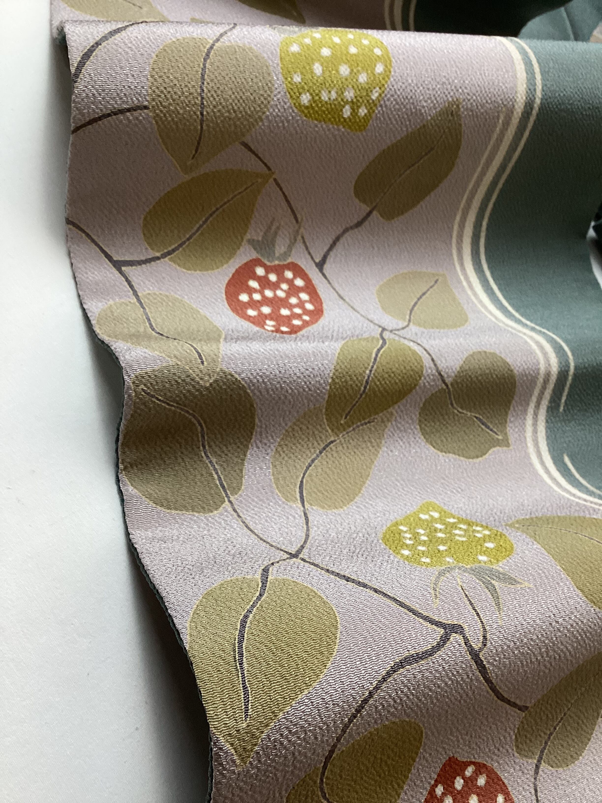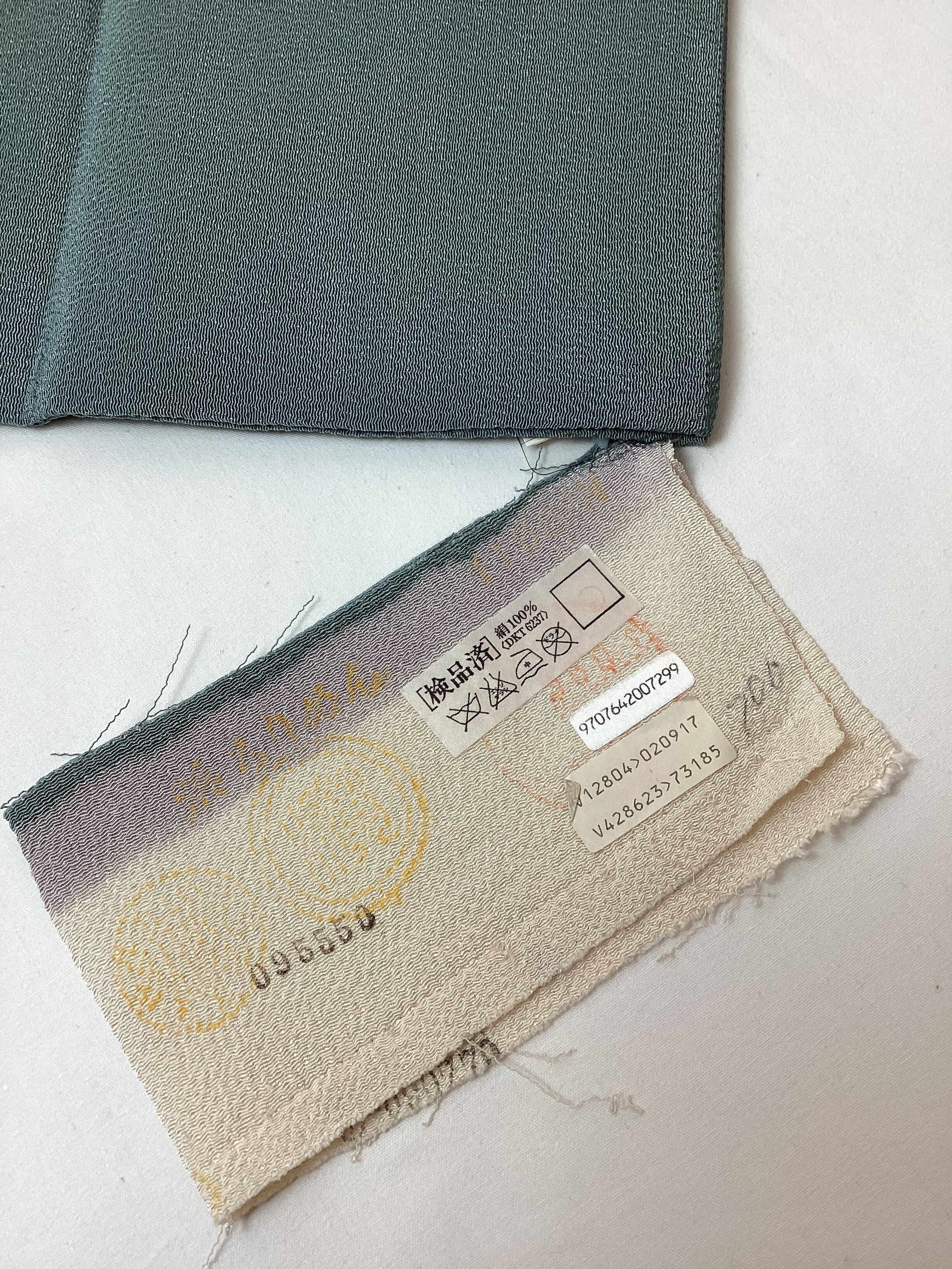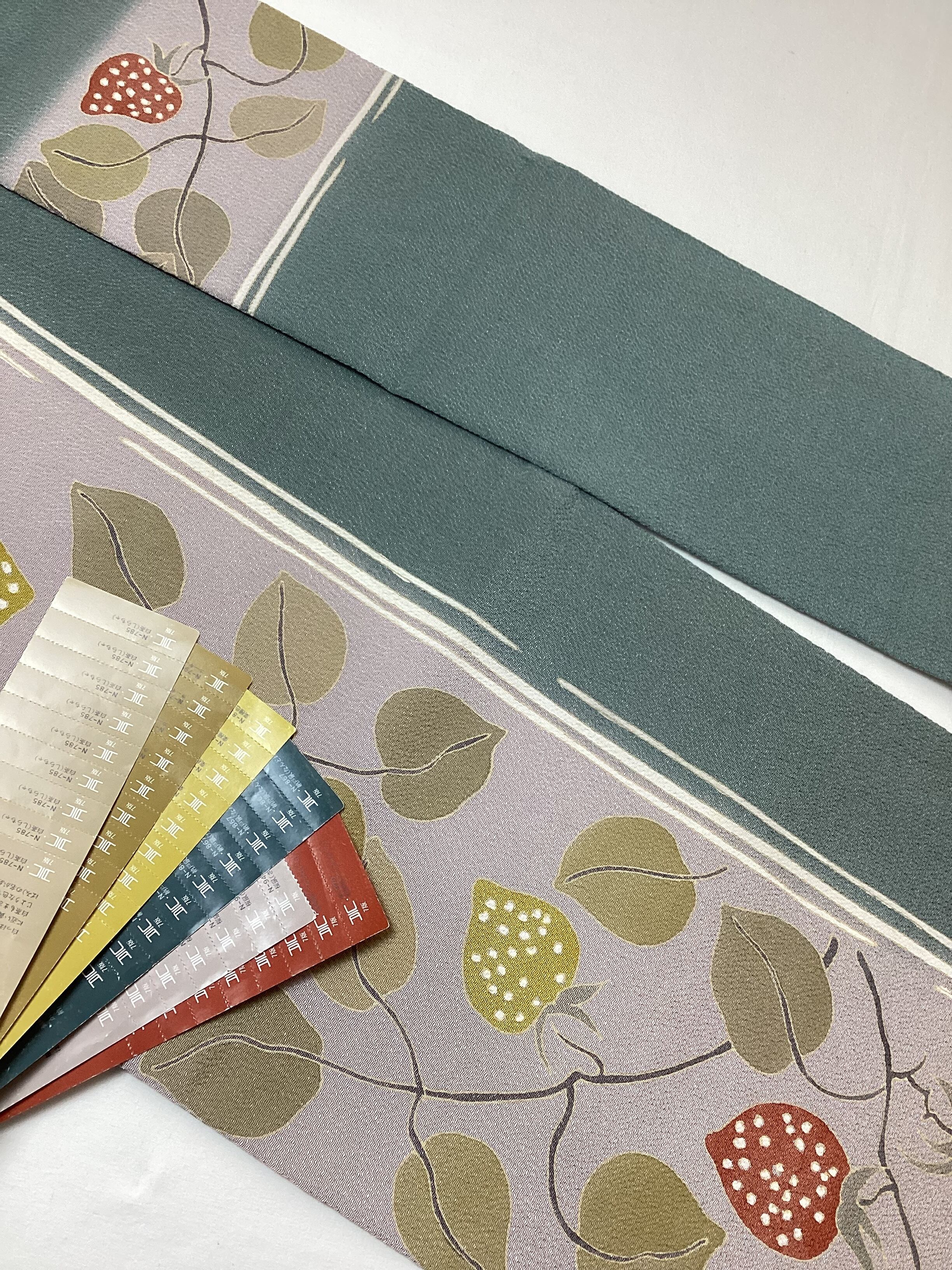 桜鼠×納戸鼠色地蔓苺文縮緬なごや帯(反端付き)251223-2