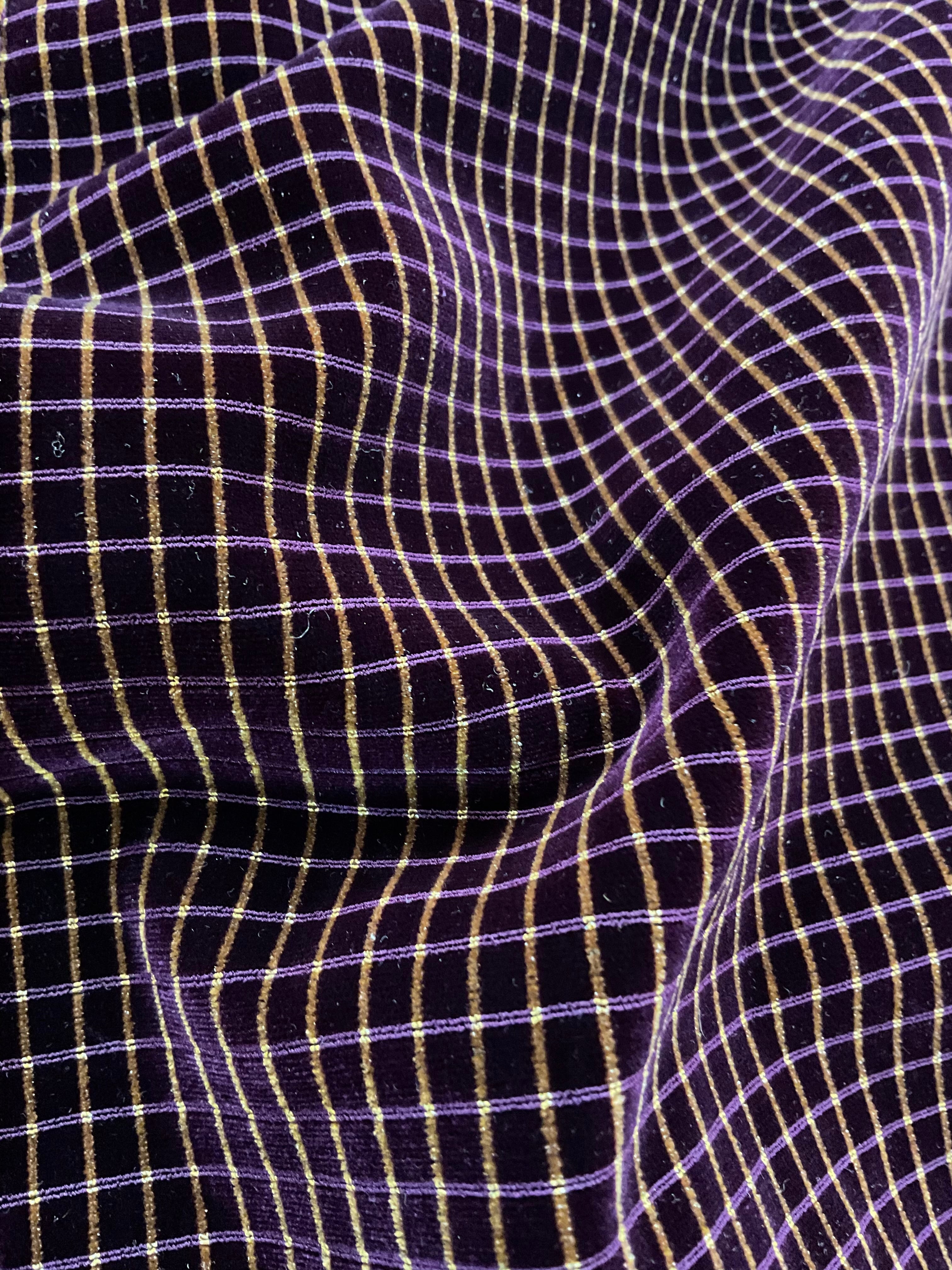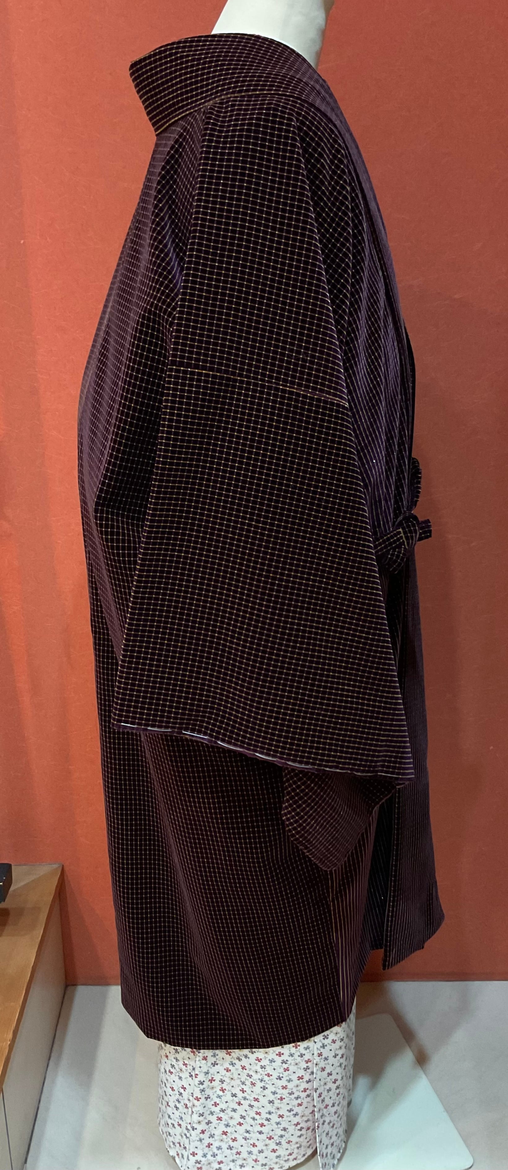 濃紫×金格子文ビロード道中着コート(しつけ・反端付き) 260109-5