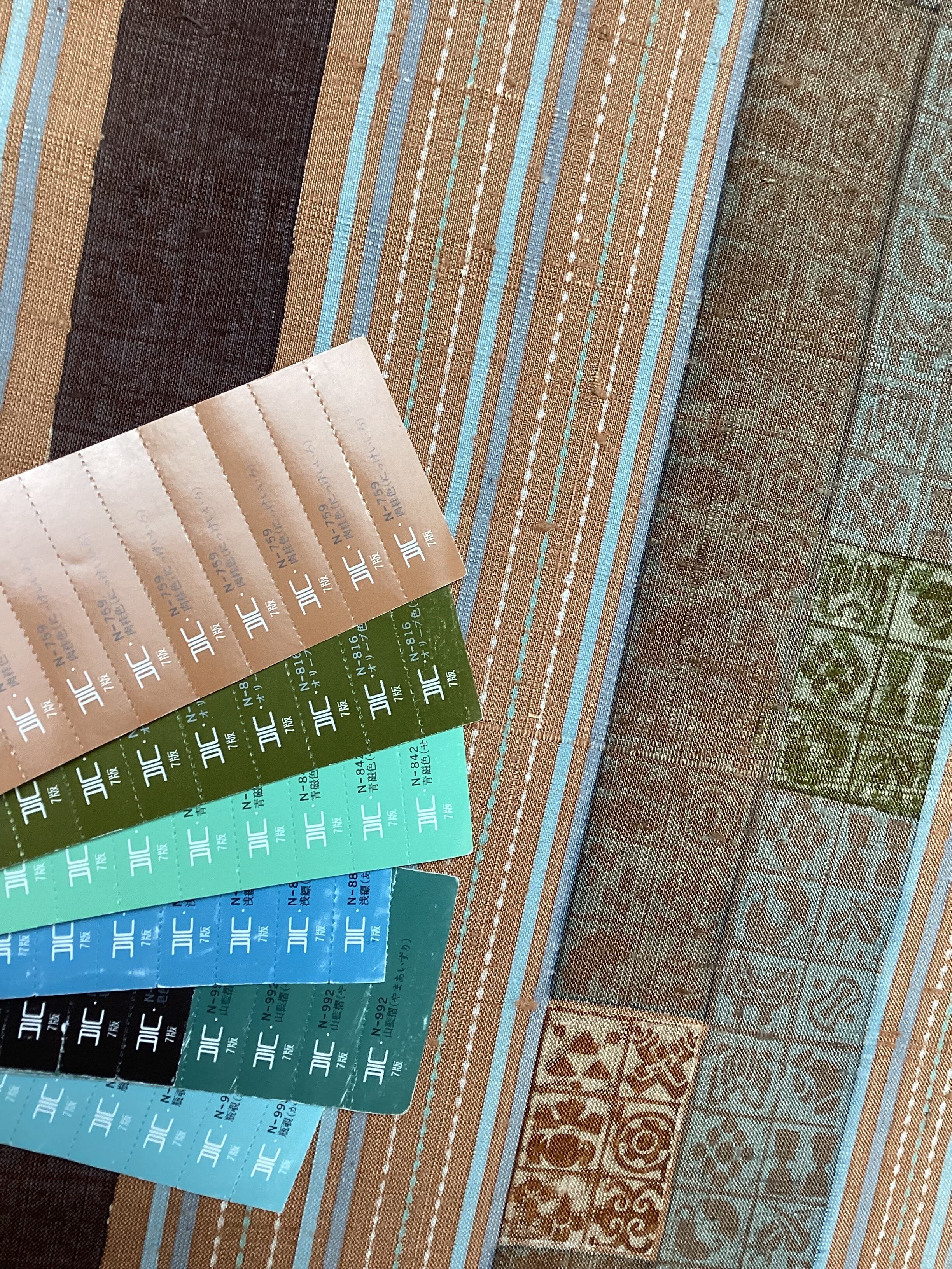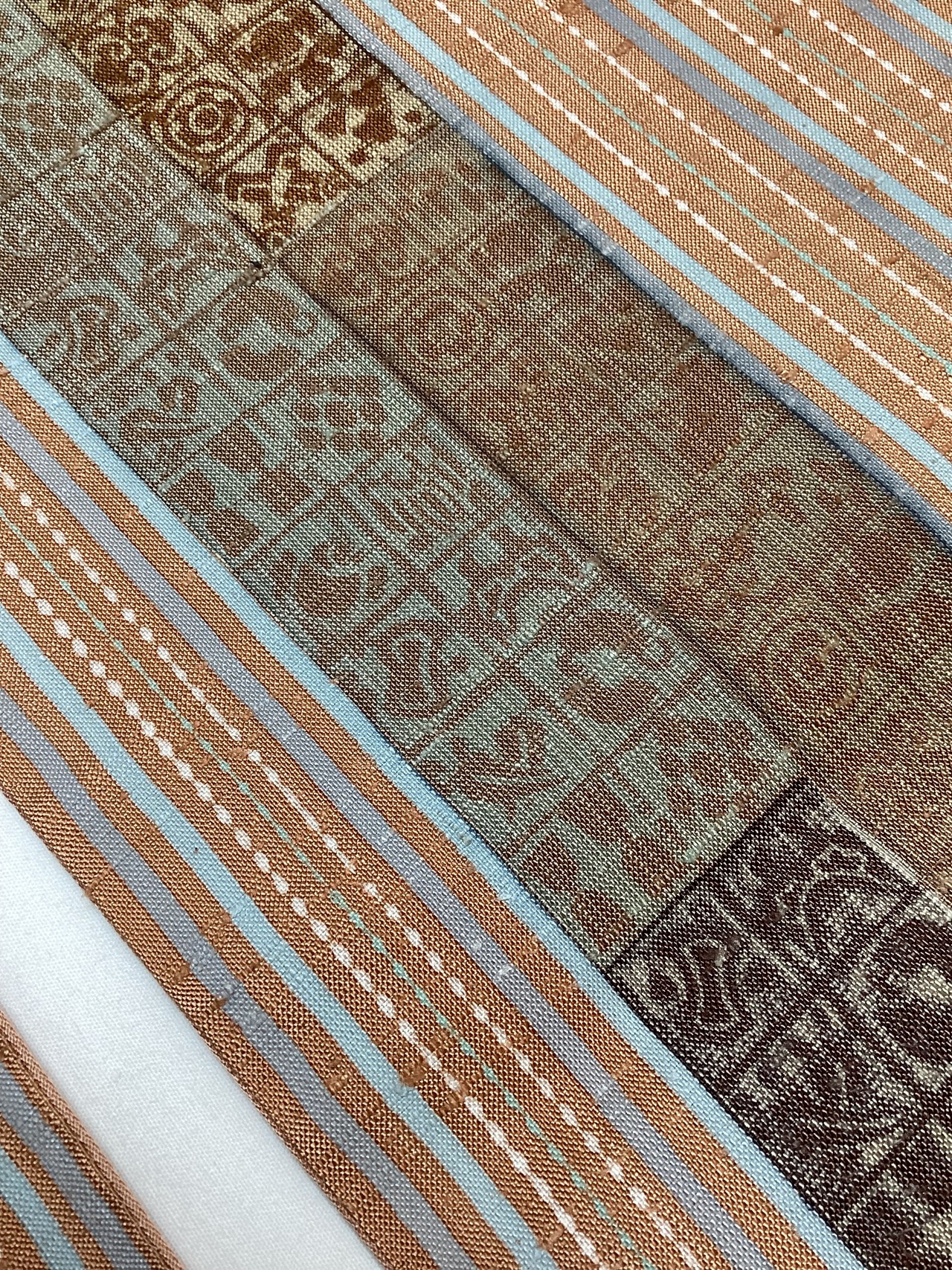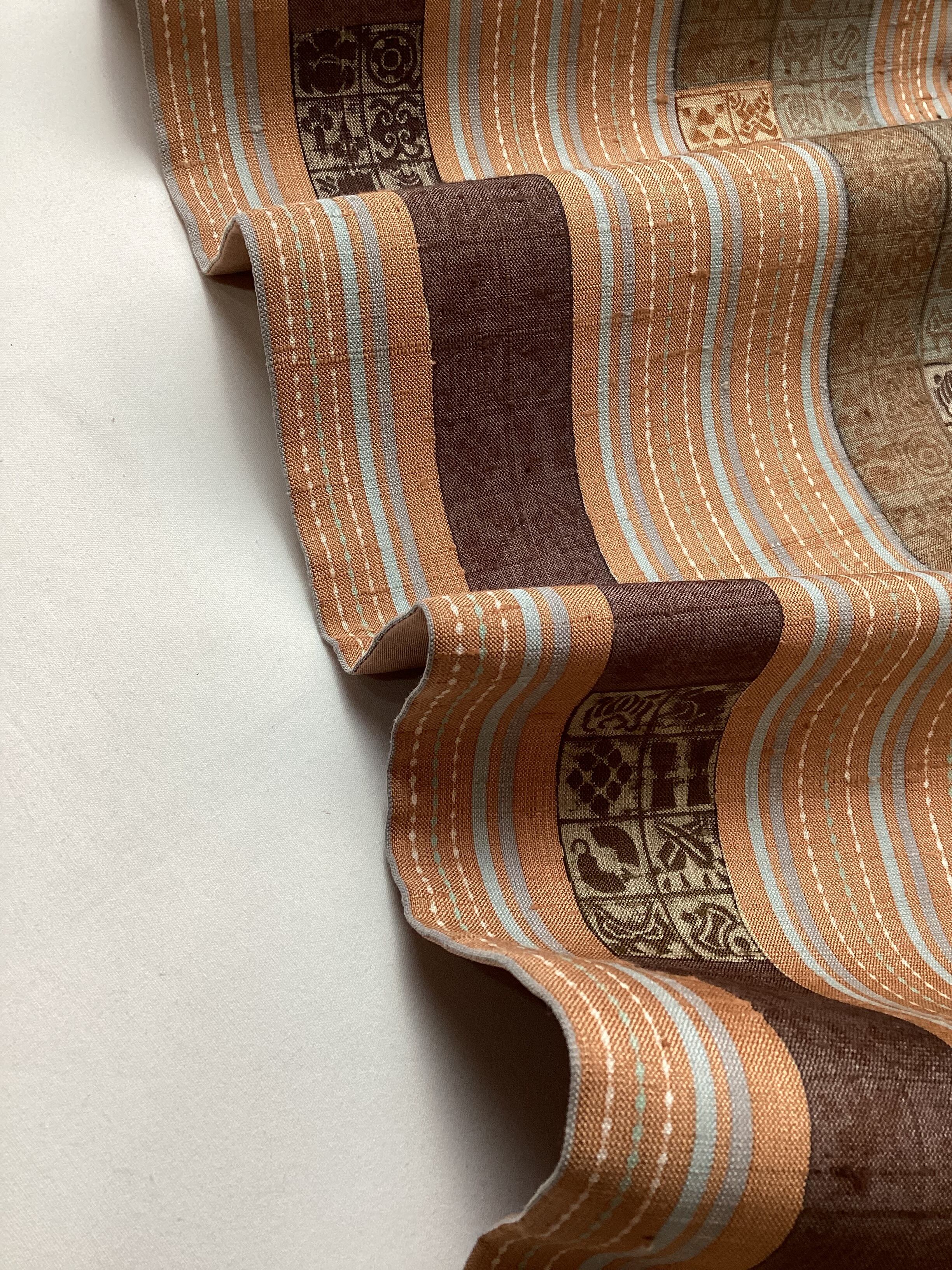 肉桂色地間道に宝吉祥木版文紬袋帯(お仕立て上り品)260118-2