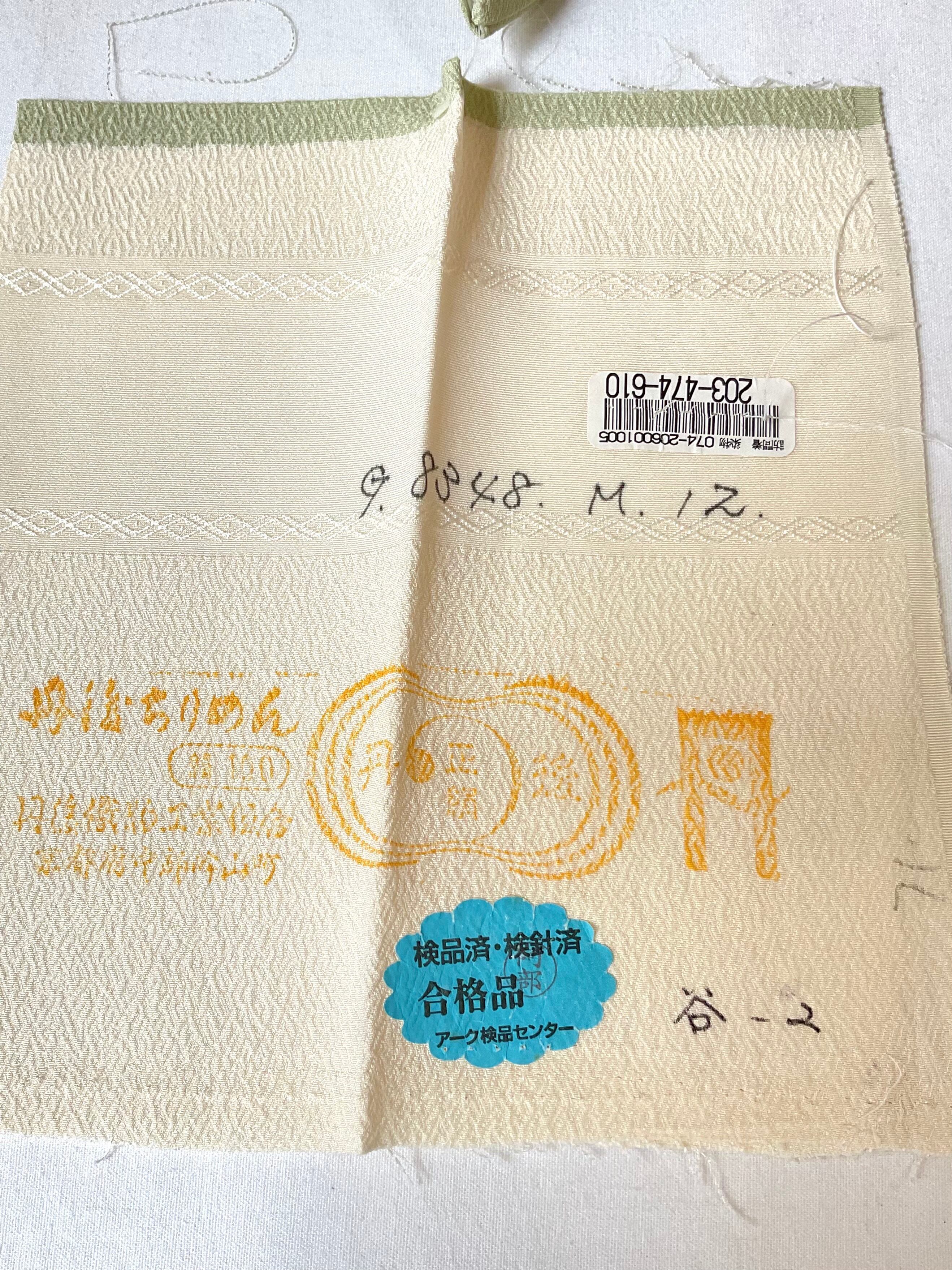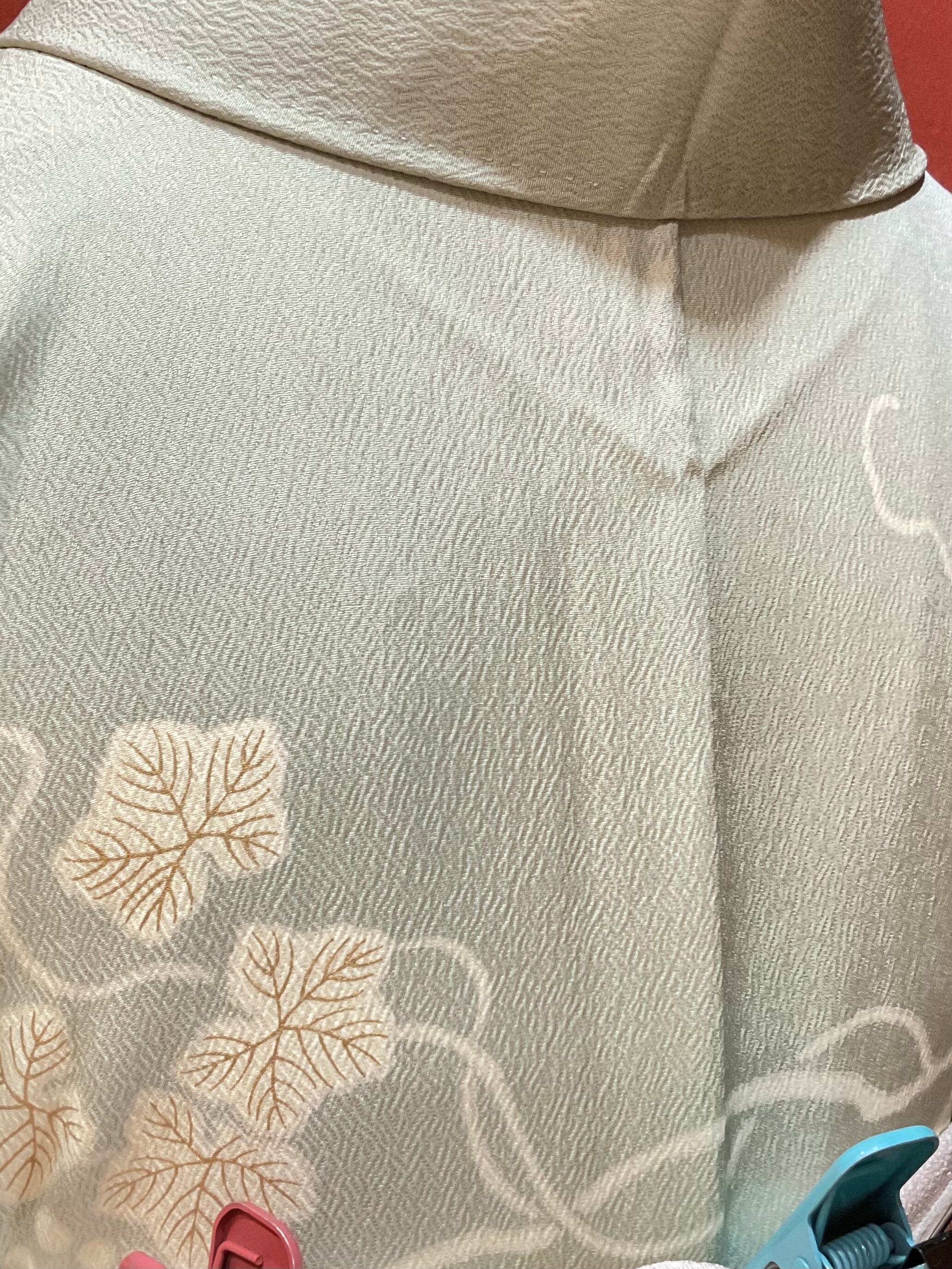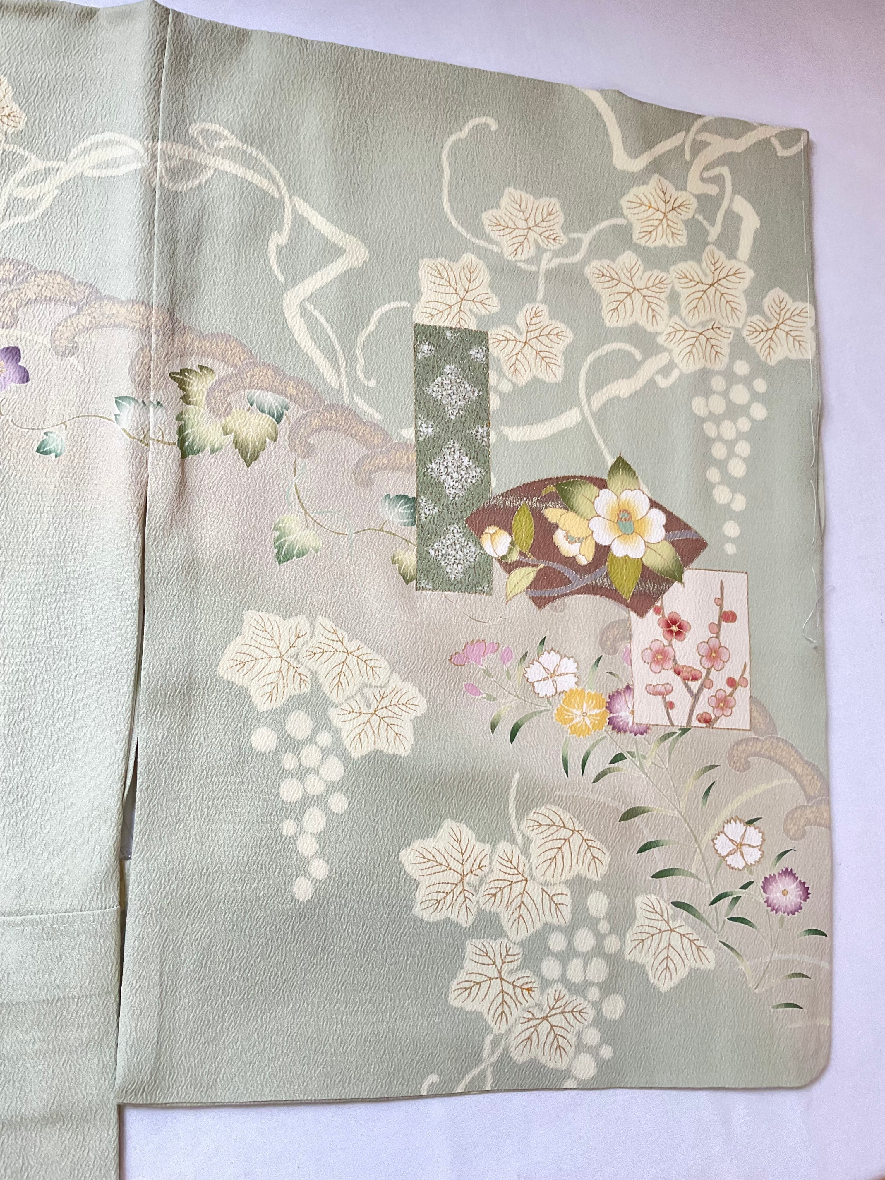 白緑色地葡萄唐草四季花文訪問着(一部しつけ付き・反端付き) 260127-3