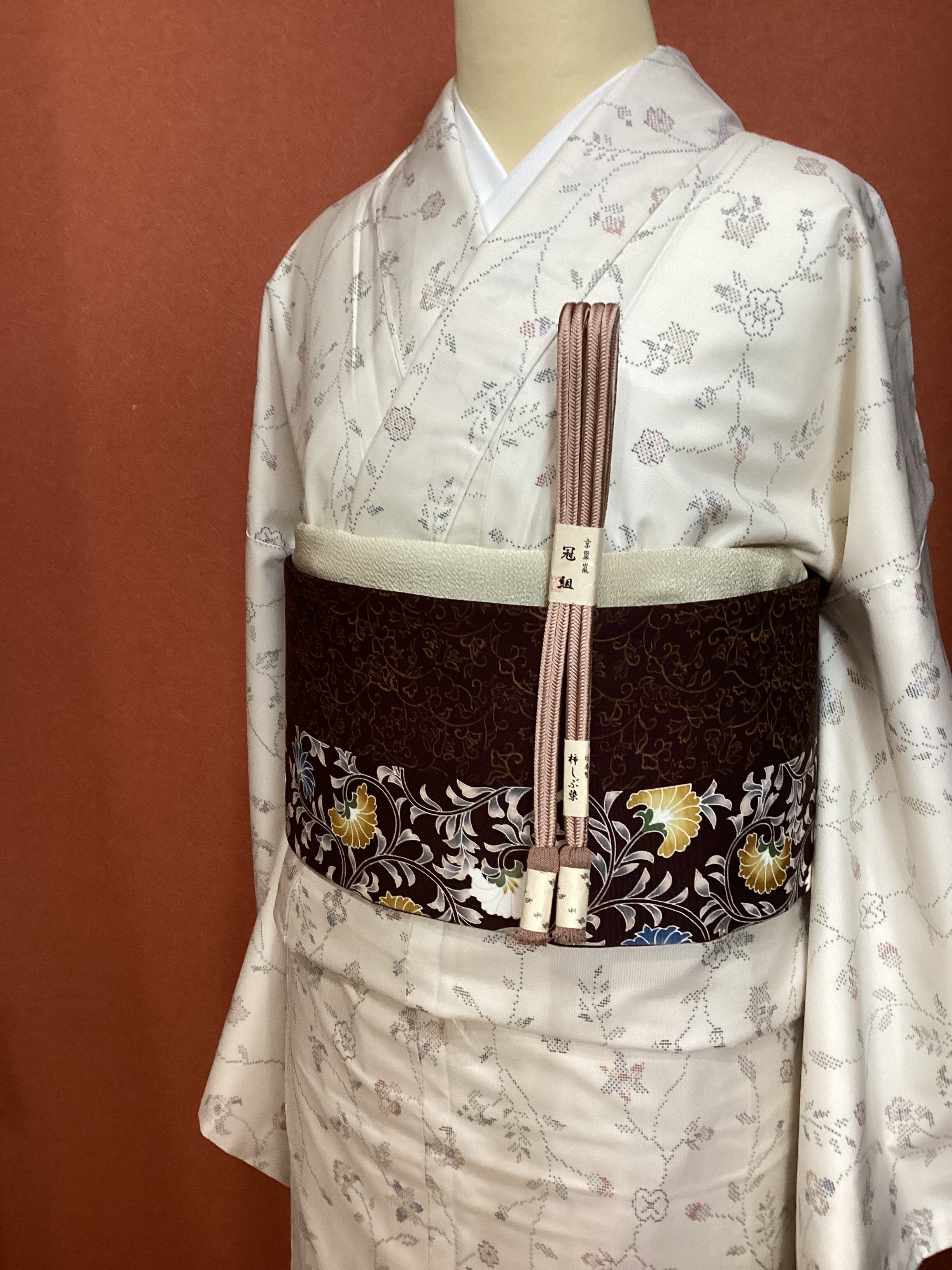 濃色地花唐草文塩瀬なごや帯 260126-2