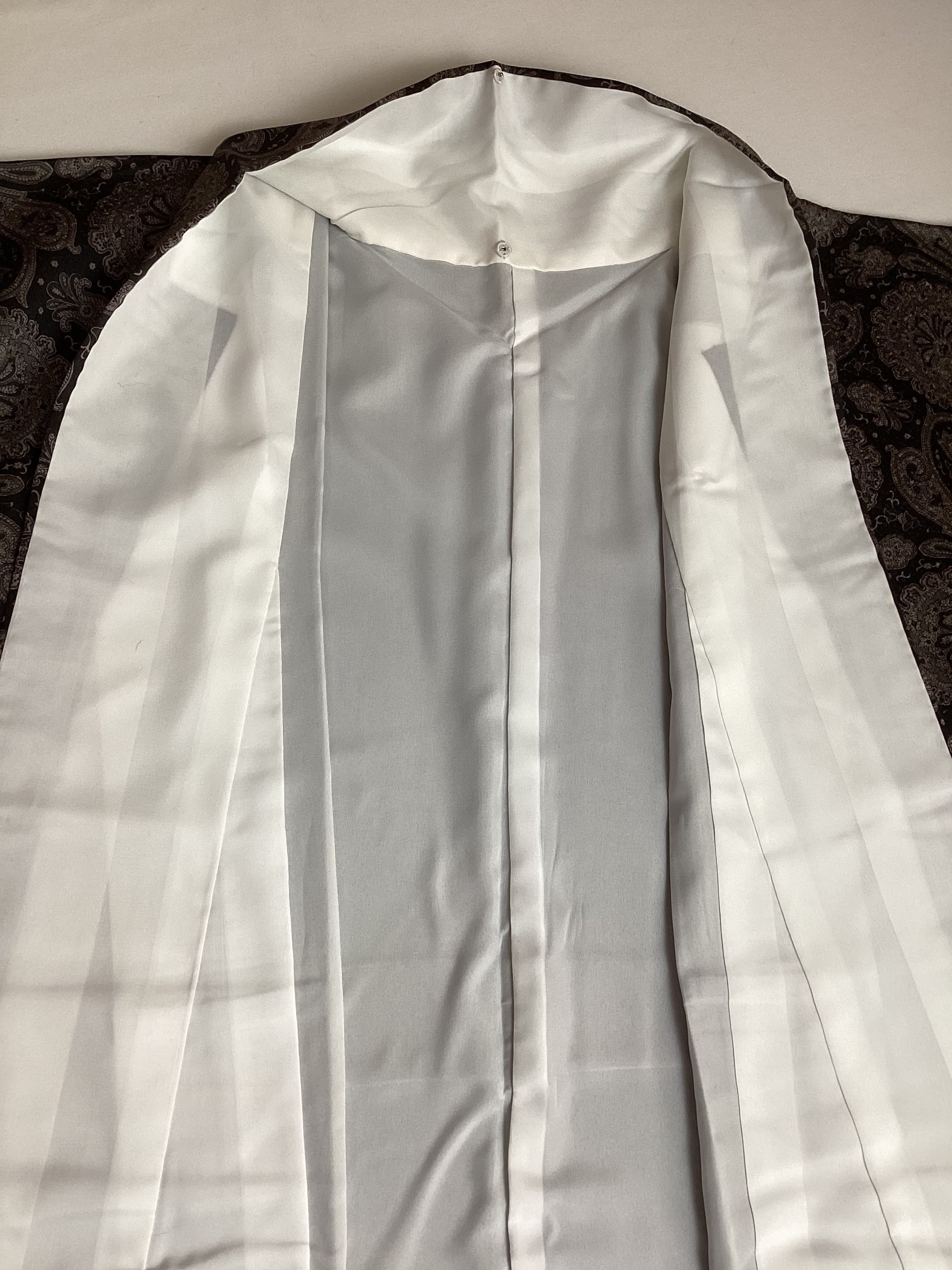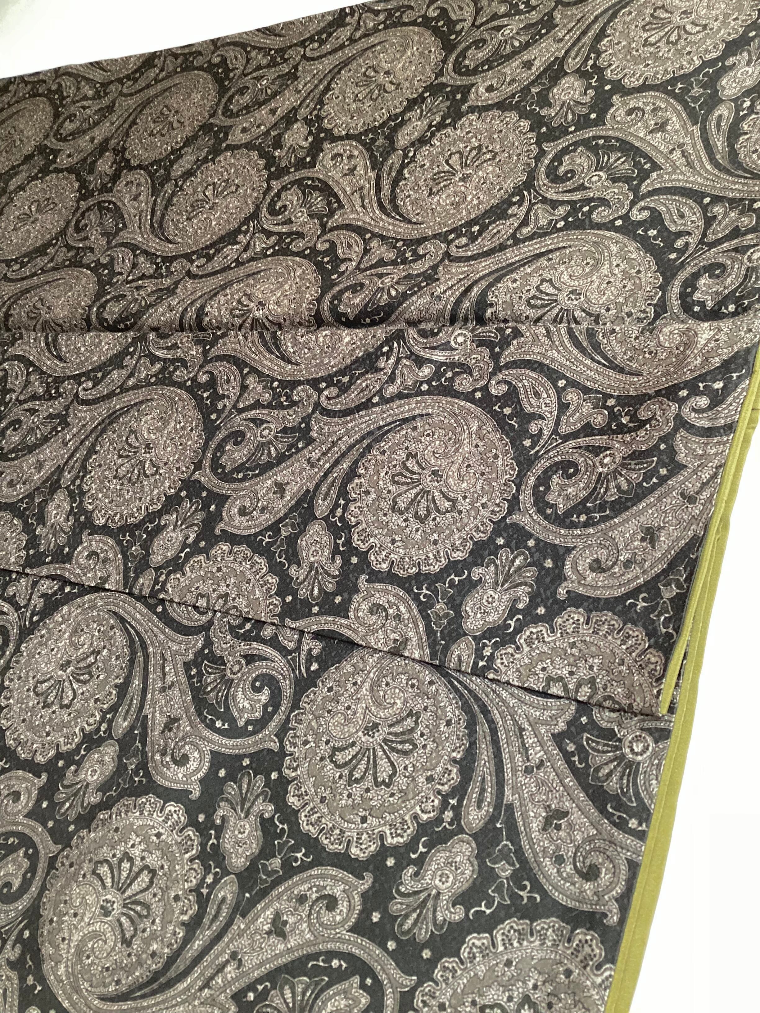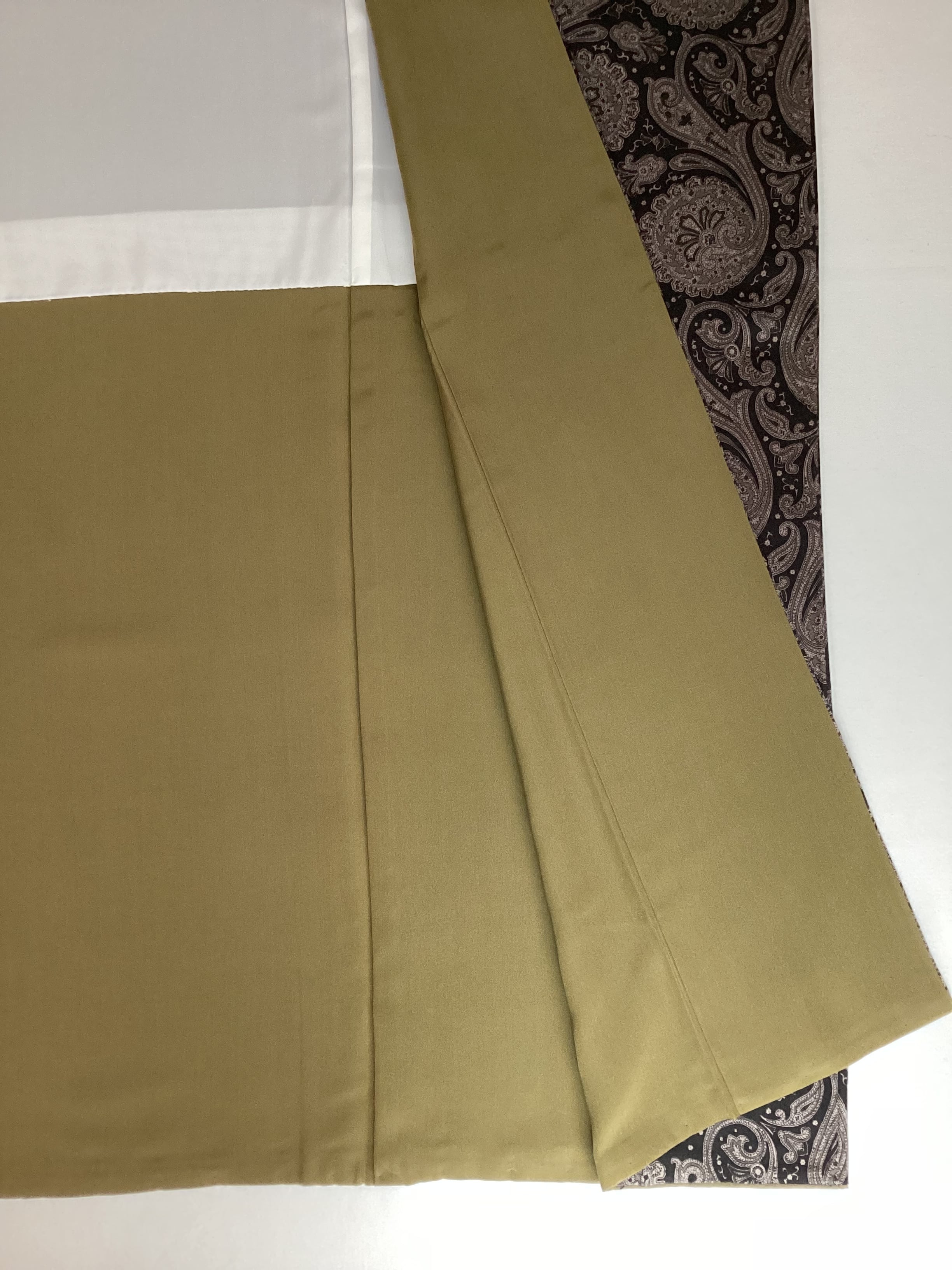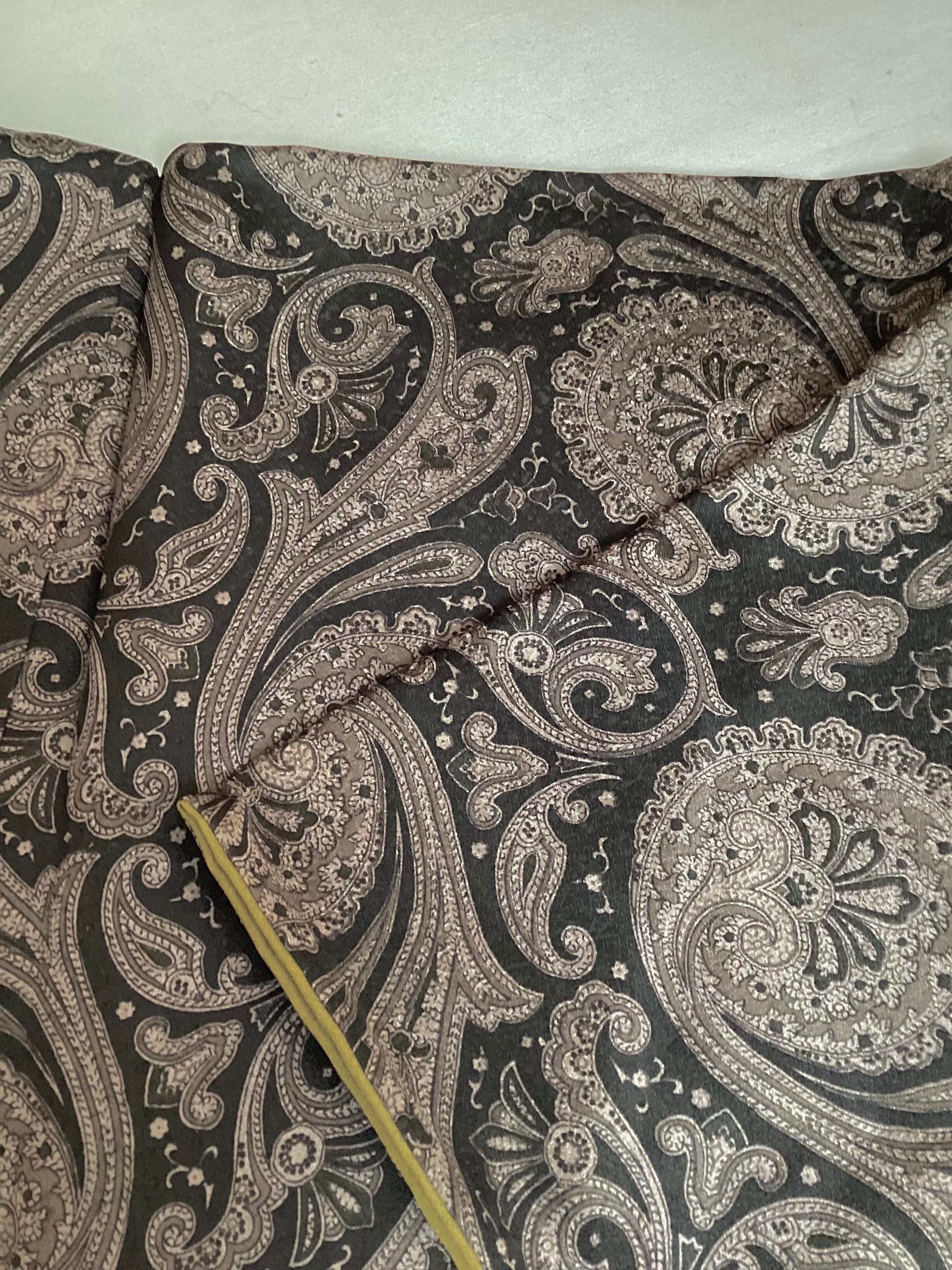 モノトーンのワンピース感覚でお召しになっていただけるペイズリー文様のお洒落小紋です。少し起毛したようにも感じられるふんわりとした手触りで重厚感のある織地です。異国情緒がありながら配色を抑えることで和装に自然に溶け込む通好みな小紋で、年齢を問わずにお召しいただけます。改まり過ぎずカジュアル過ぎない絶妙な雰囲気を持ち、シャイニーな帯を合わせてパーティや観劇へ、カジュアルな帯を合わせて気軽なお出掛けにと幅広いシーンに対応出来るお品です。身丈、身幅が十分ございますので、お探しの方はいかがでしょうか?