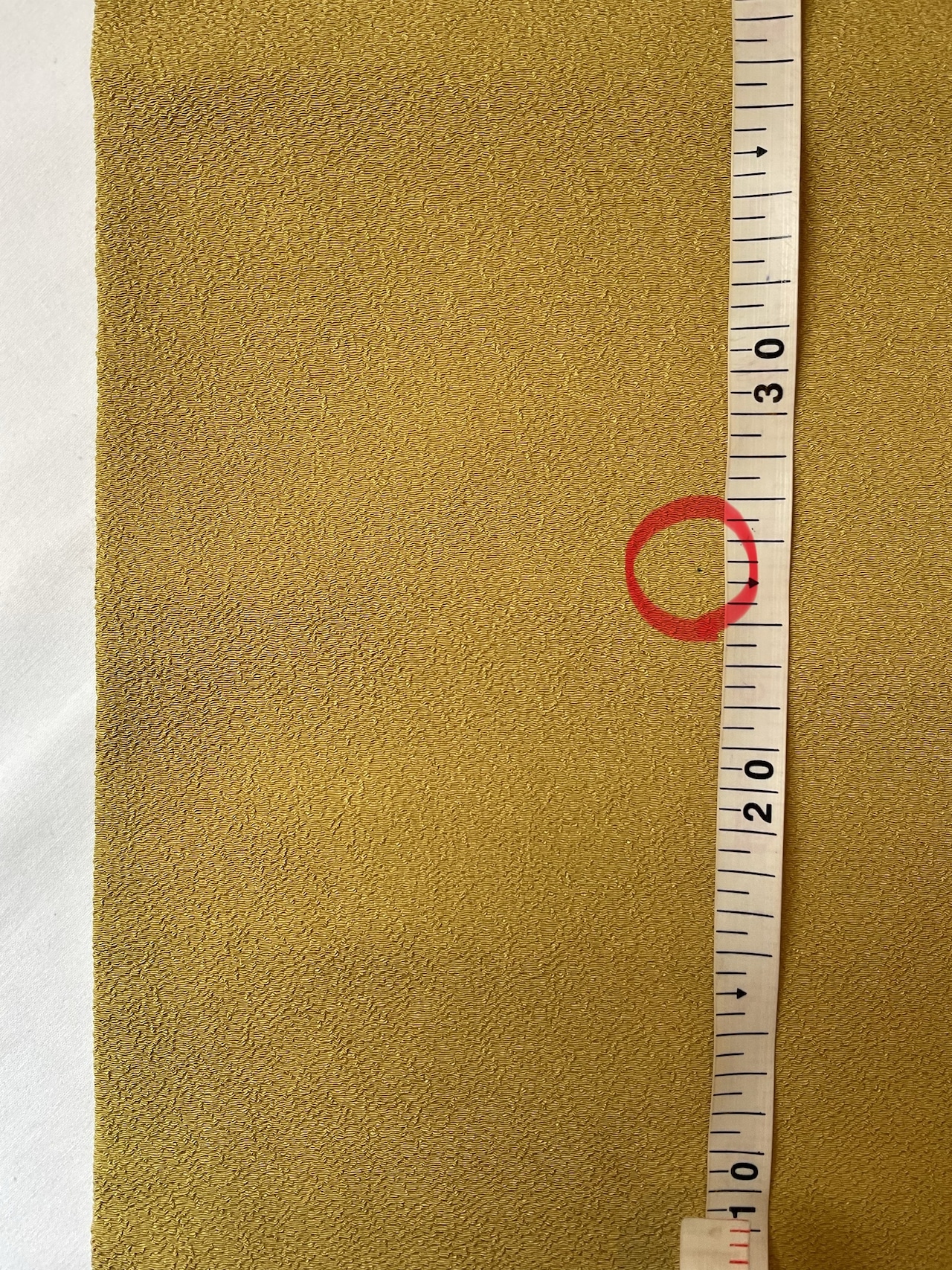 また、タレ先から約25㎝付近に、染料の飛びのような、針でついたほどの小さなシミがありますが、お太鼓の立ち上がり部分となる為、着姿には影響致しません。