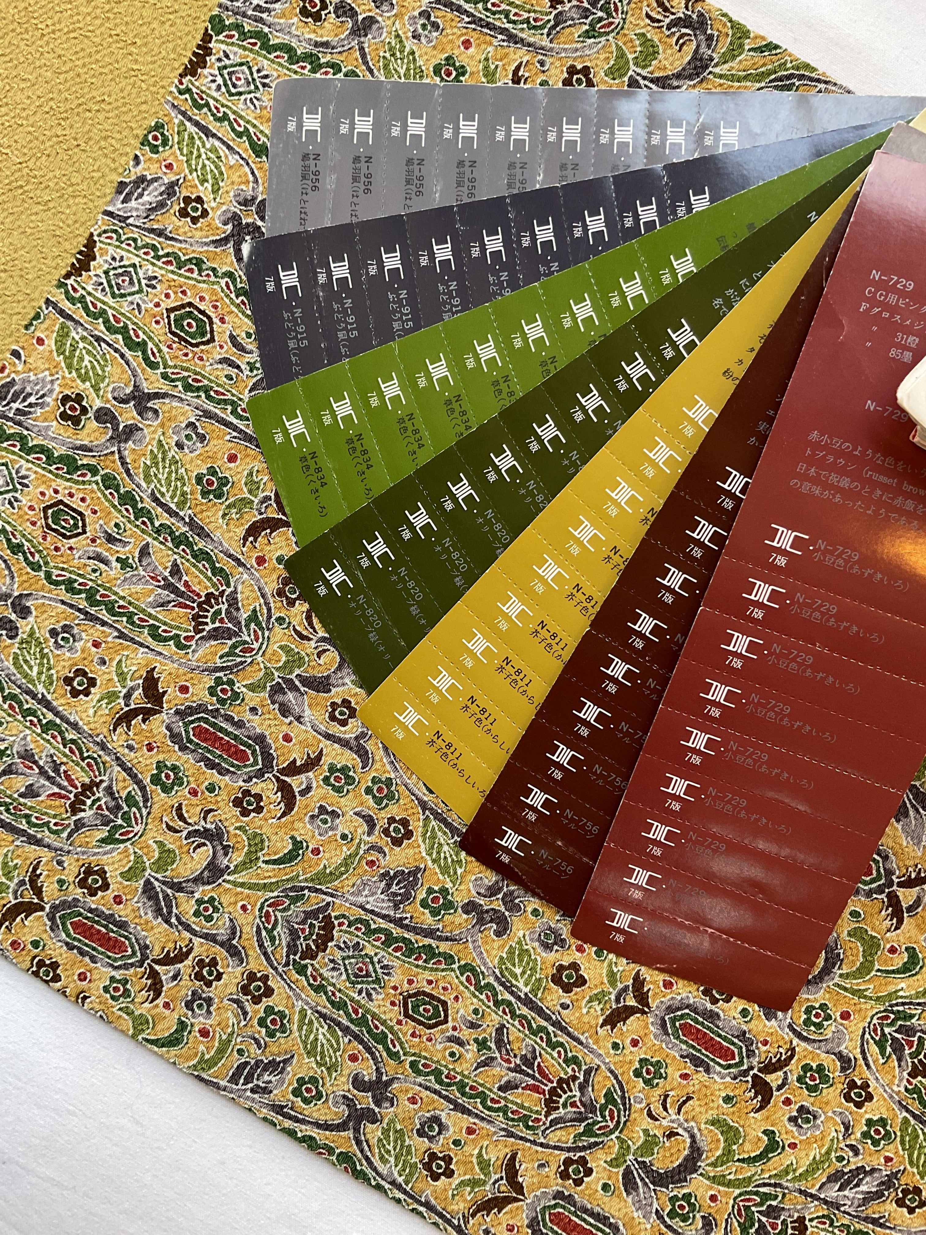 芥子色地更紗文縮緬九寸なごや帯 260131-6