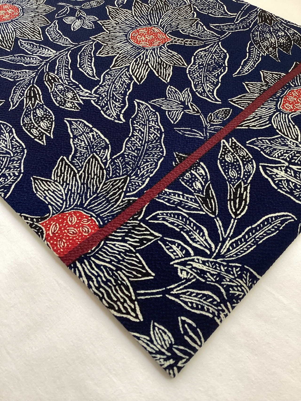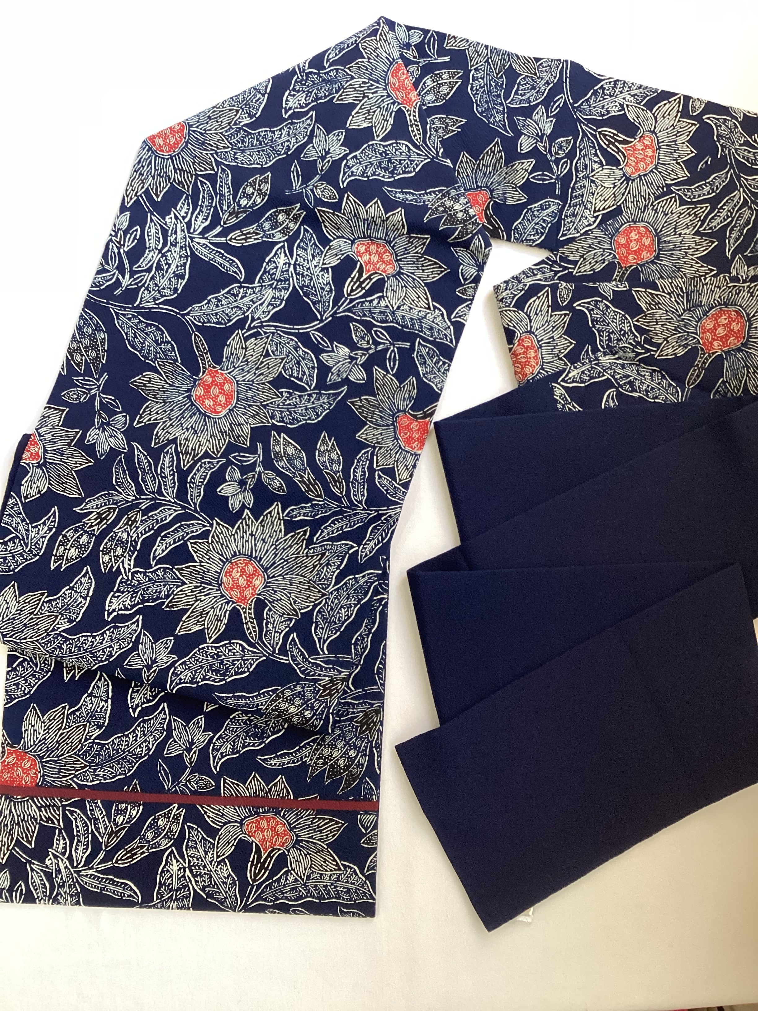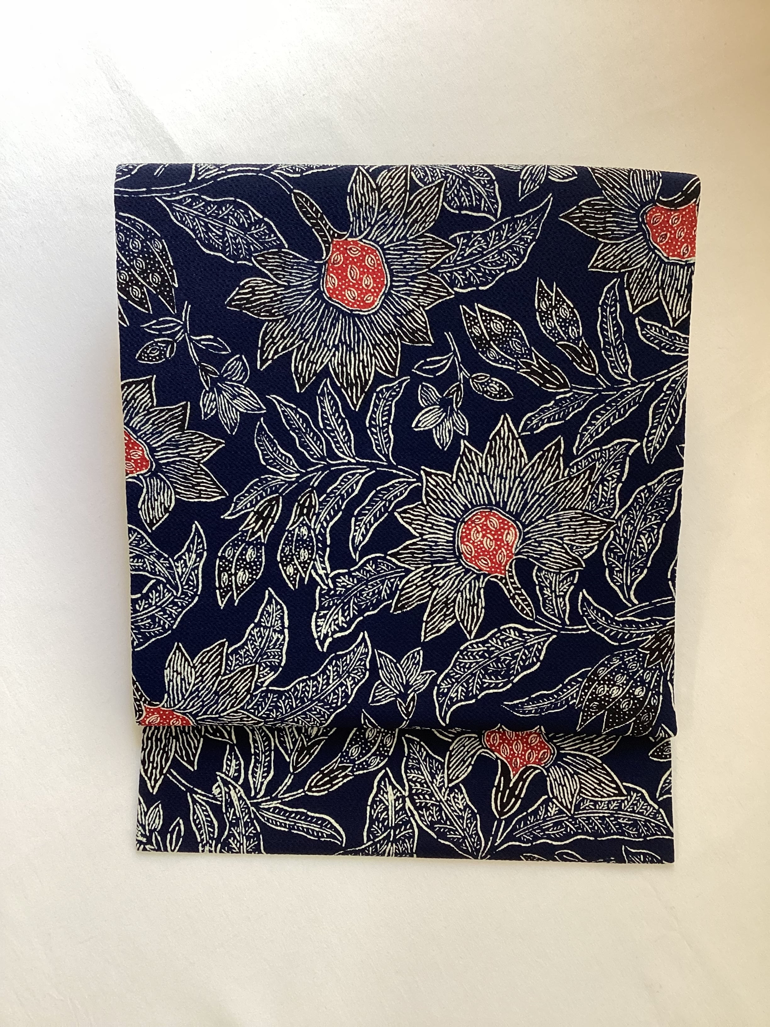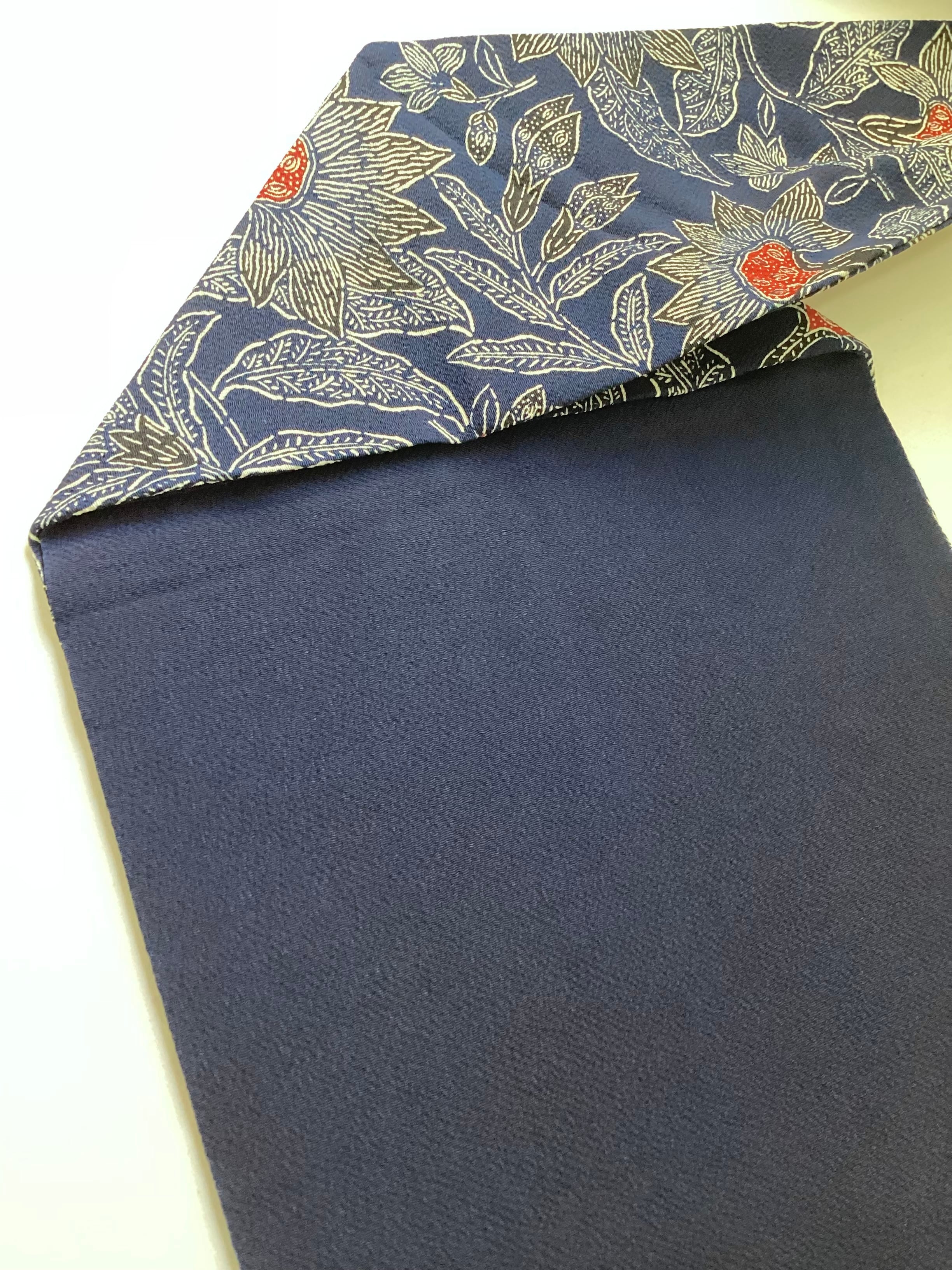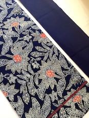濃藍色地唐花文【浦野理一】縮緬なごや帯 260203-2