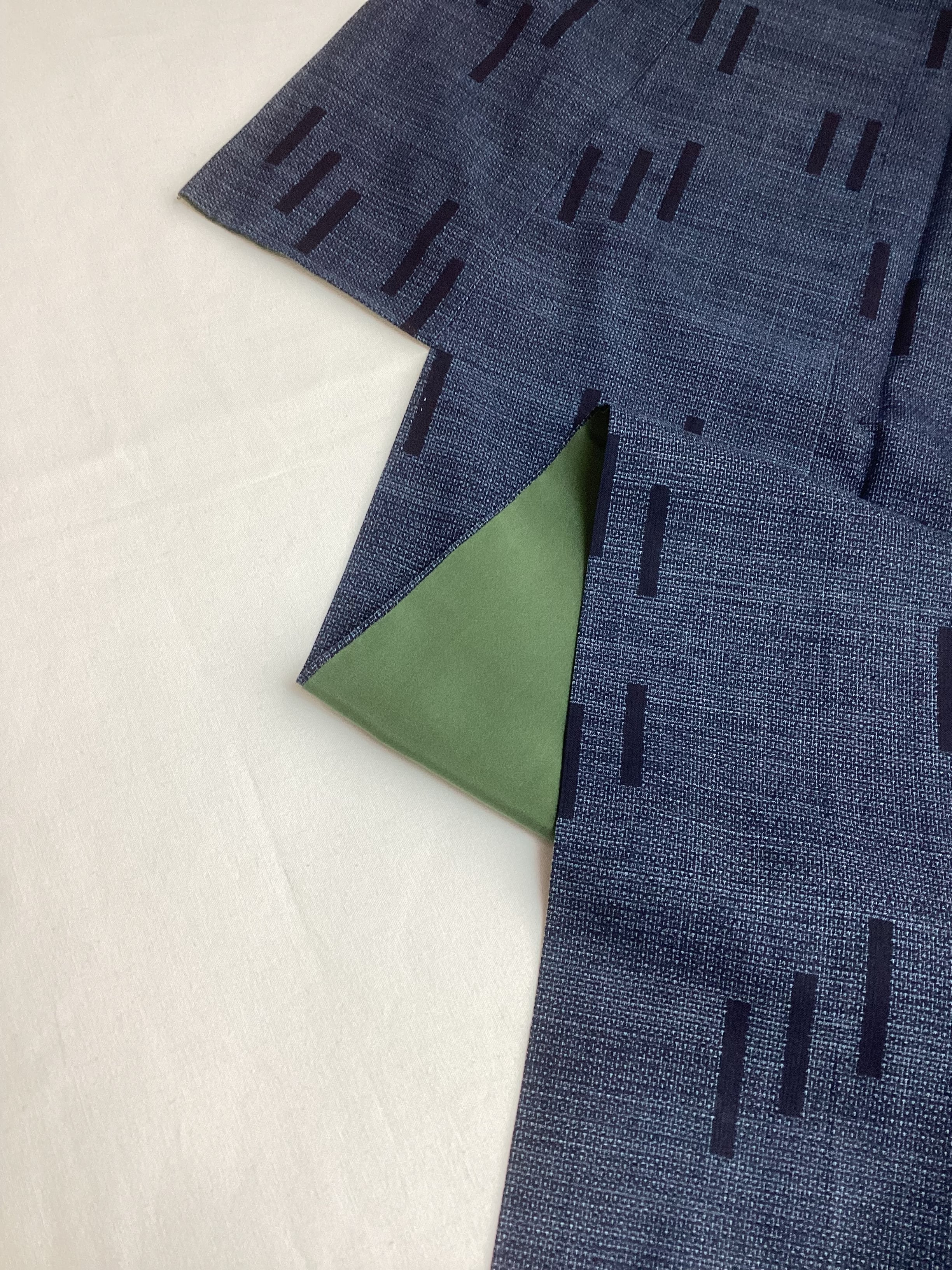 ★期間限定★濃藍色地亀甲絣に短冊散らし文【綿薩摩】(しつけ付き)260203-1