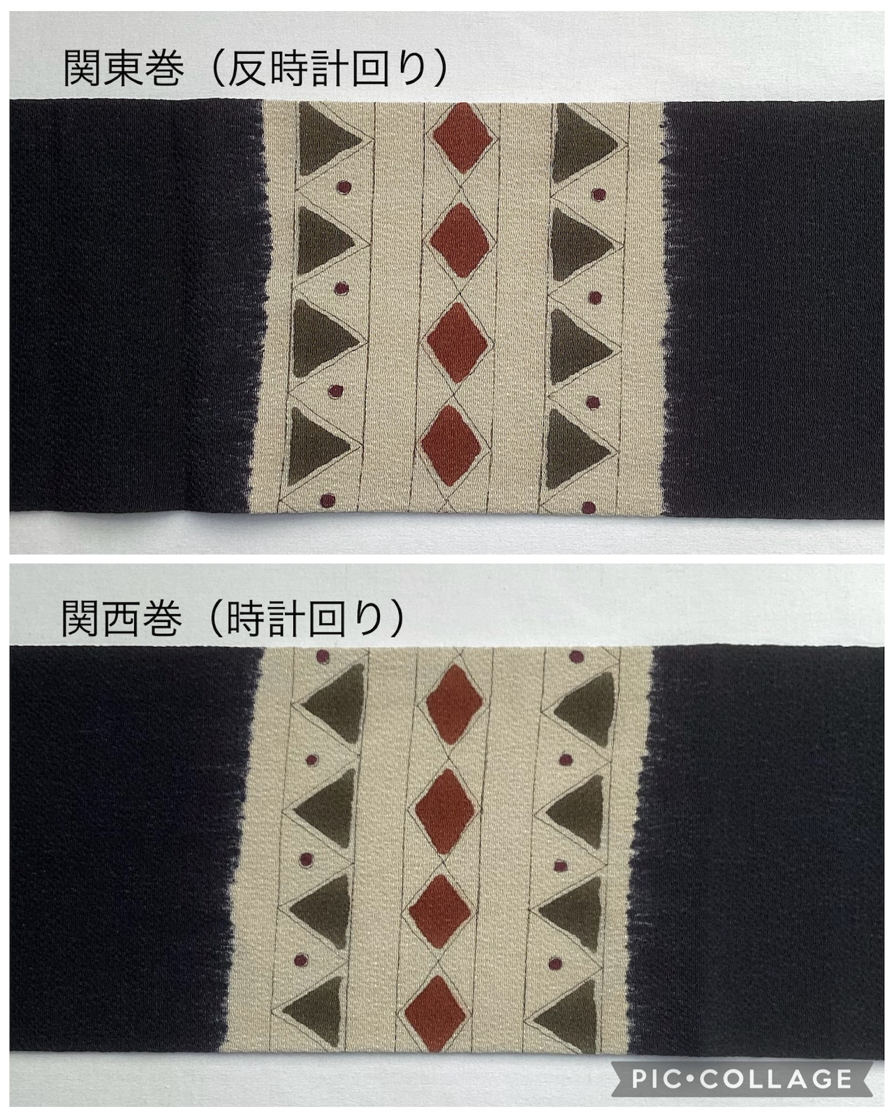 黒地菱と三角横段文縮緬なごや帯 260204-2