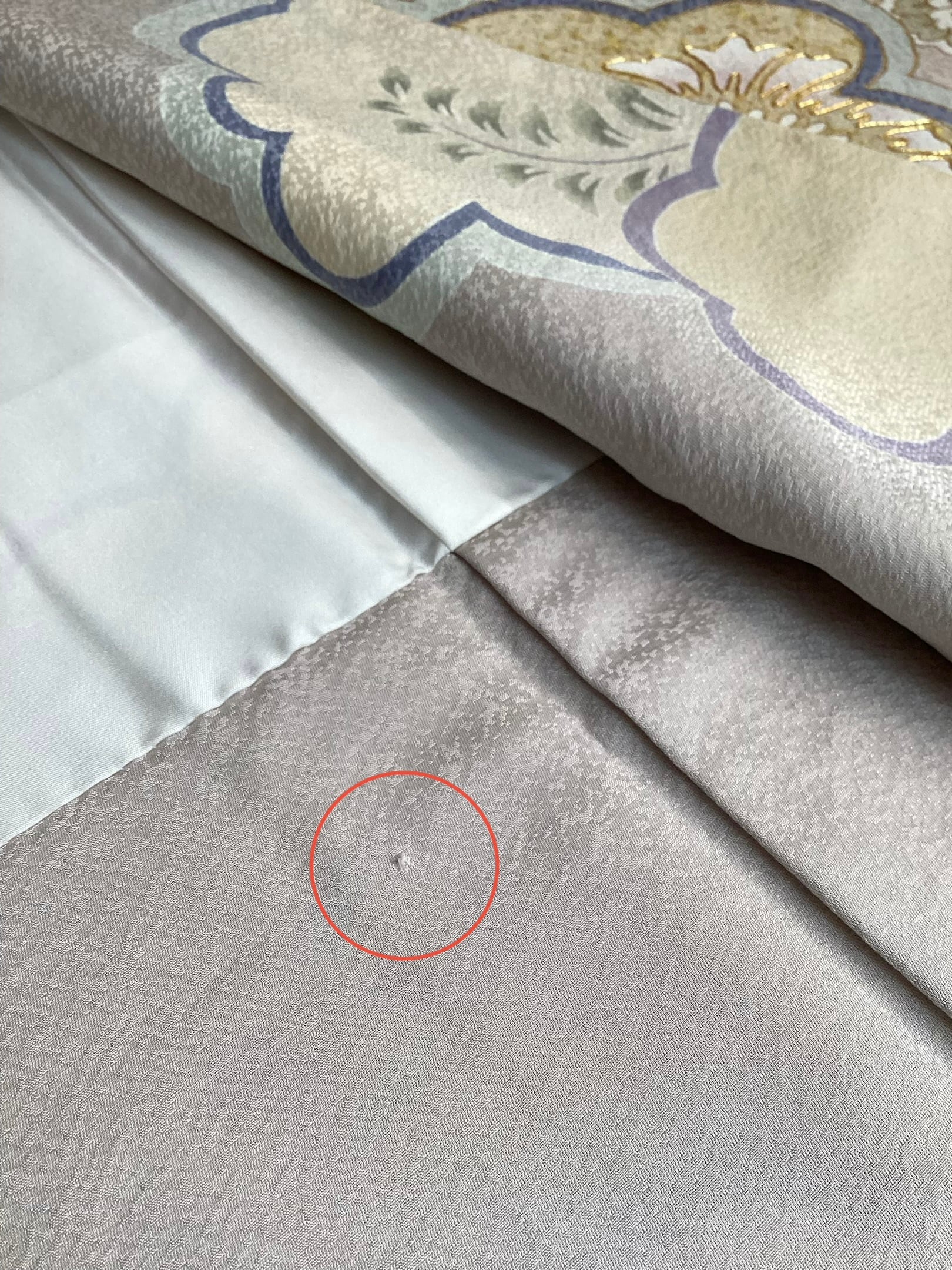 画像19にあるように右後ろ身頃の八掛に小さな織キズがございます。気にされる方はご購入をお控え下さい。