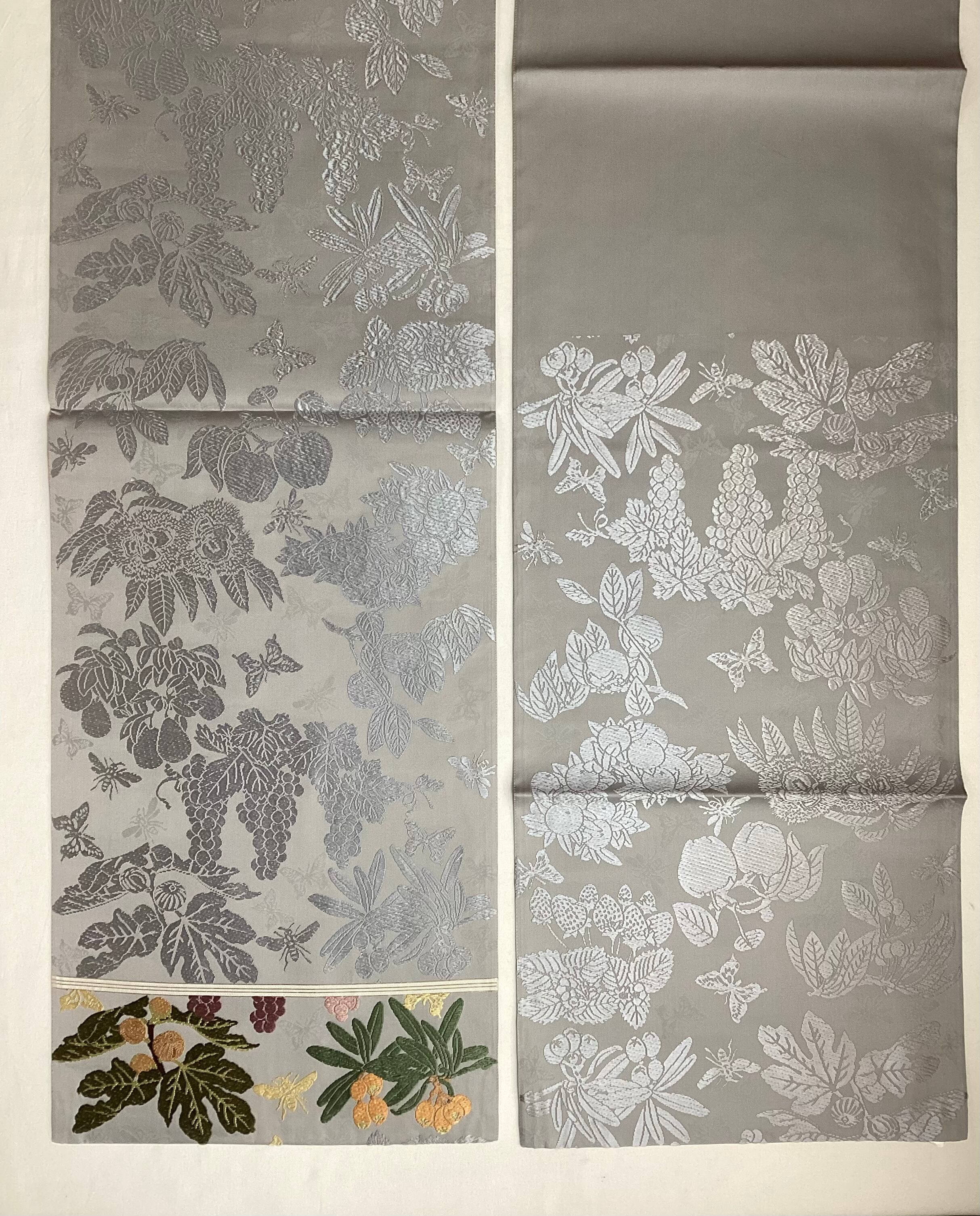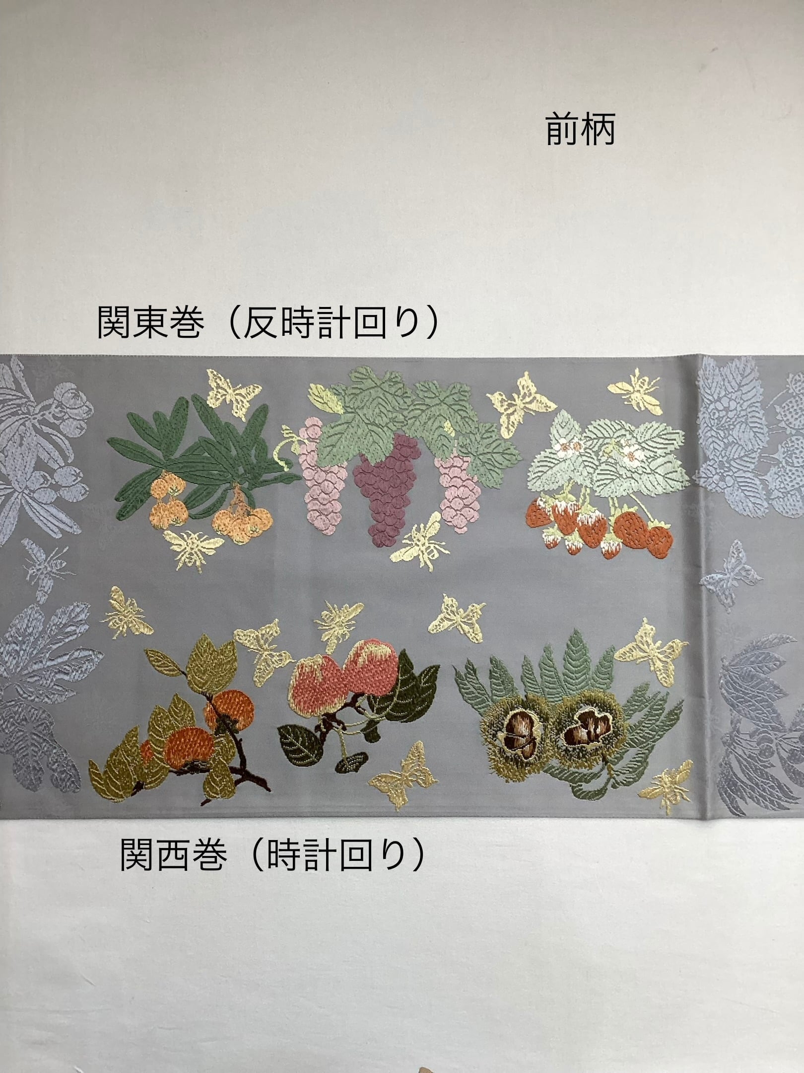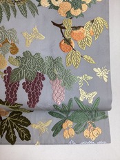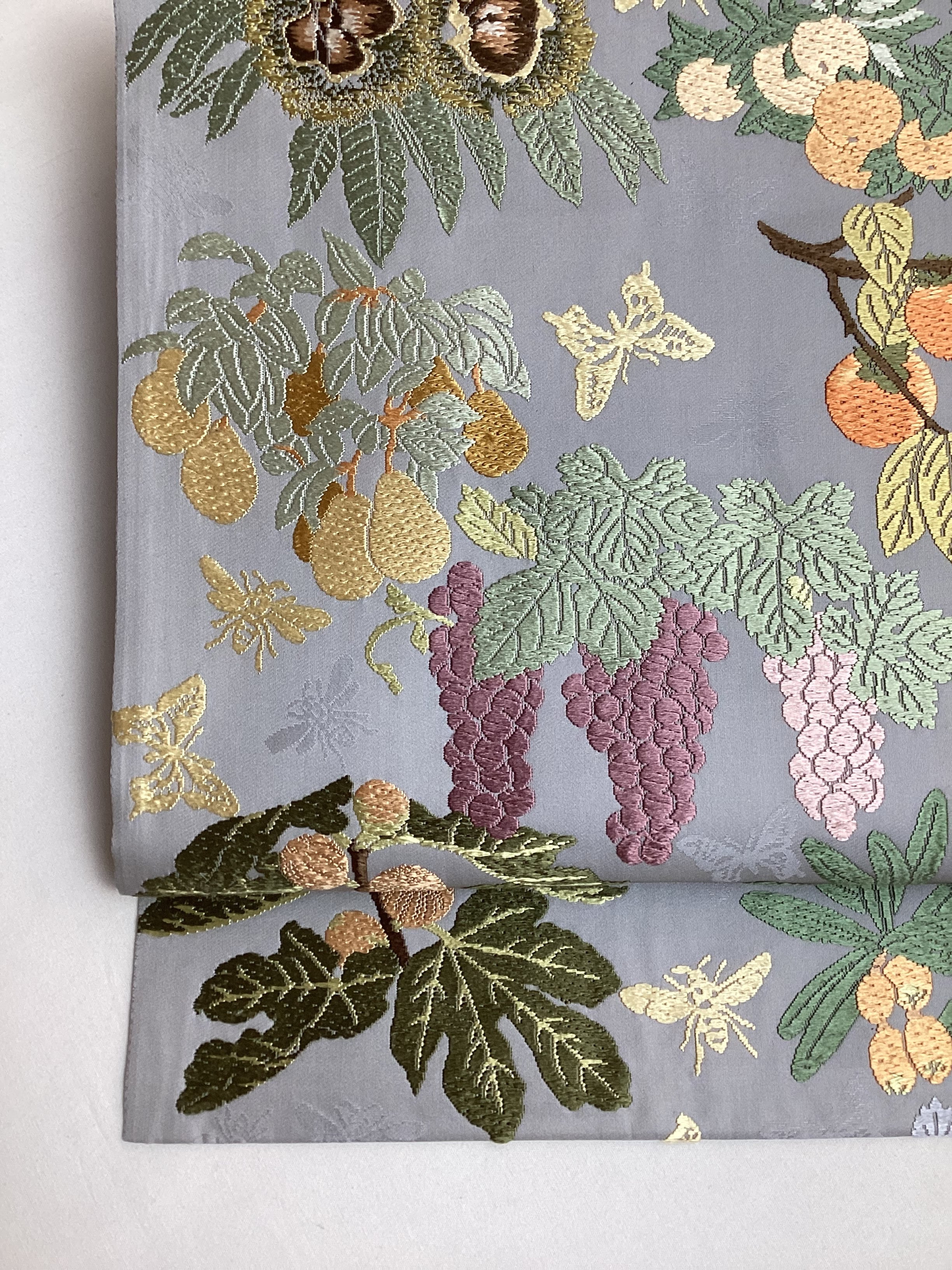 灰色地四季果実文唐織錦【山口美術織物】袋帯 260214-2