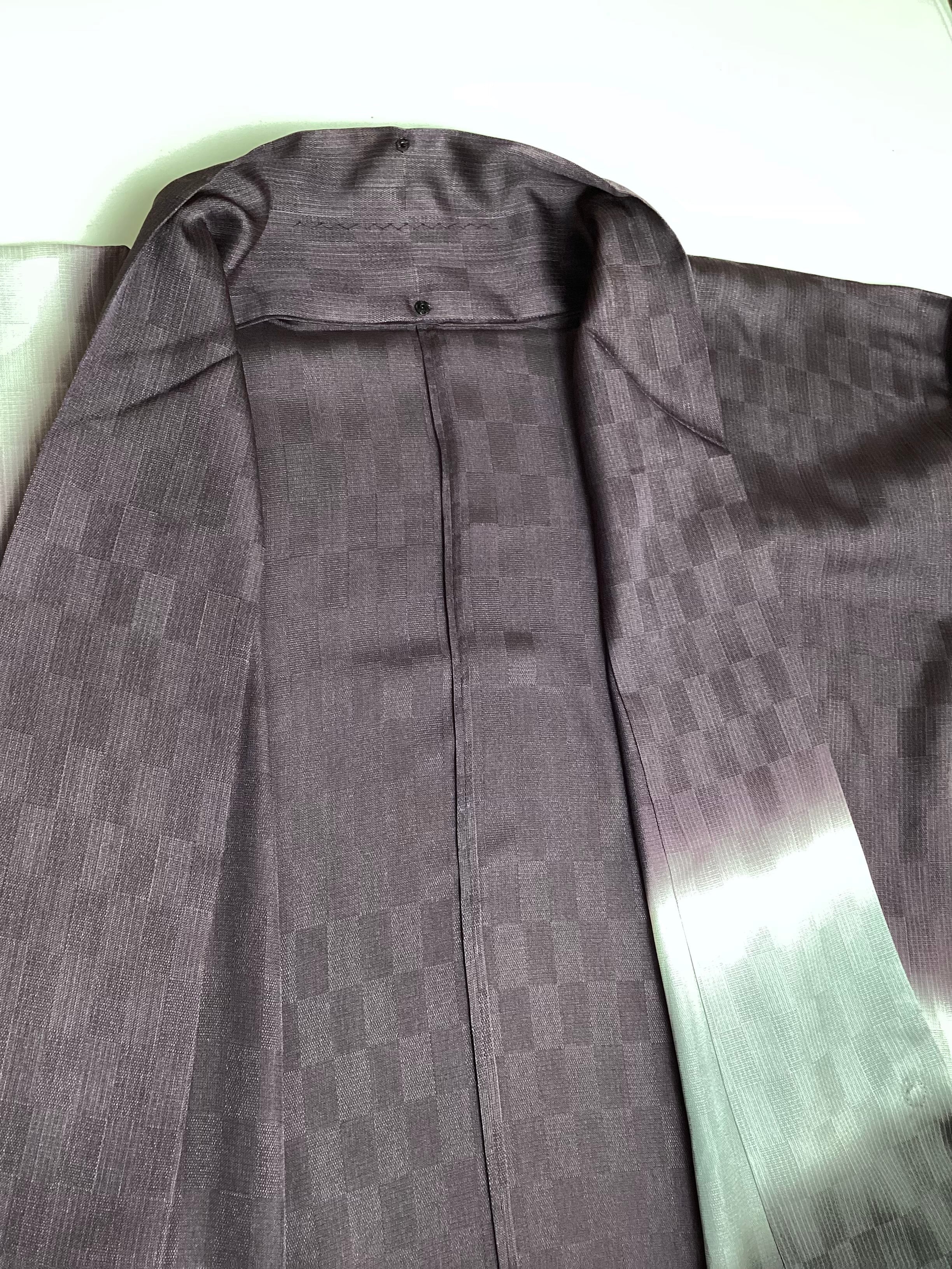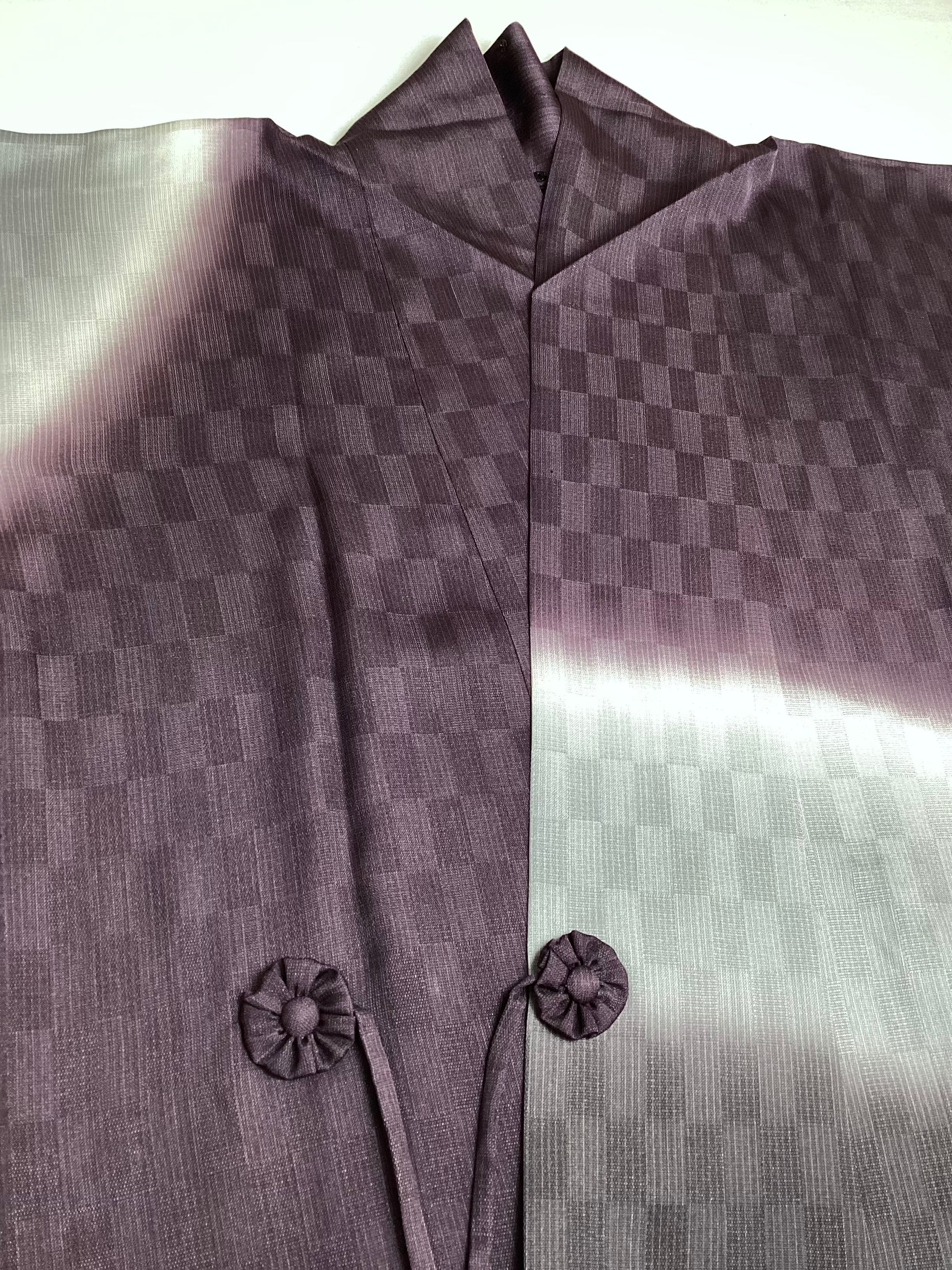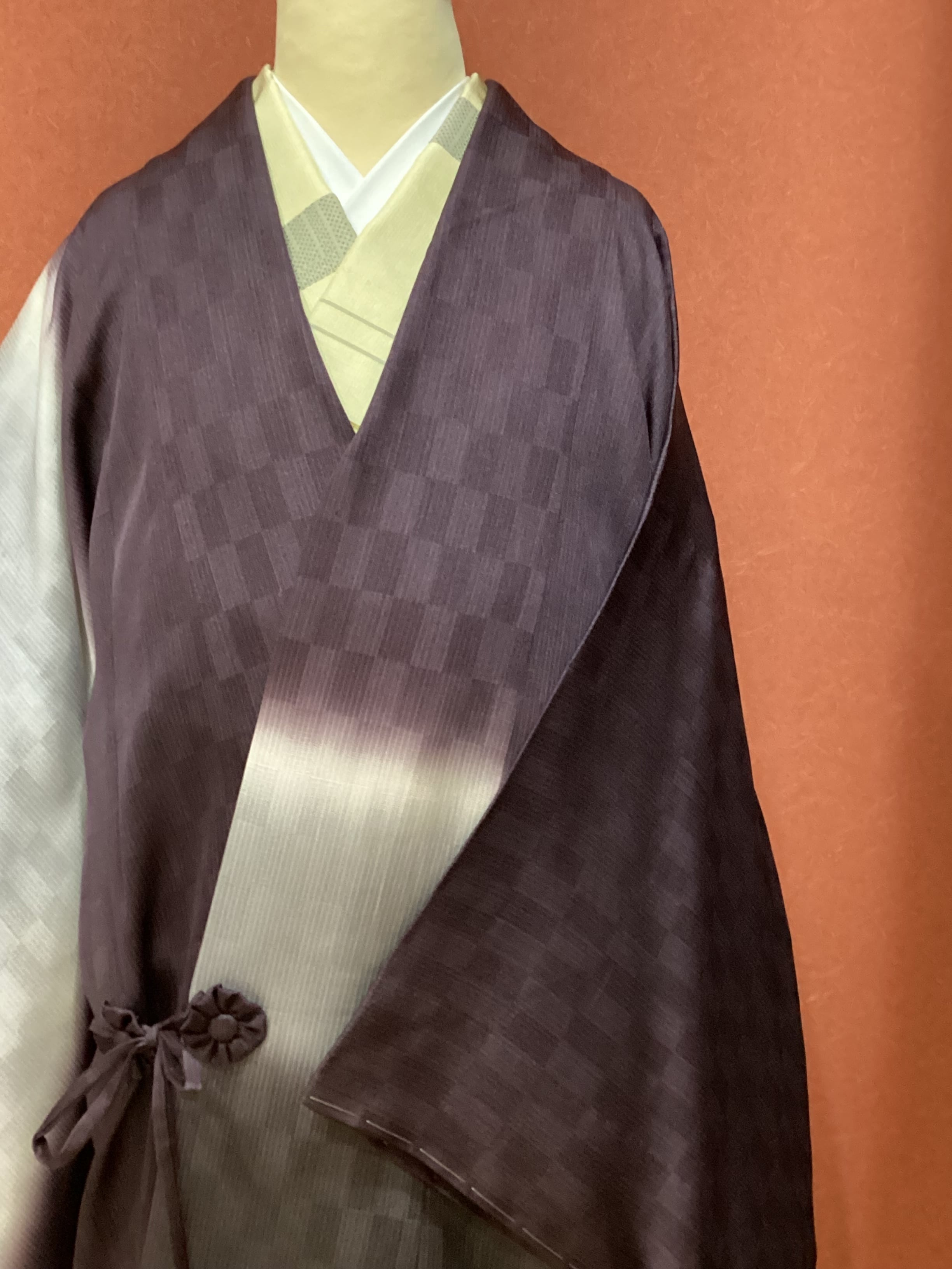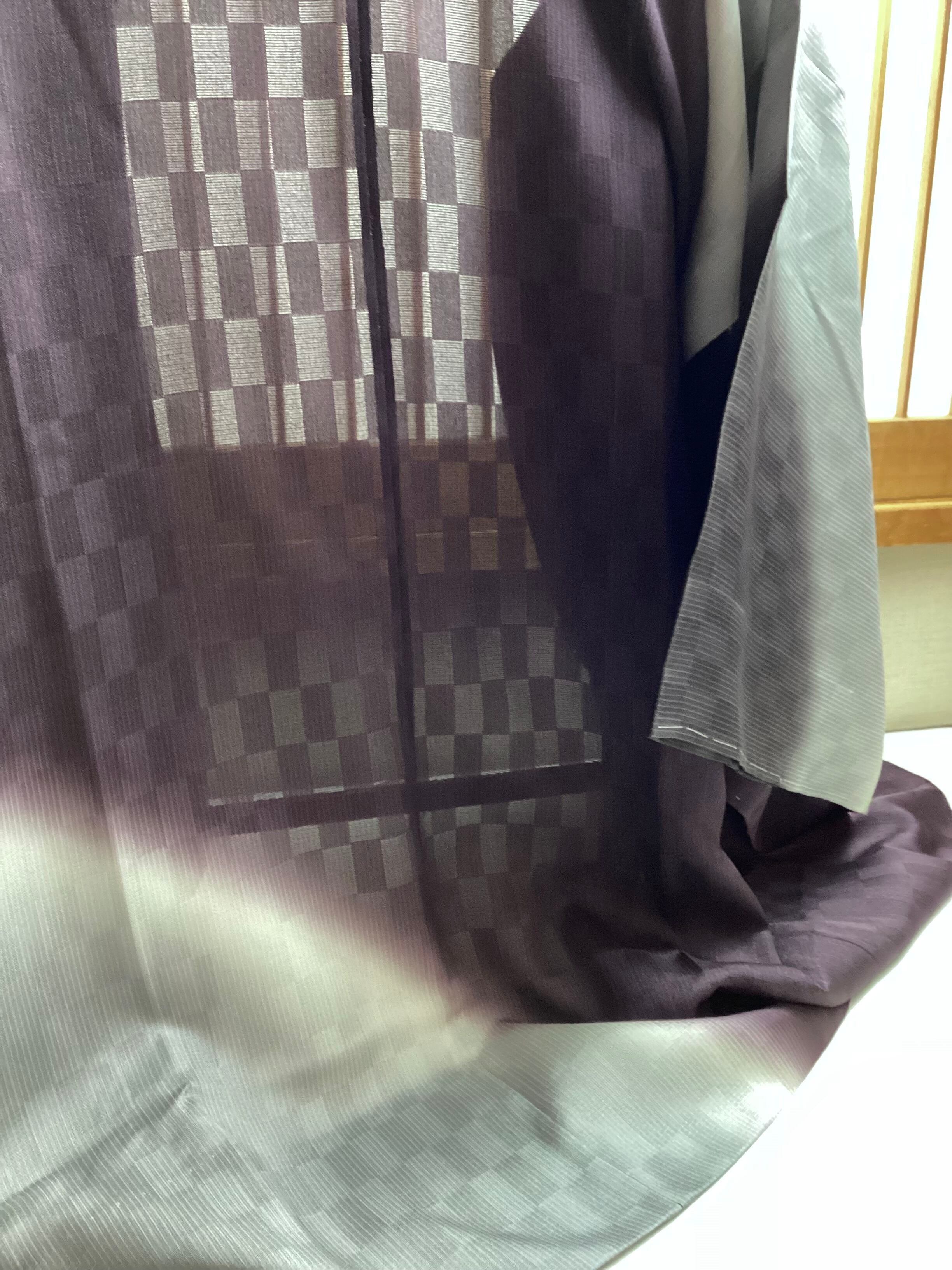 紫×鼠暈し市松文紋紗道中着コート(しつけ・反端付き)260301-2