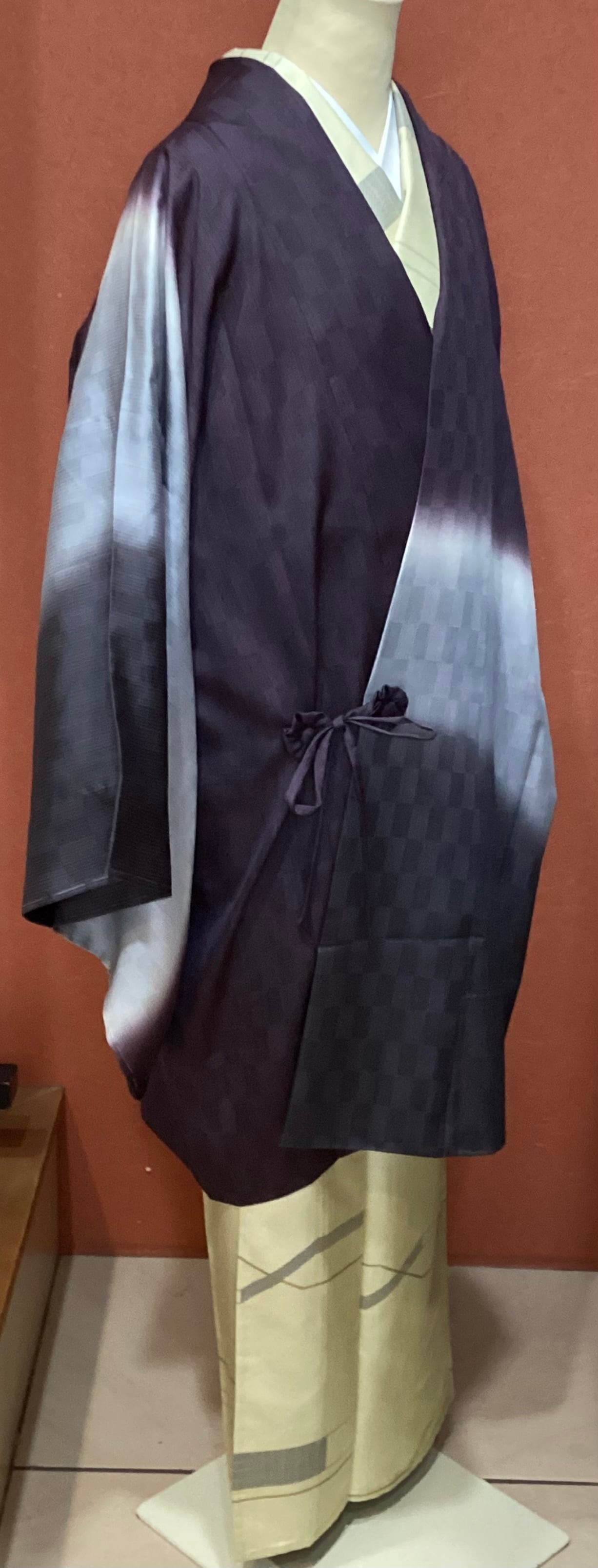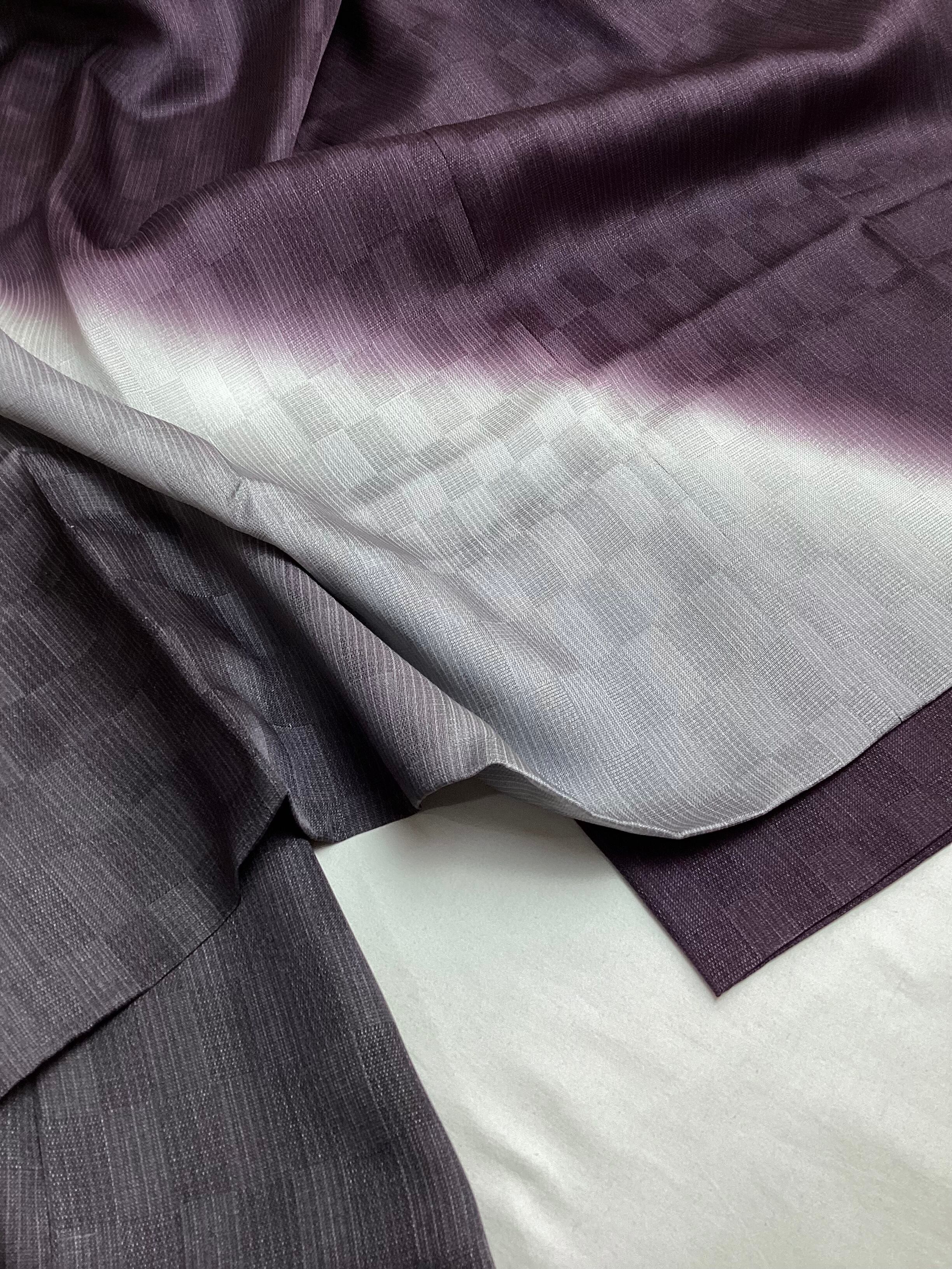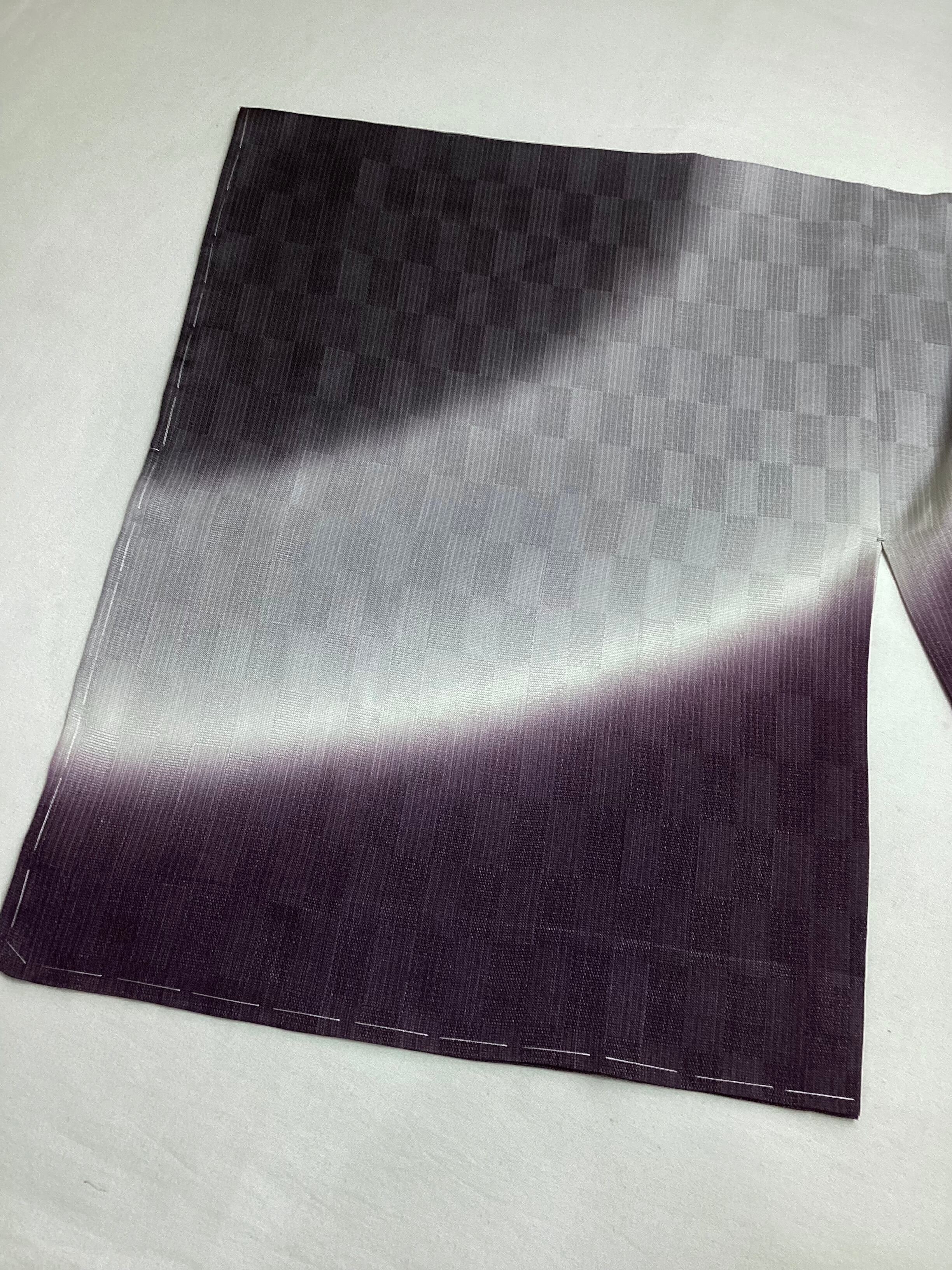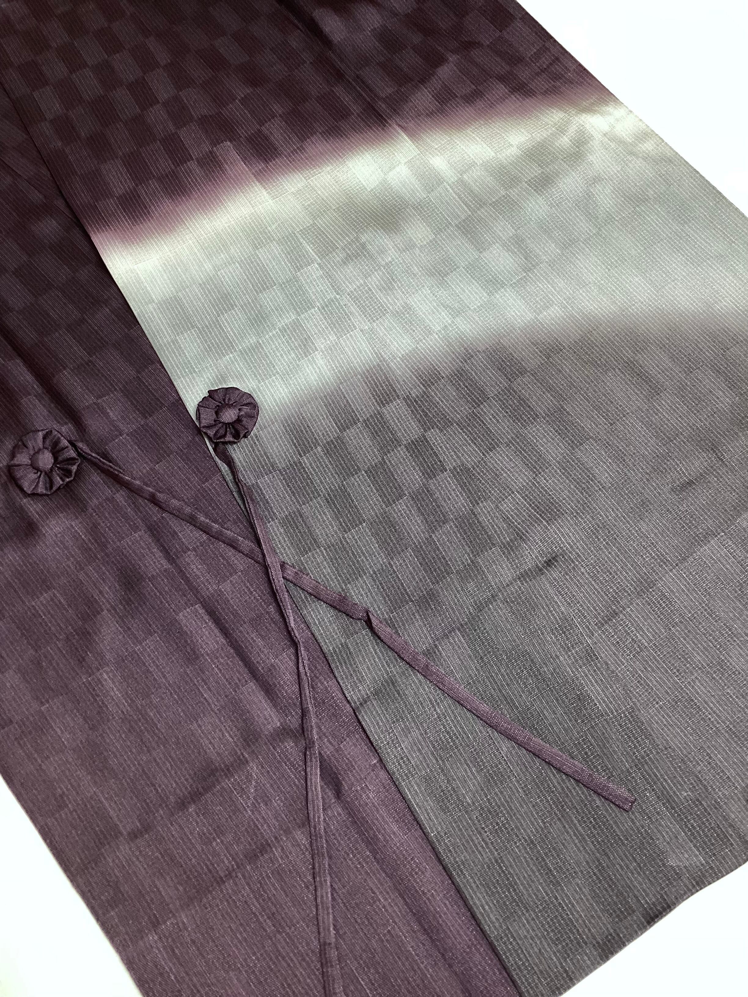 紫×鼠暈し市松文紋紗道中着コート(しつけ・反端付き)260301-2