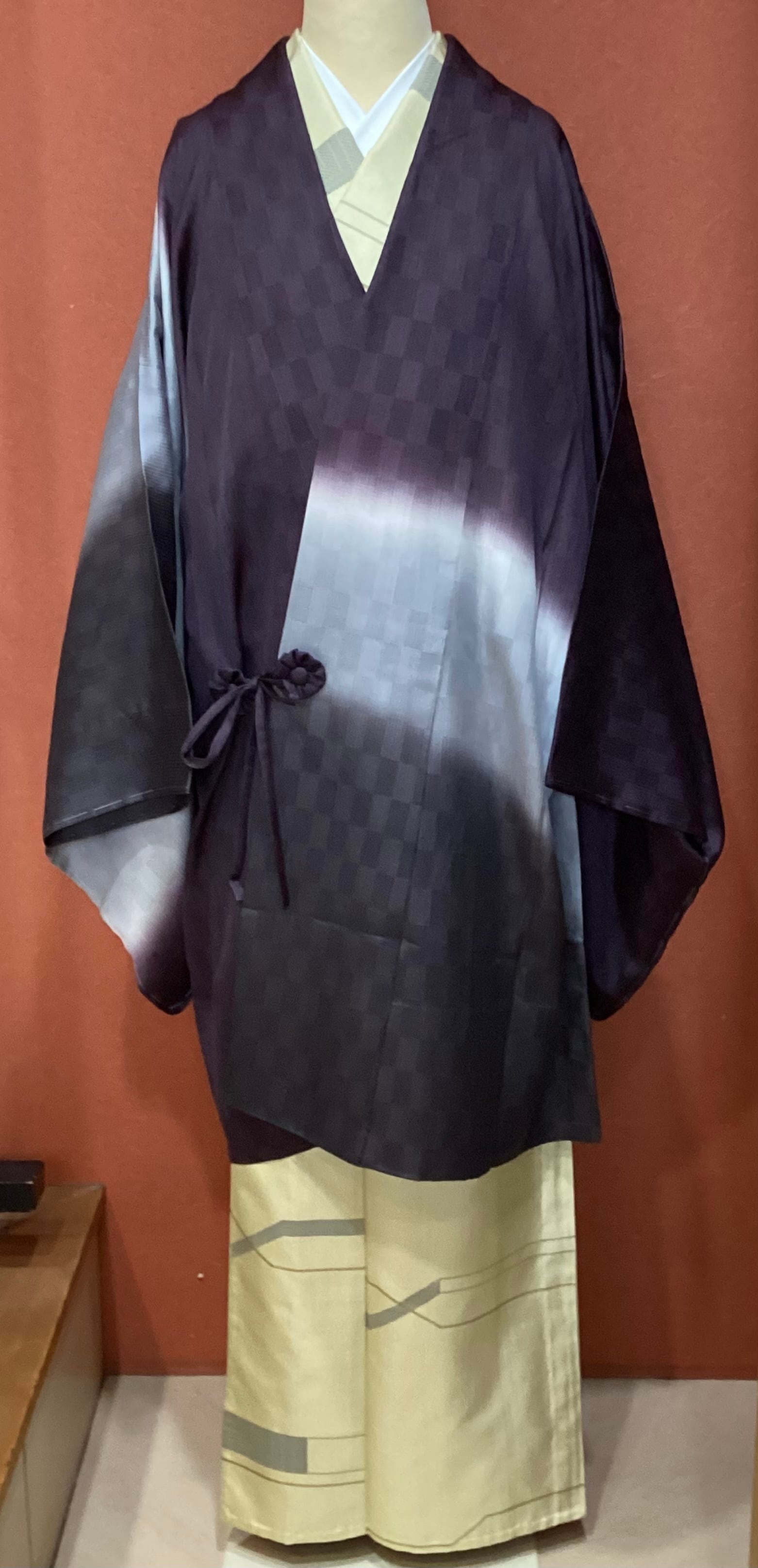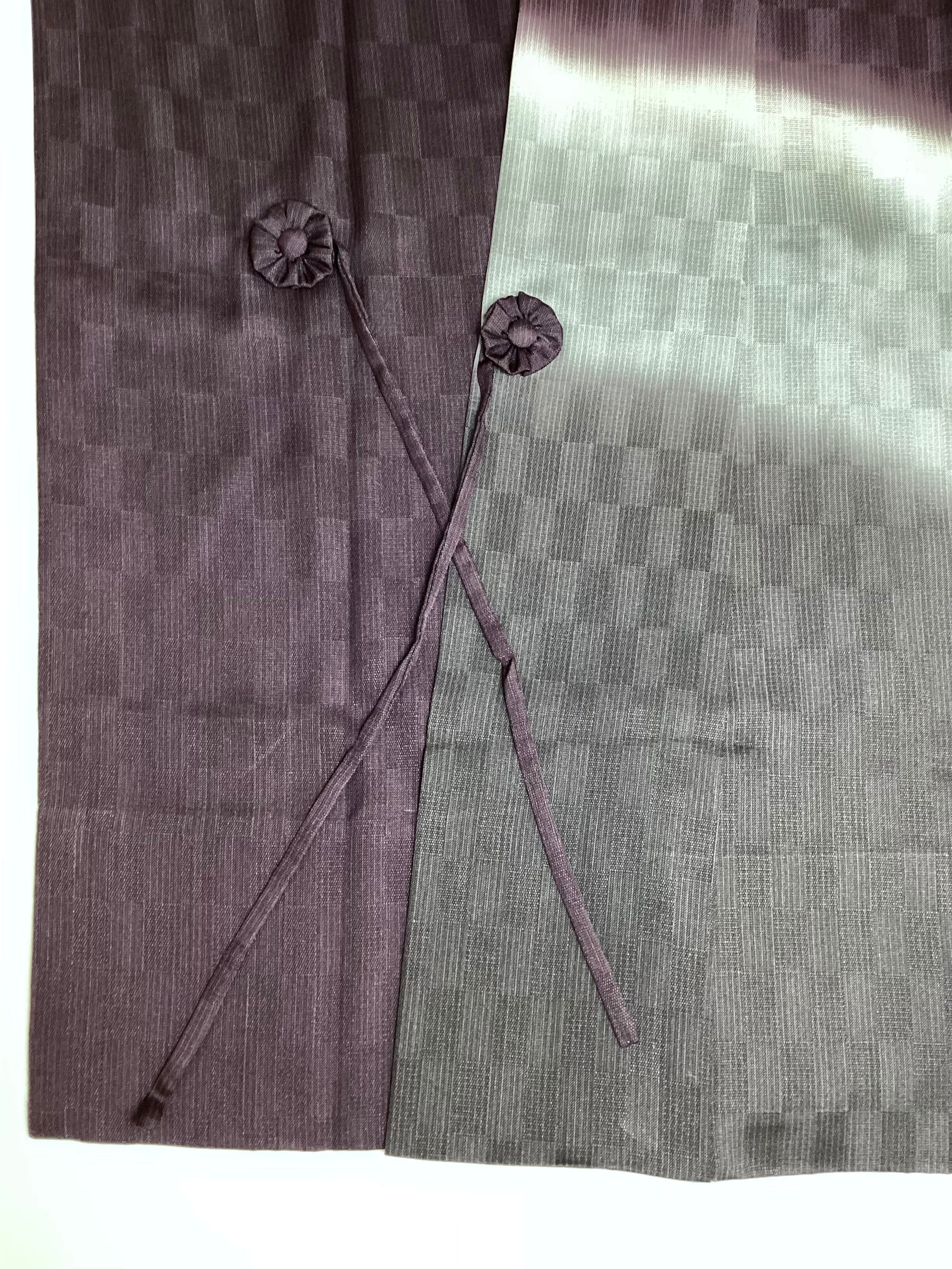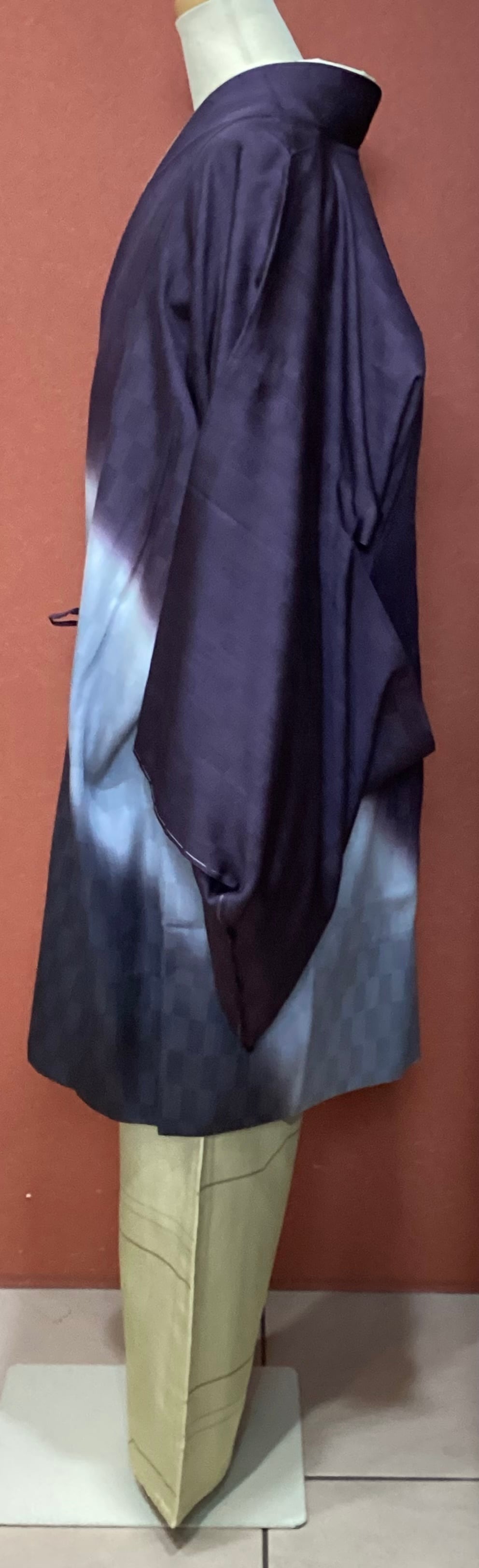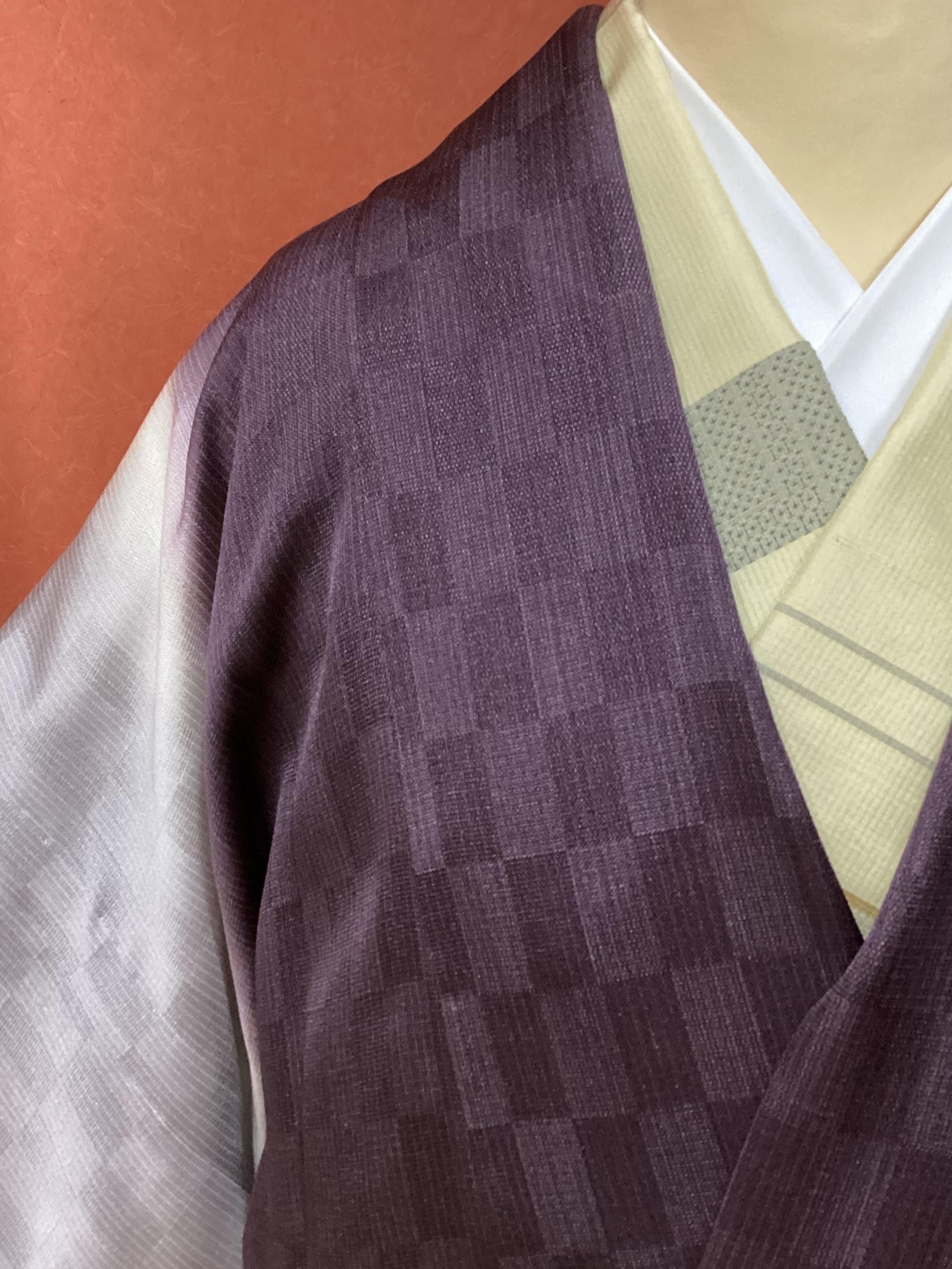 紫×鼠暈し市松文紋紗道中着コート(しつけ・反端付き)260301-2