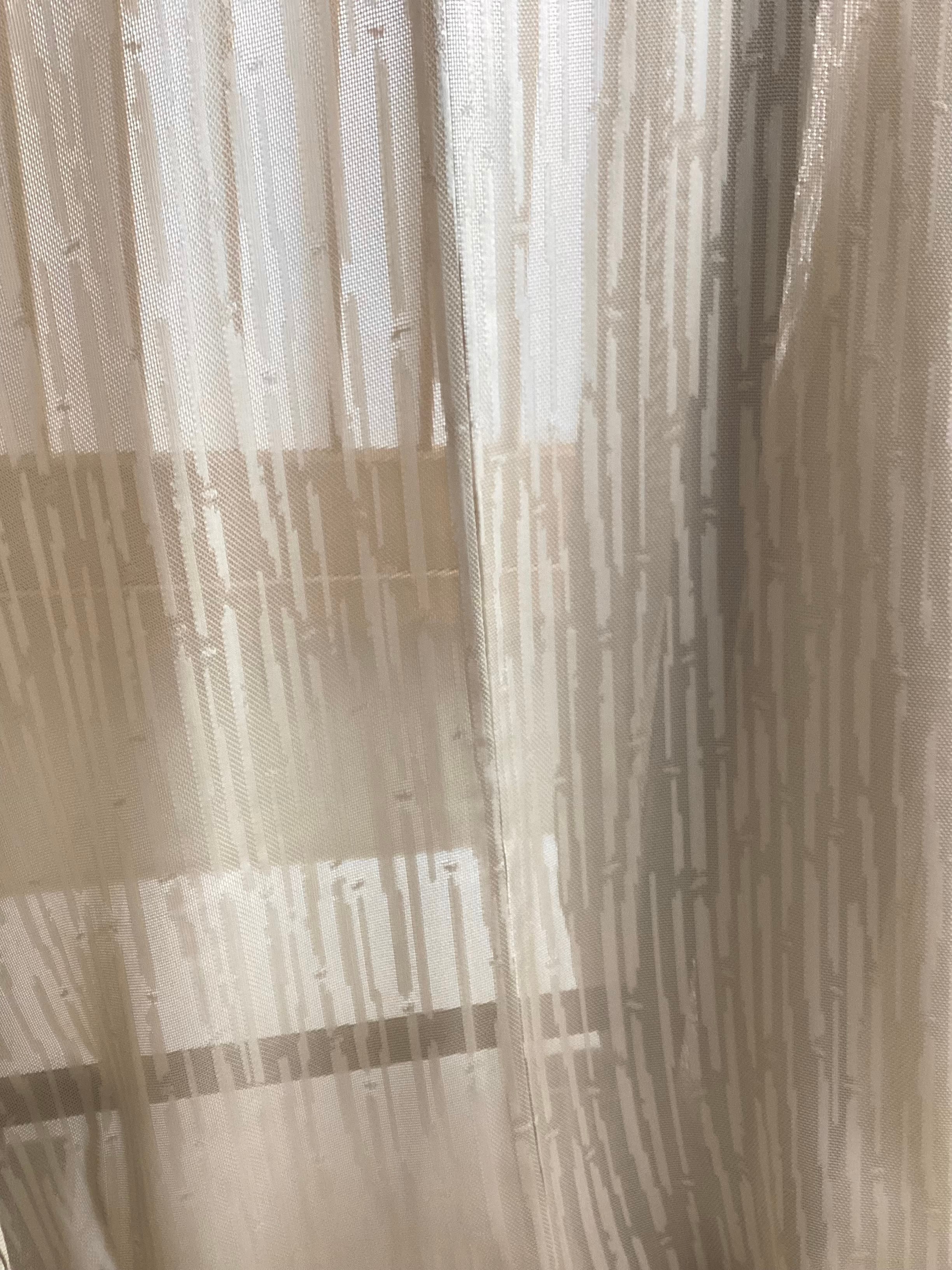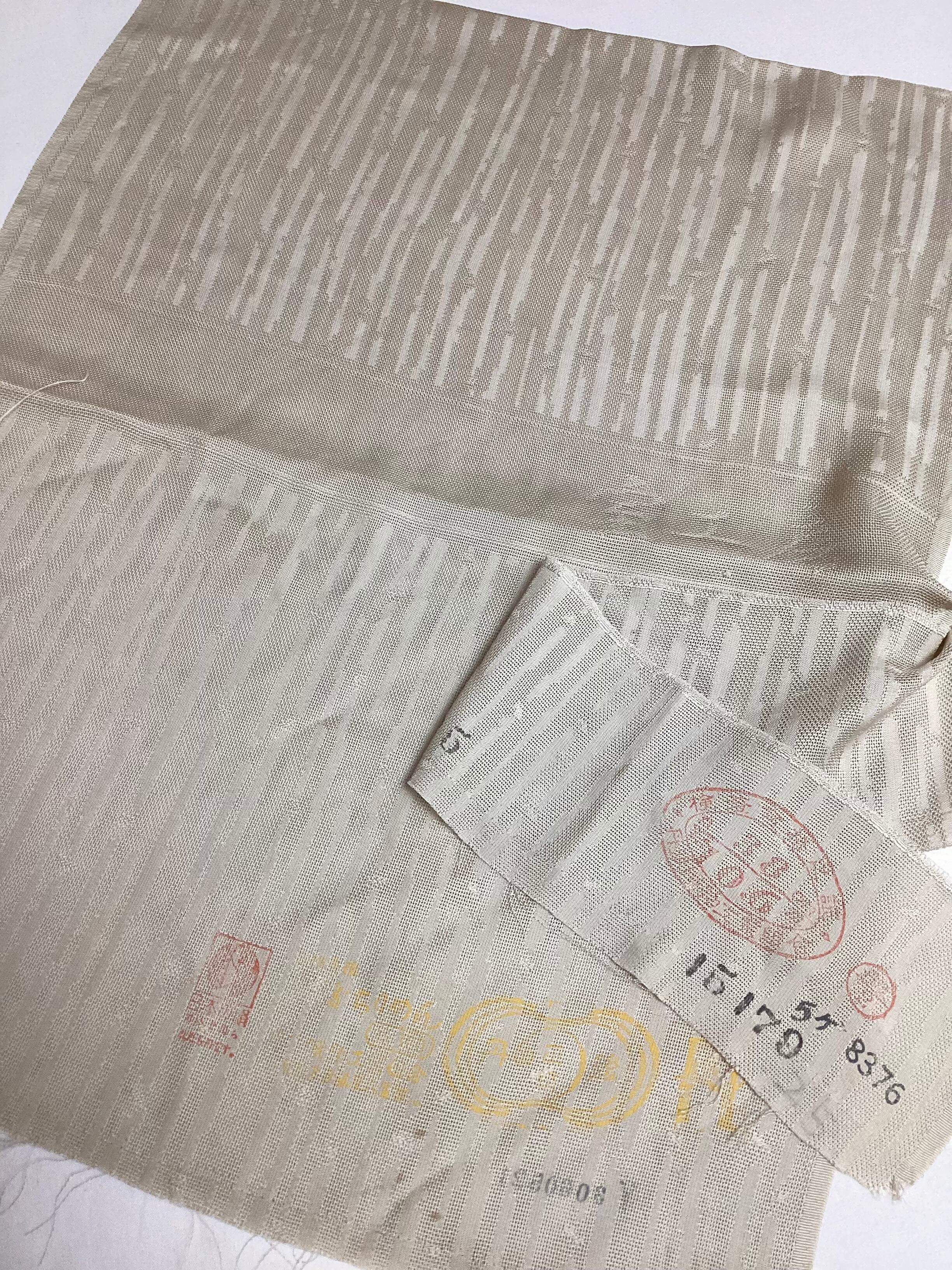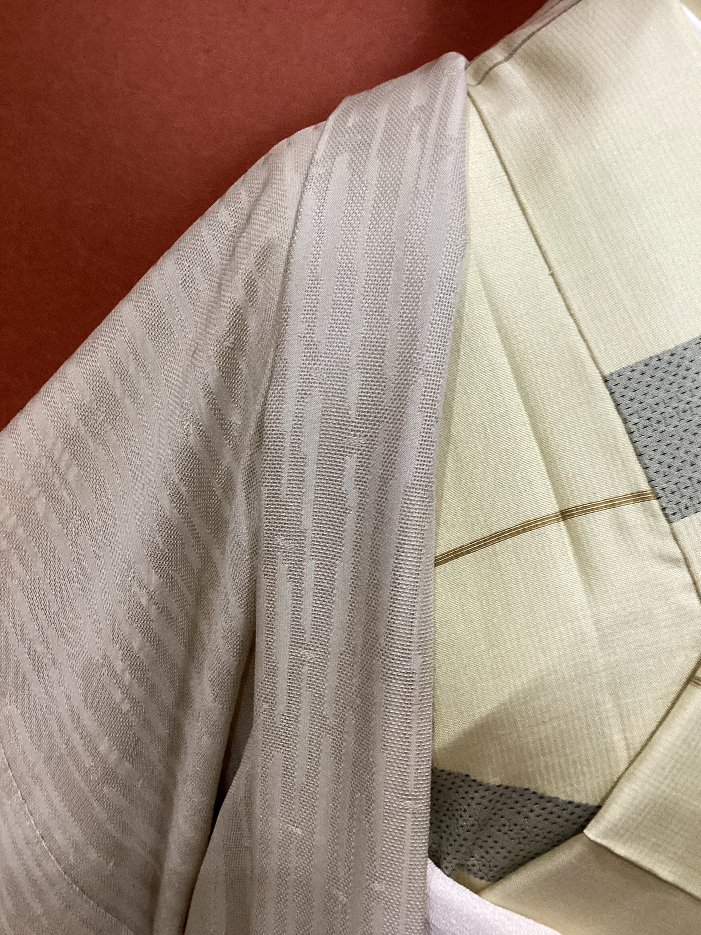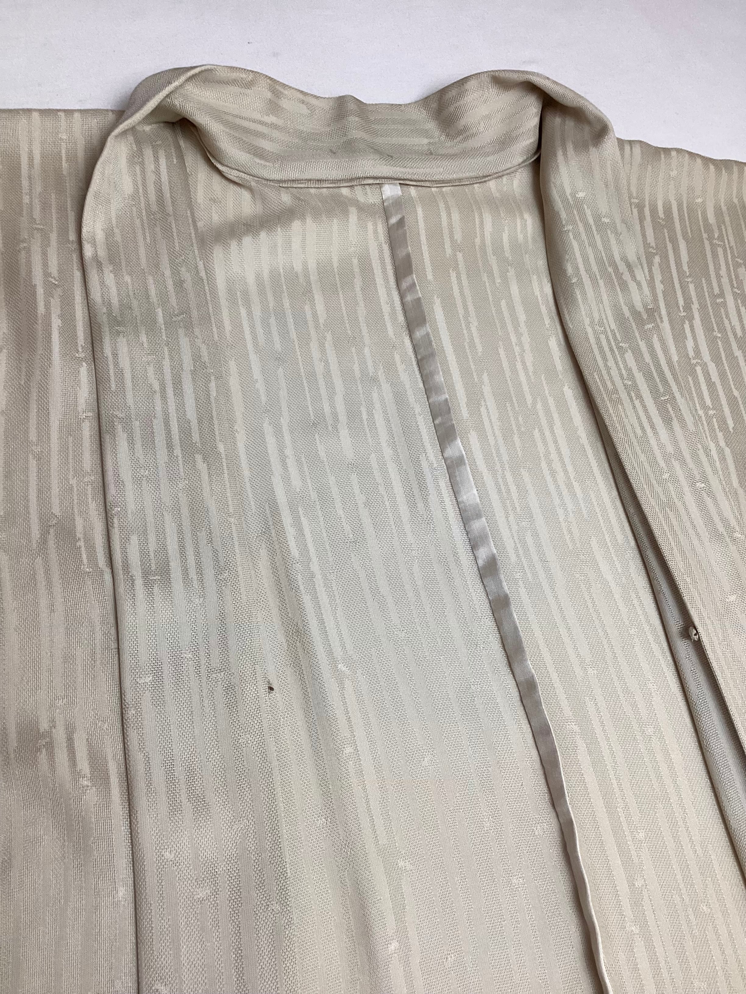 薄ベージュ色地竹縞文【室工房】紋紗羽織(反端付き)260301-5