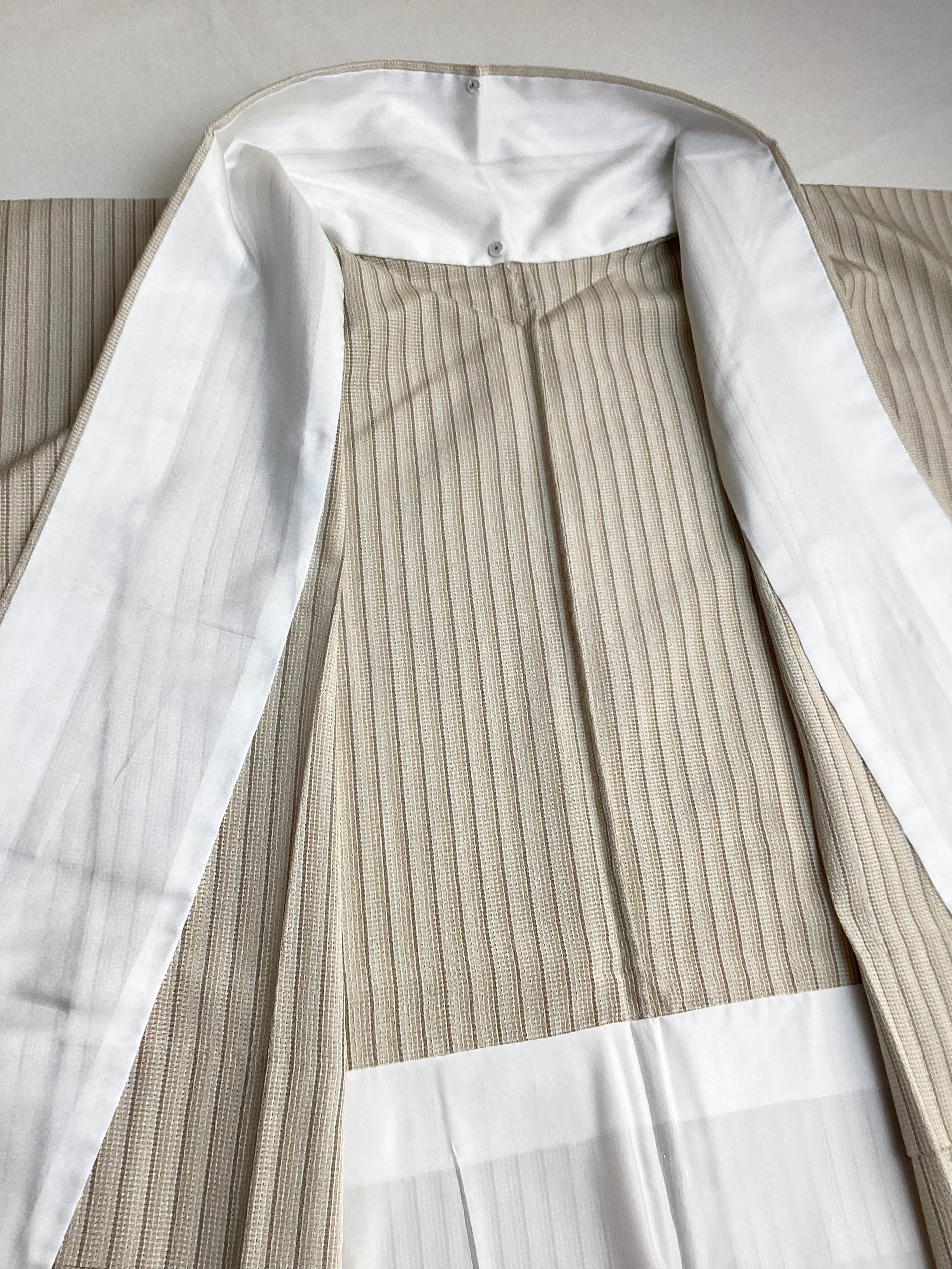 【単衣】ベージュグラデーション縦縞文小紋(しつけ付き) 260311-1