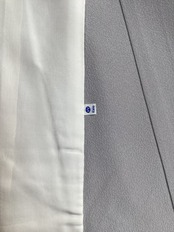 【単衣】薄灰紫地地紙と鬘帯に宝尽くし文一つ紋訪問着(しつけ付き)260318-1