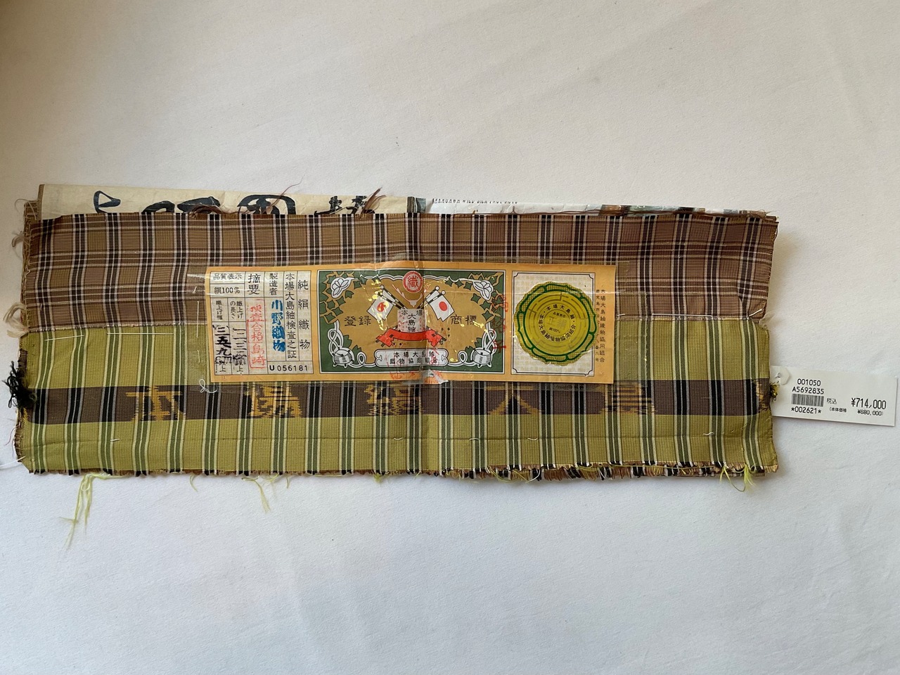 茶地格子文縞大島紬(証紙付き) 260321-1