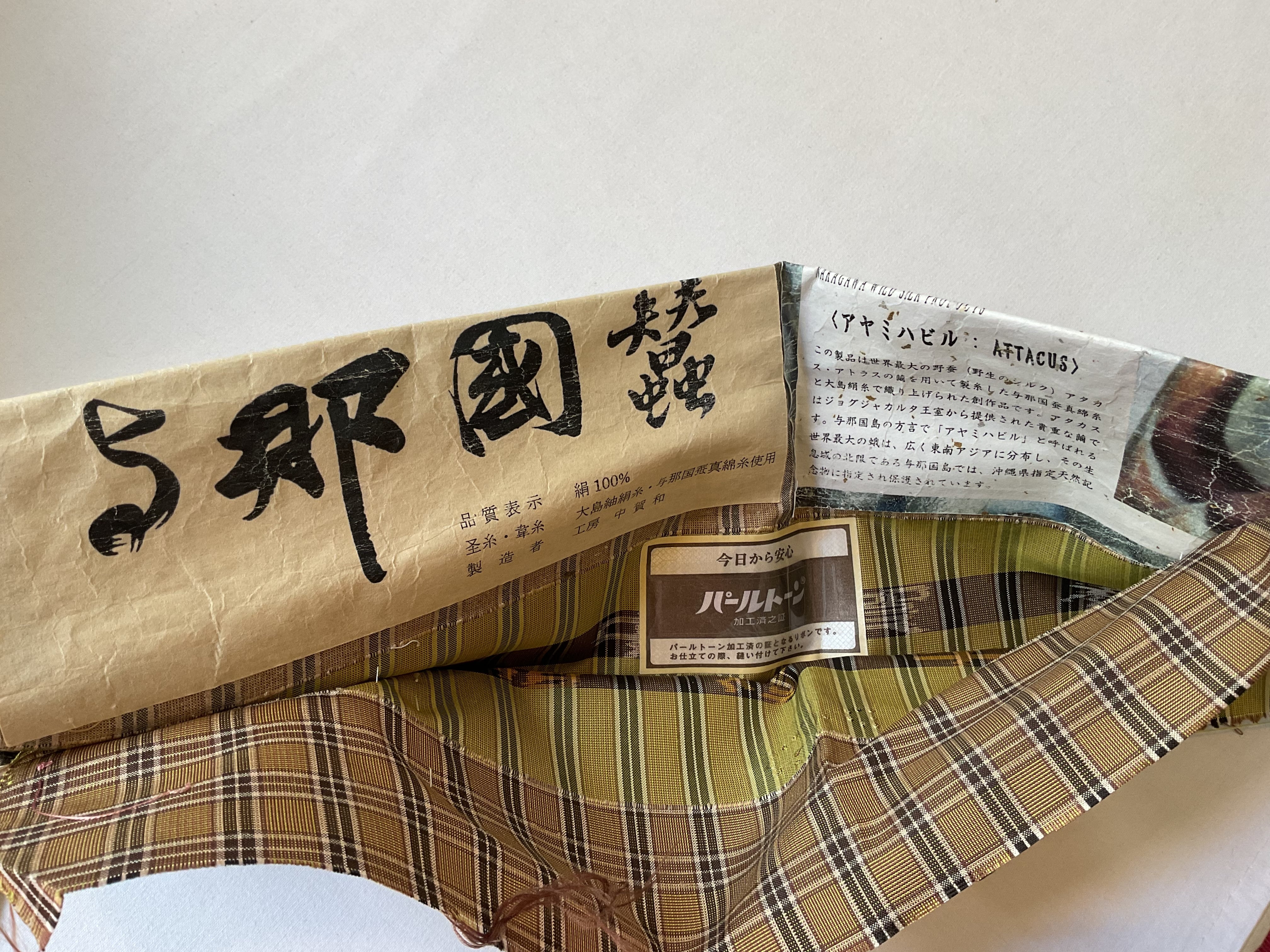 与那国蚕真綿糸と大島絹糸で織られており、所々に節があるものまた独特の風合いとなっております。